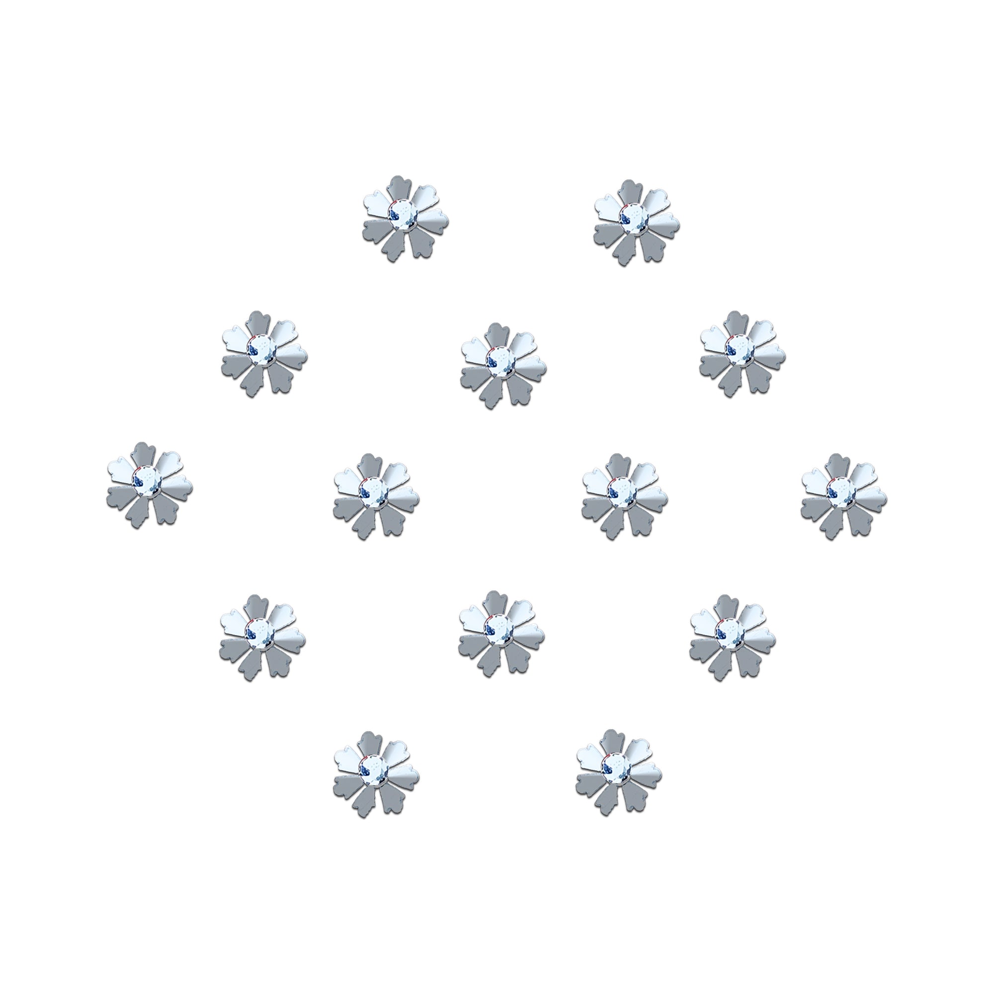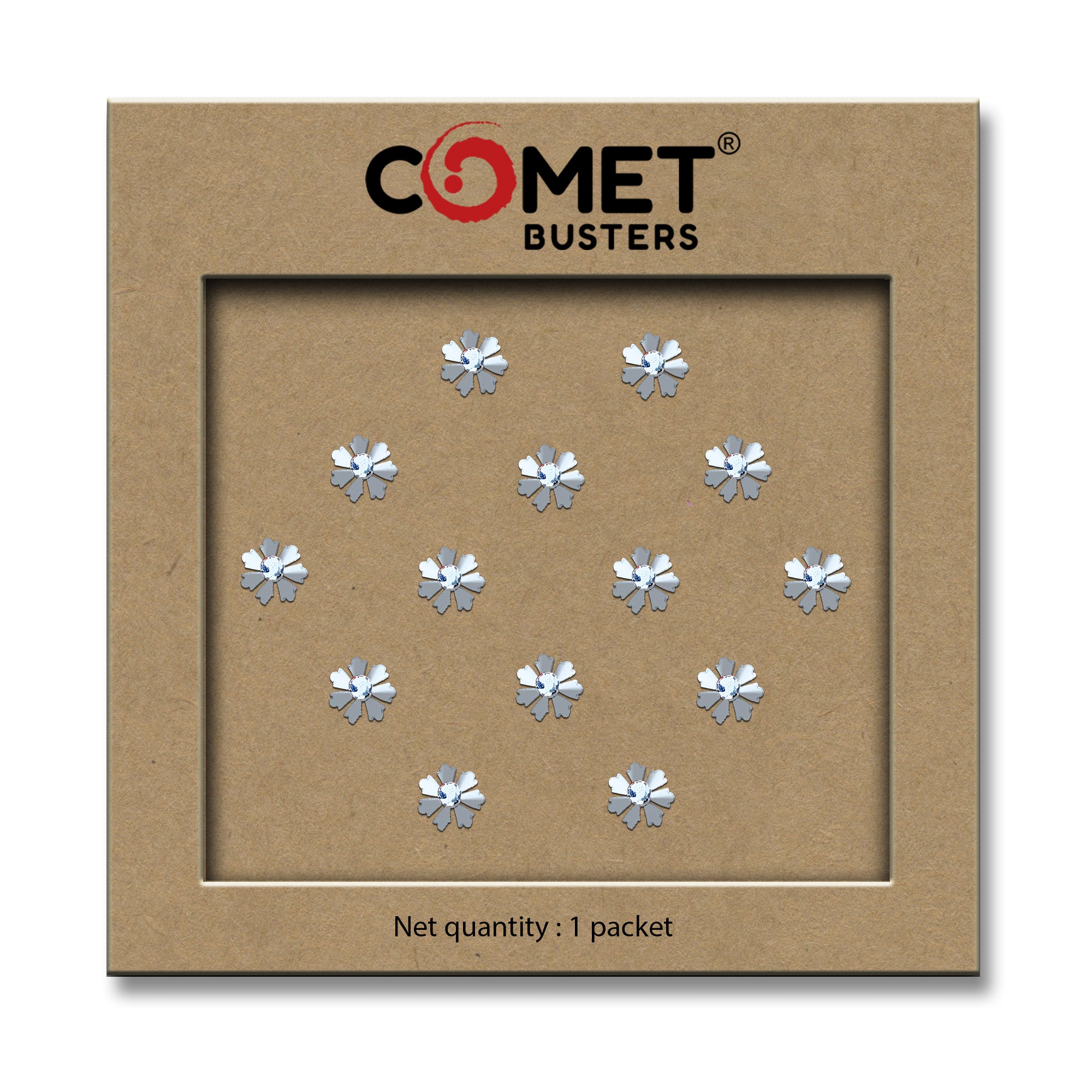 Comet Busters® Silver Floral – PVC, Diamond – Handcrafted, Reusable & Skin-Friendly Bindis for Casual Wear (7mm) – Forehead Bindi Stickers for Women & Girls – BIN2386