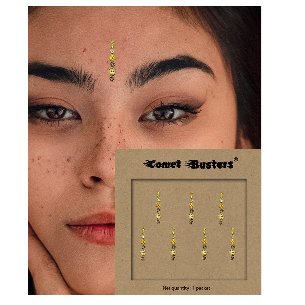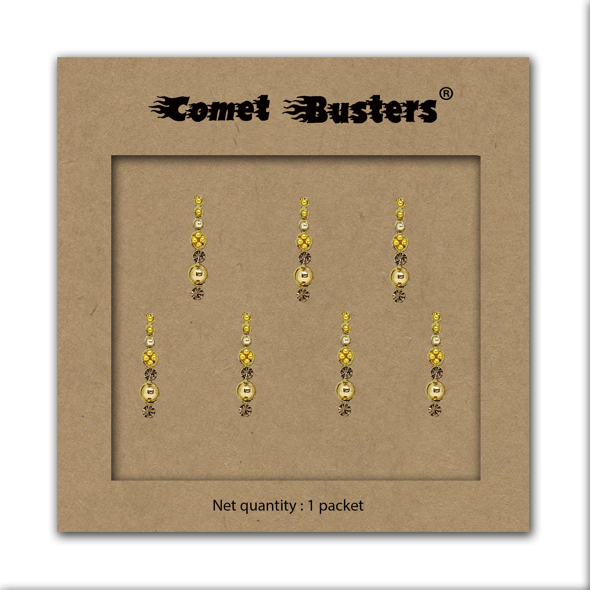 Comet Busters® Gold Line – PVC, Diamond, Shiny Beads – Handcrafted, Reusable & Skin-Friendly Bindis for Party Wear (18mm) – Forehead Bindi Stickers for Women & Girls – BIN1903