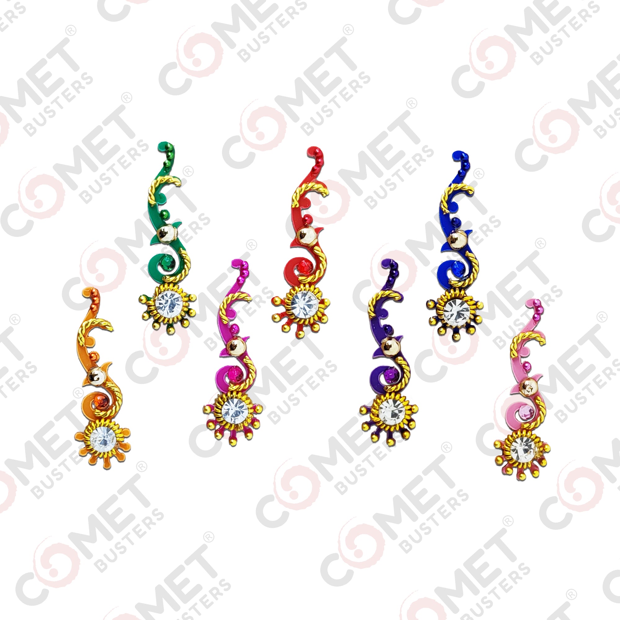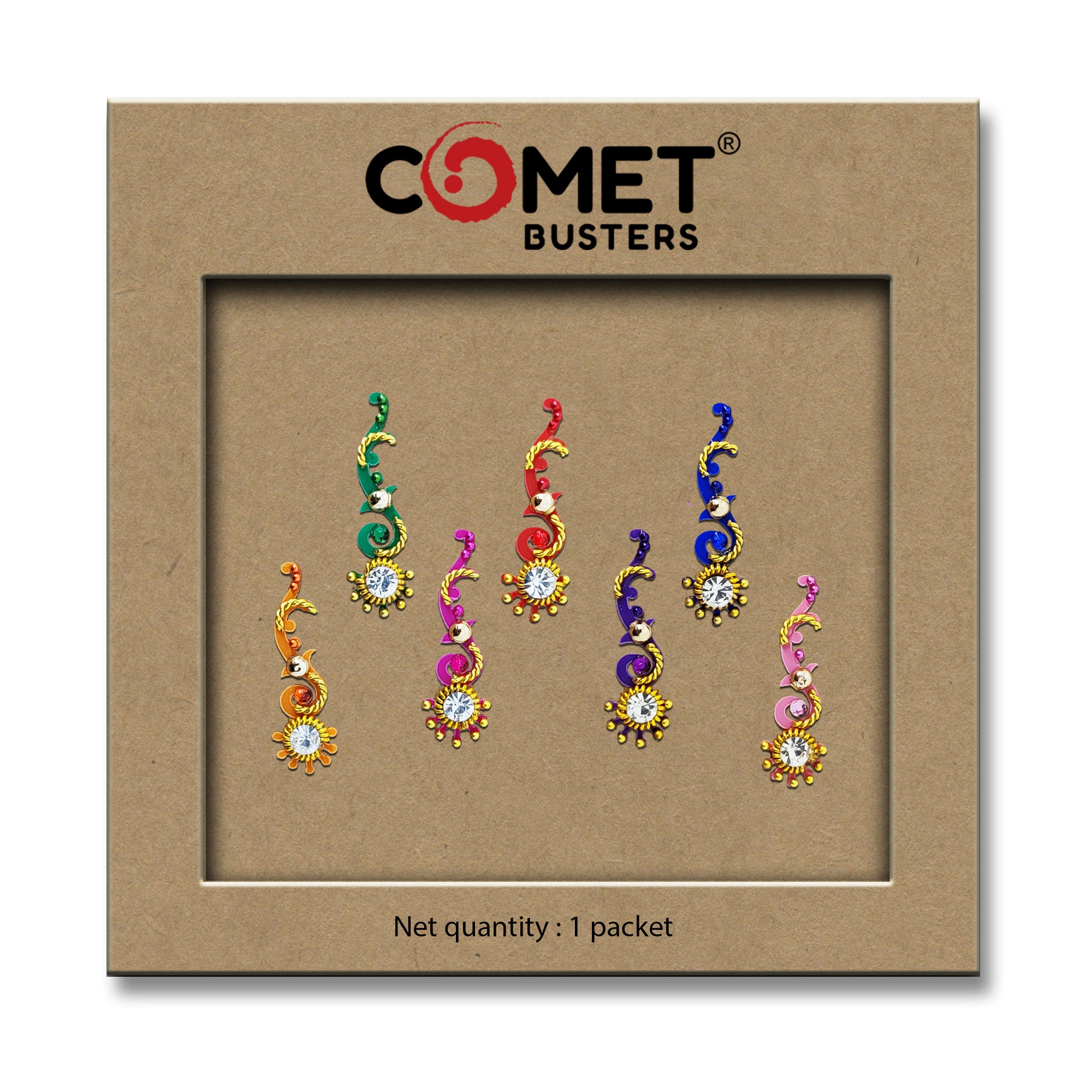 Comet Busters® Multicolor Artistic Abstract Bindis – Diamond, Shiny Beads – Handcrafted, Reusable & Skin-Friendly Bindis for Bridal Wear (20mm) – Forehead Bindi Stickers for Women & Girls – BIN074
