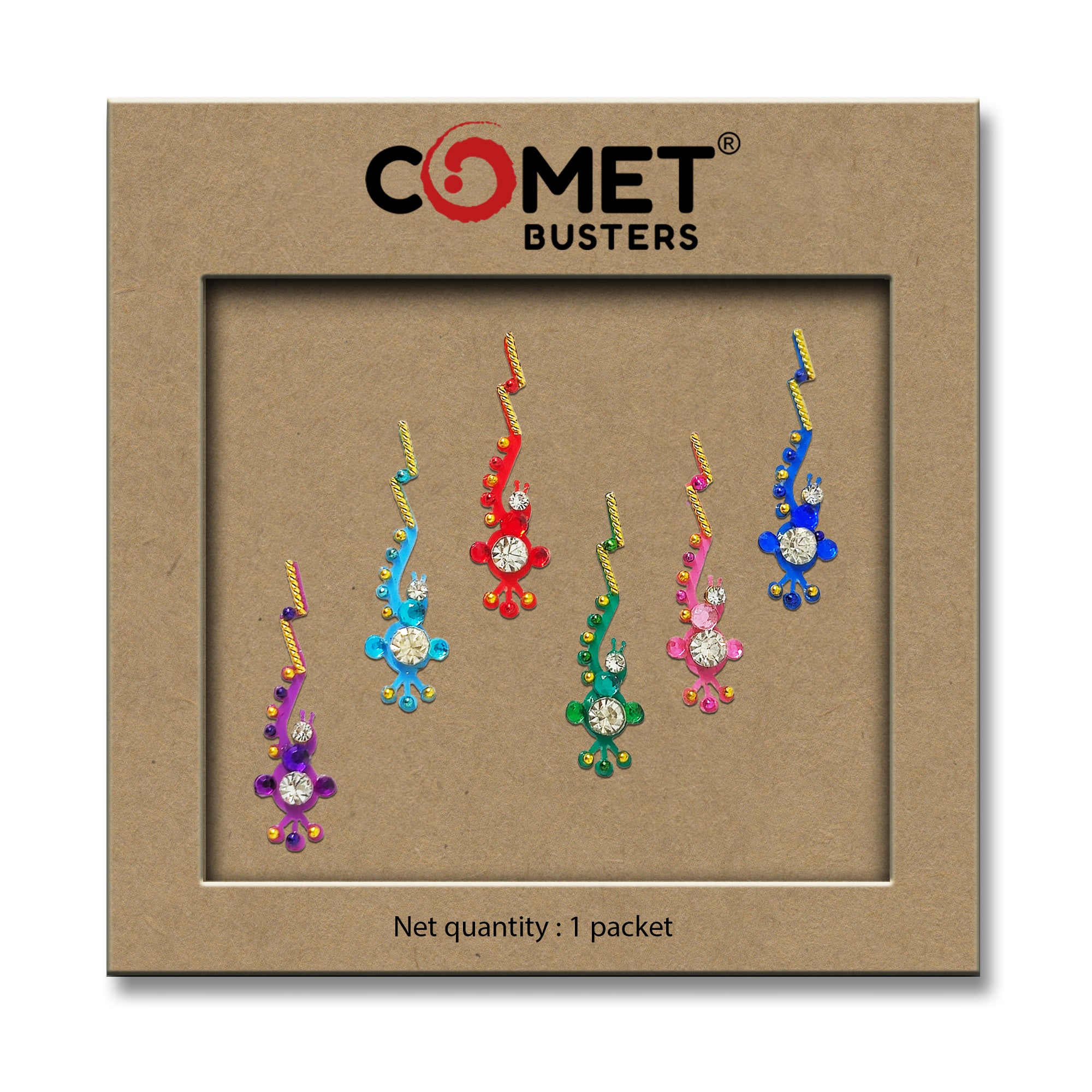 Comet Busters® Multicolor Artistic Abstract Bindis – Diamond, Shiny Beads – Handcrafted, Reusable & Skin-Friendly Bindis for Bridal Wear (20mm) – Forehead Bindi Stickers for Women & Girls – BIN091