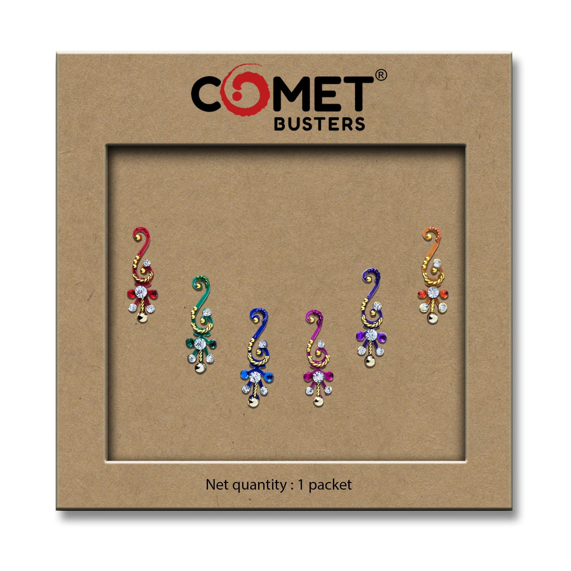 Comet Busters® Multicolor Artistic Abstract Bindis – Diamond, Shiny Beads – Handcrafted, Reusable & Skin-Friendly Bindis for Bridal Wear (20mm) – Forehead Bindi Stickers for Women & Girls – BIN097
