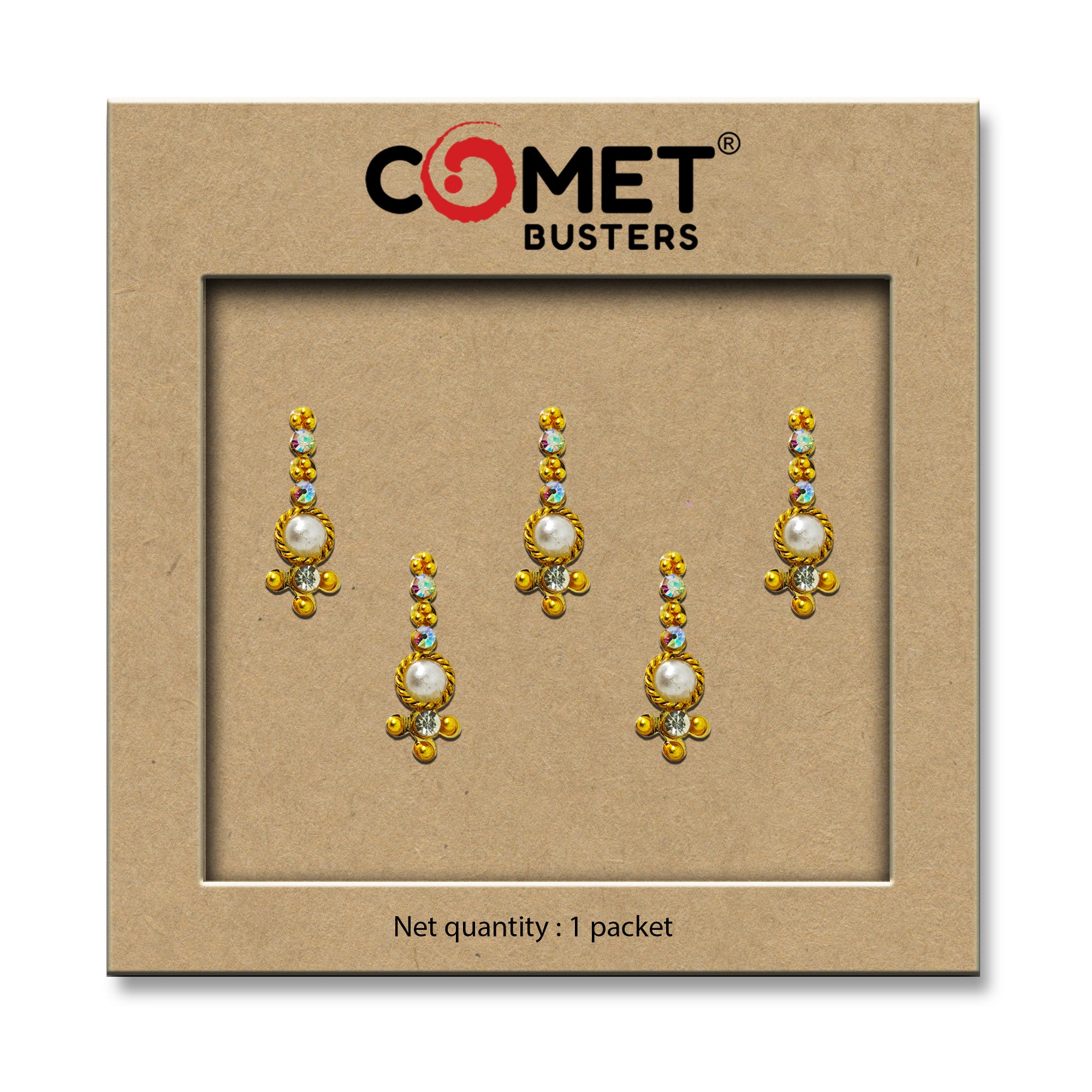 Comet Busters® Multicolor Artistic Abstract Bindis – Diamond, Pearl, Shiny Beads – Handcrafted, Reusable & Skin-Friendly Bindis for Party Wear (15mm) – Forehead Bindi Stickers for Women & Girls – BIN1632