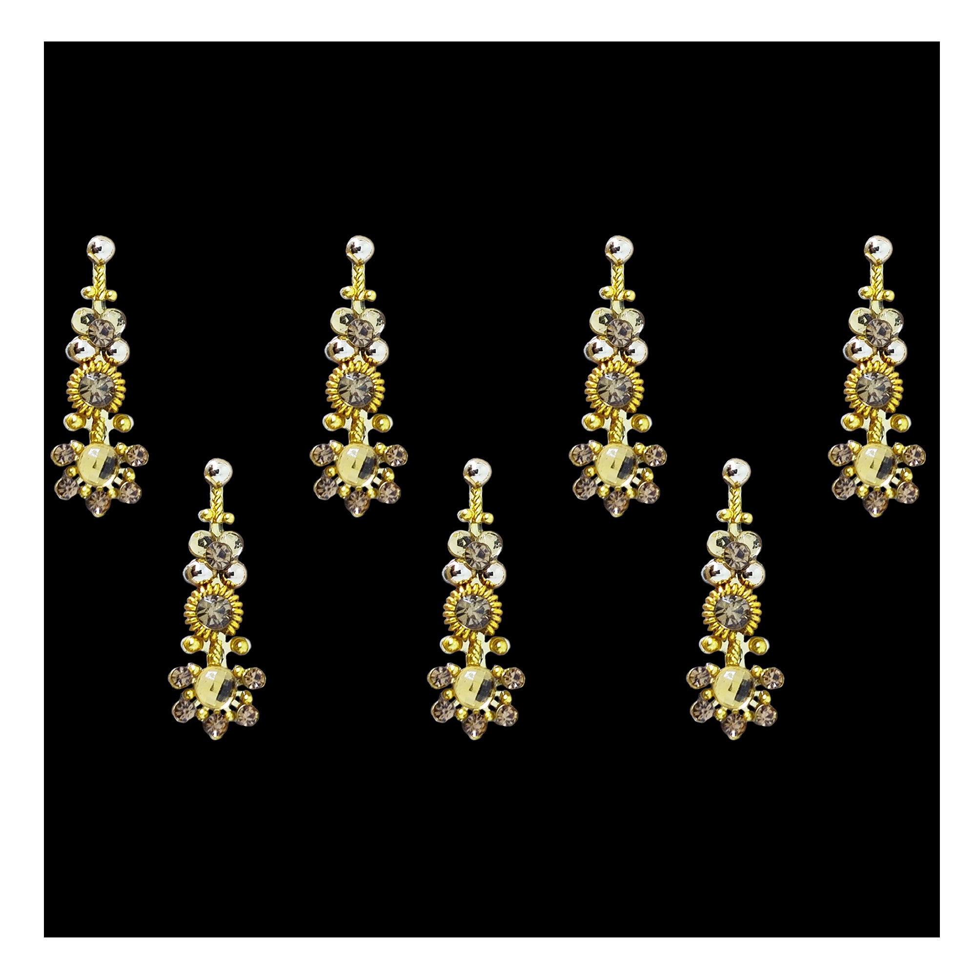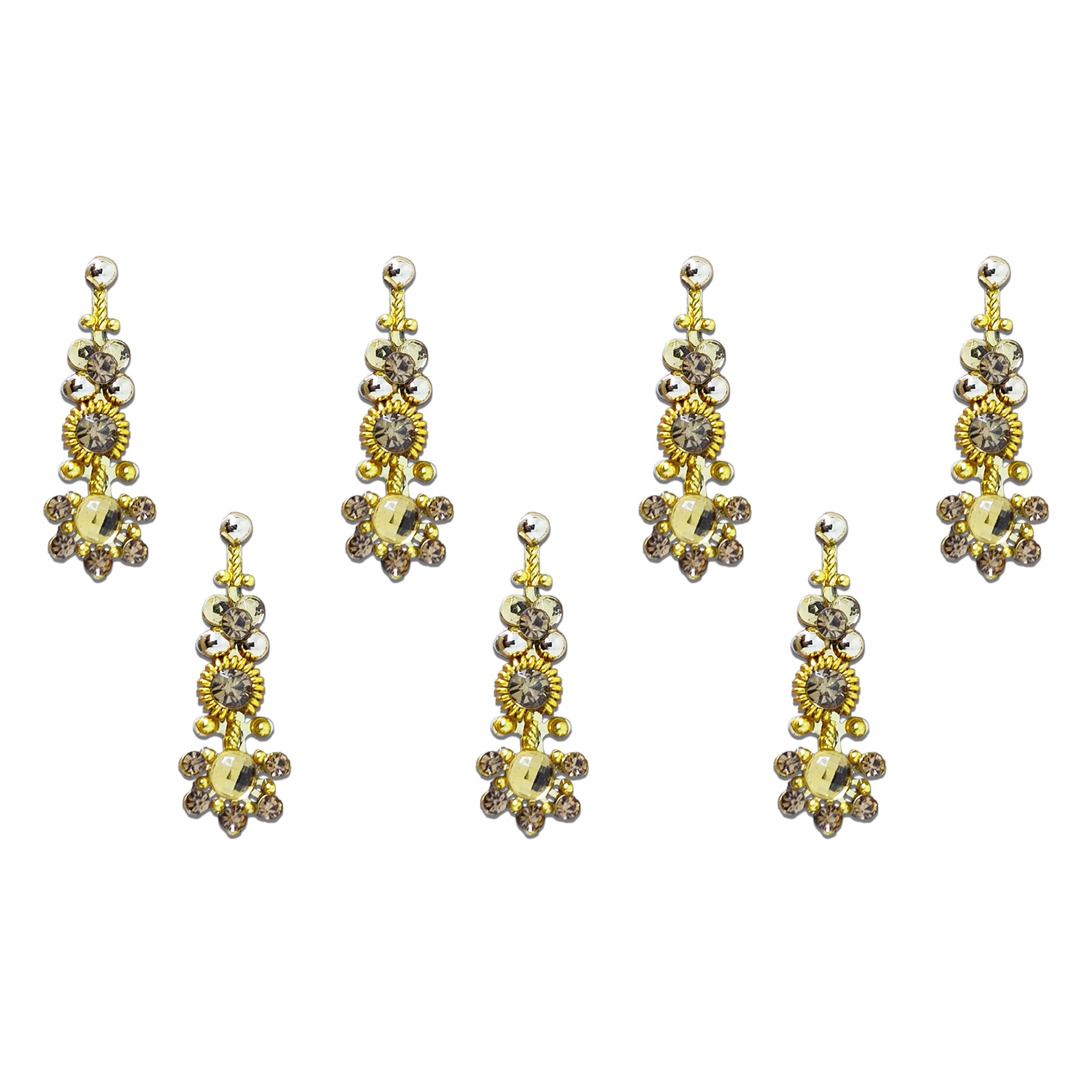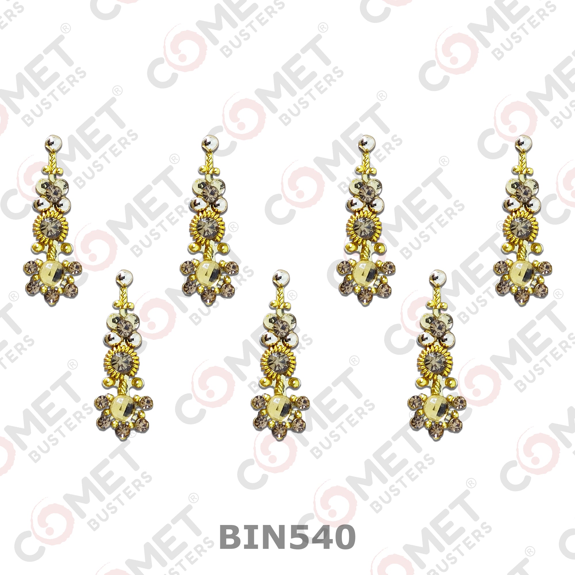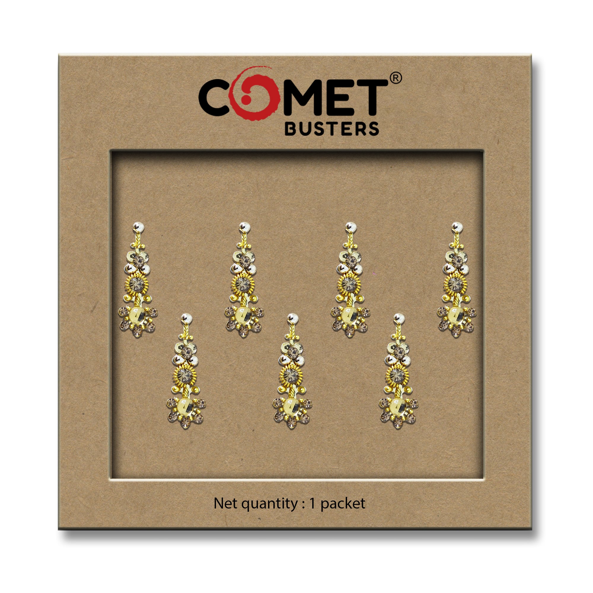 Comet Busters® Gold Artistic Abstract Bindis – Diamond, Shiny Beads – Handcrafted, Reusable & Skin-Friendly Bindis for Bridal Wear (20mm) – Forehead Bindi Stickers for Women & Girls – BIN540