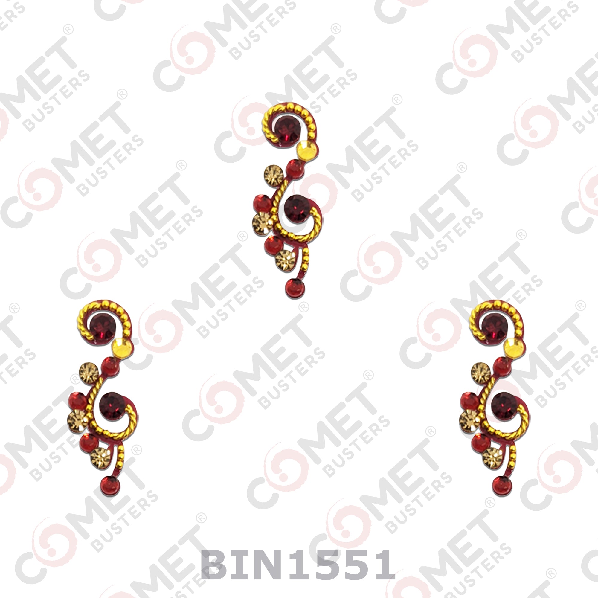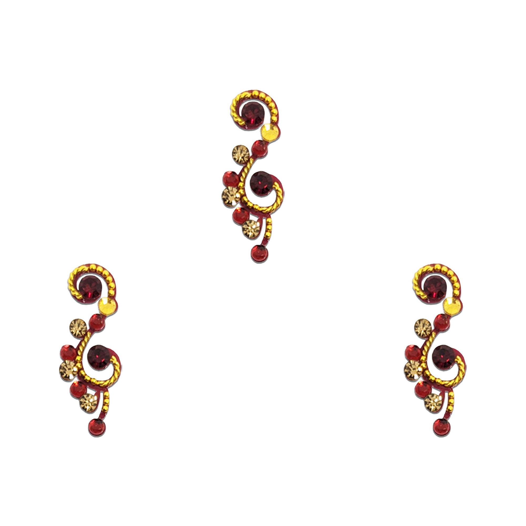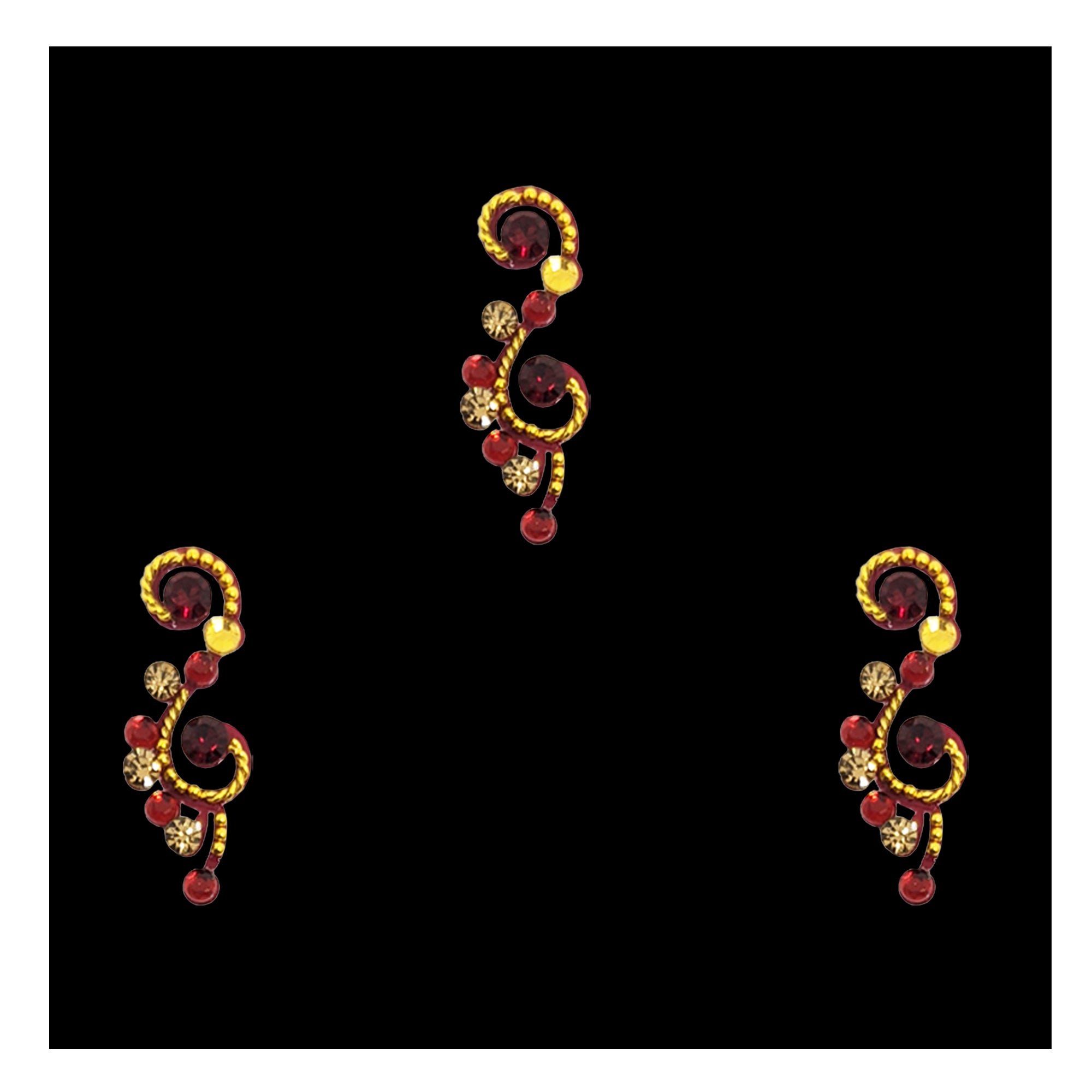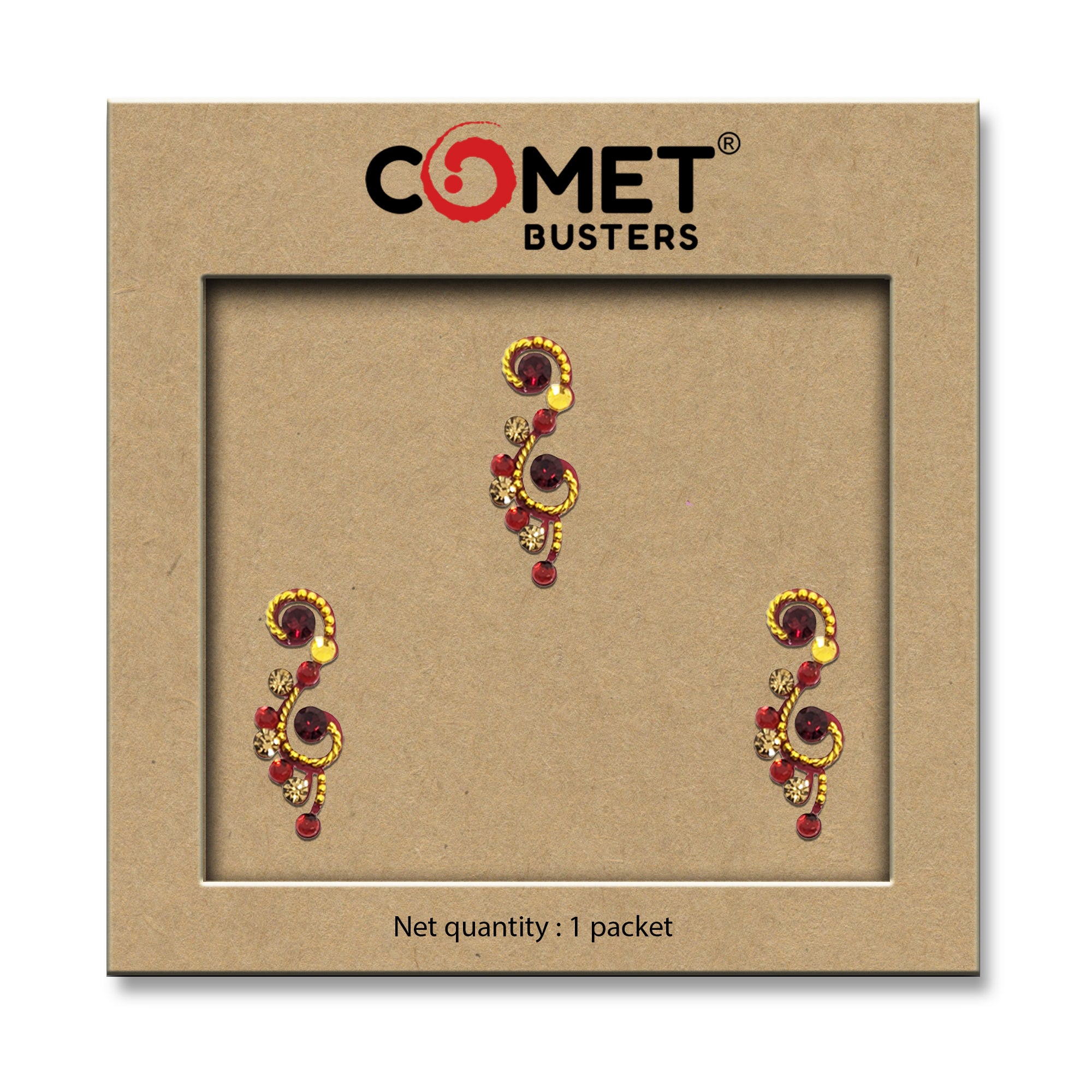 Comet Busters® Red, Gold, Multicolor Artistic Abstract Bindis – Shiny Beads, Diamond – Handcrafted, Reusable & Skin-Friendly Bindis for Party Wear (20mm) – Forehead Bindi Stickers for Women & Girls – BIN1551
