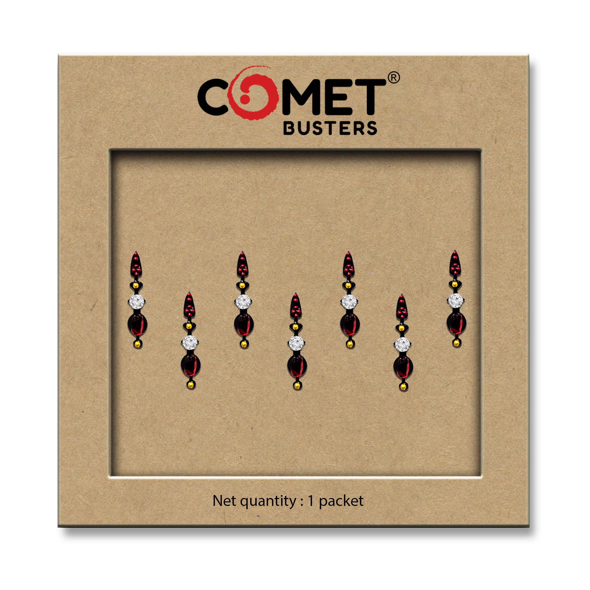 Comet Busters® Maroon Artistic Abstract Bindis – Diamond, Shiny Beads, PVC – Handcrafted, Reusable & Skin-Friendly Bindis for Party Wear (18mm) – Forehead Bindi Stickers for Women & Girls – BIN1164