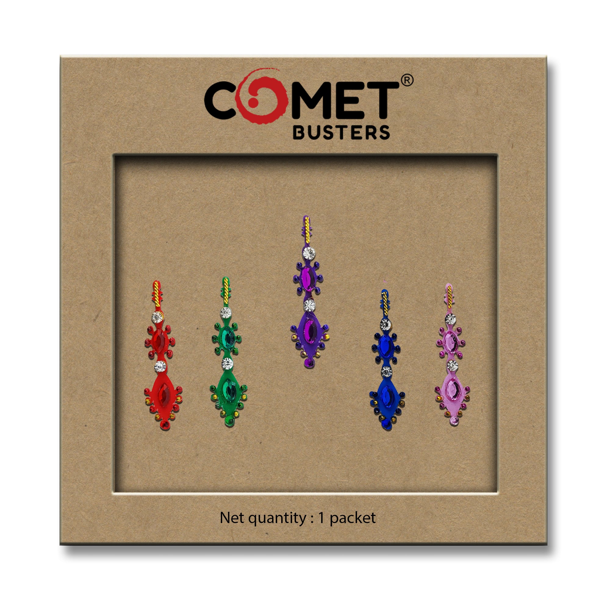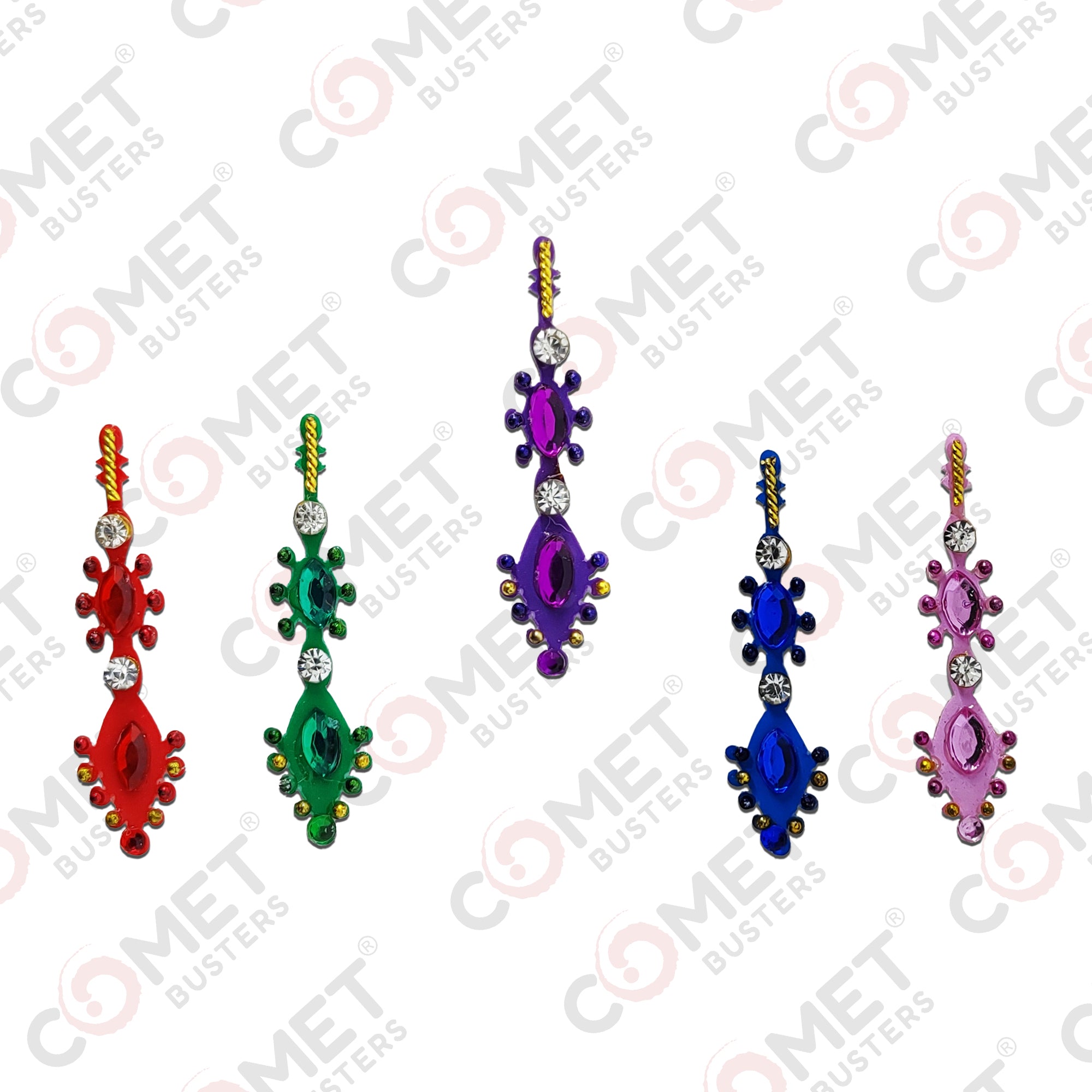 Comet Busters® Multicolor Artistic Abstract Bindis – Crystal, Diamond, Shiny Beads – Handcrafted, Reusable & Skin-Friendly Bindis for Bridal Wear (25mm) – Forehead Bindi Stickers for Women & Girls – BIN033