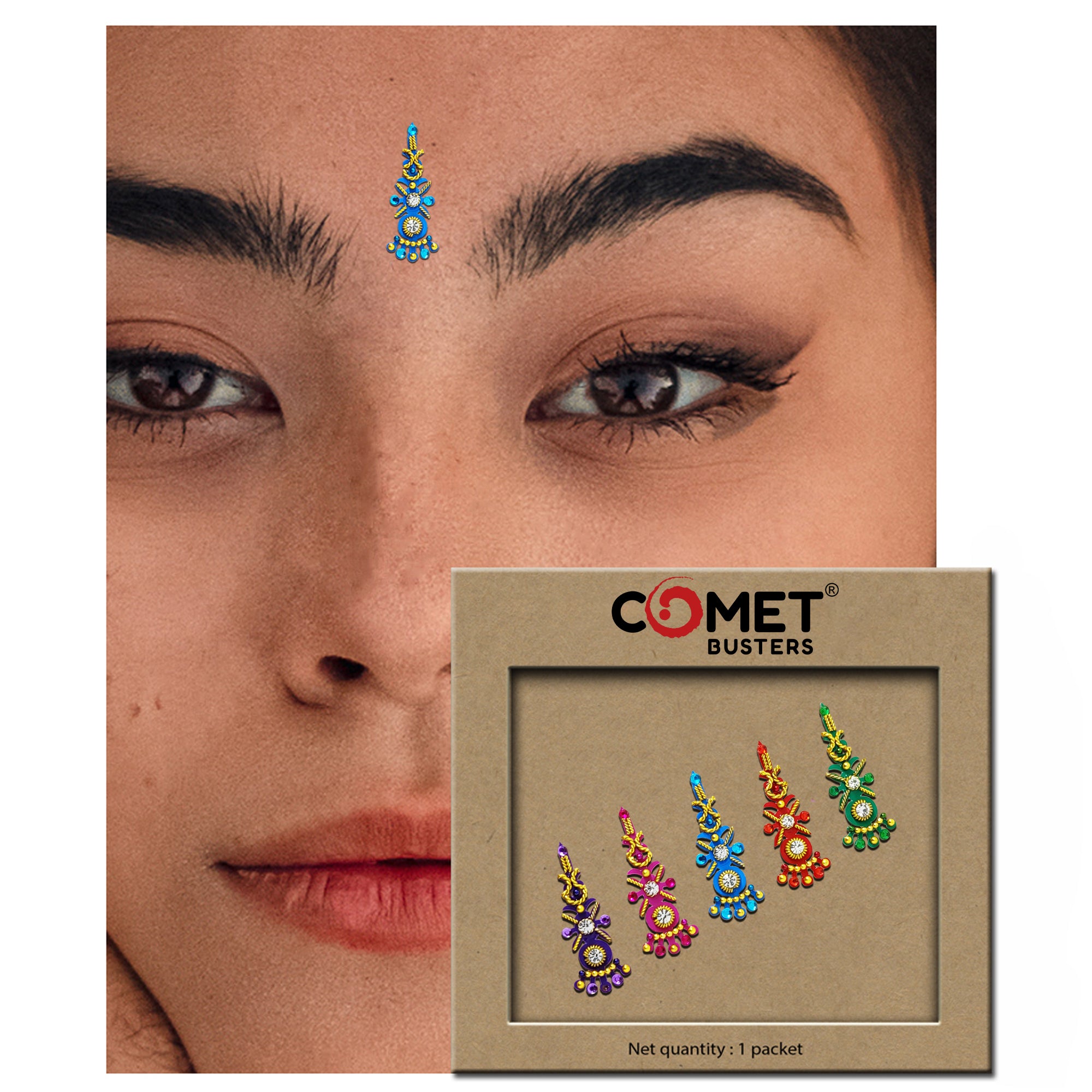 Comet Busters® Multicolor Artistic Bridal & Festive Bindis – Handcrafted, Reusable & Skin-Friendly (25mm) [BIN001]