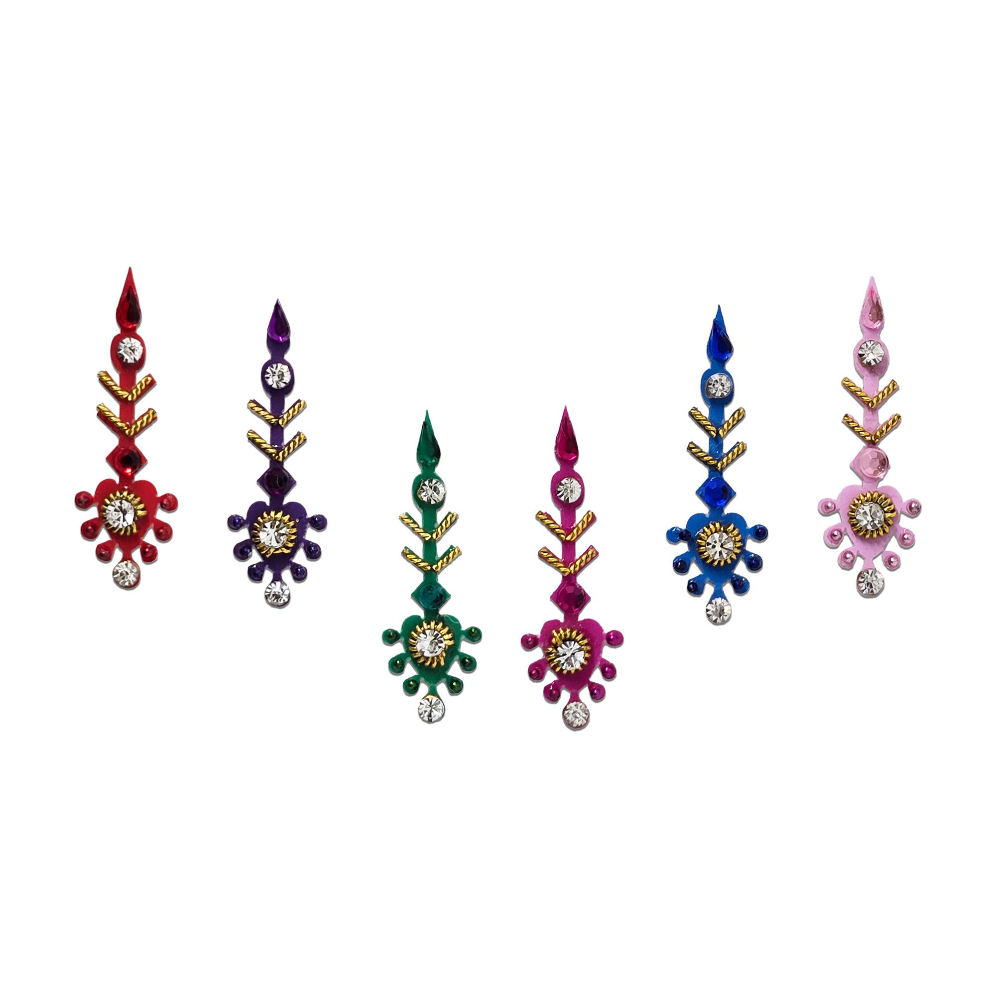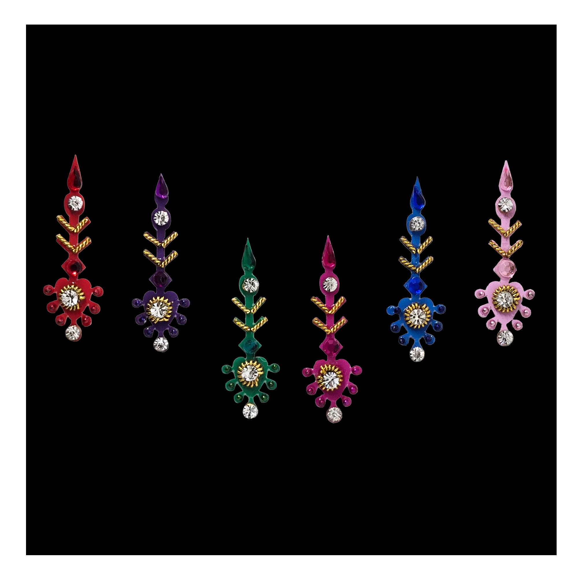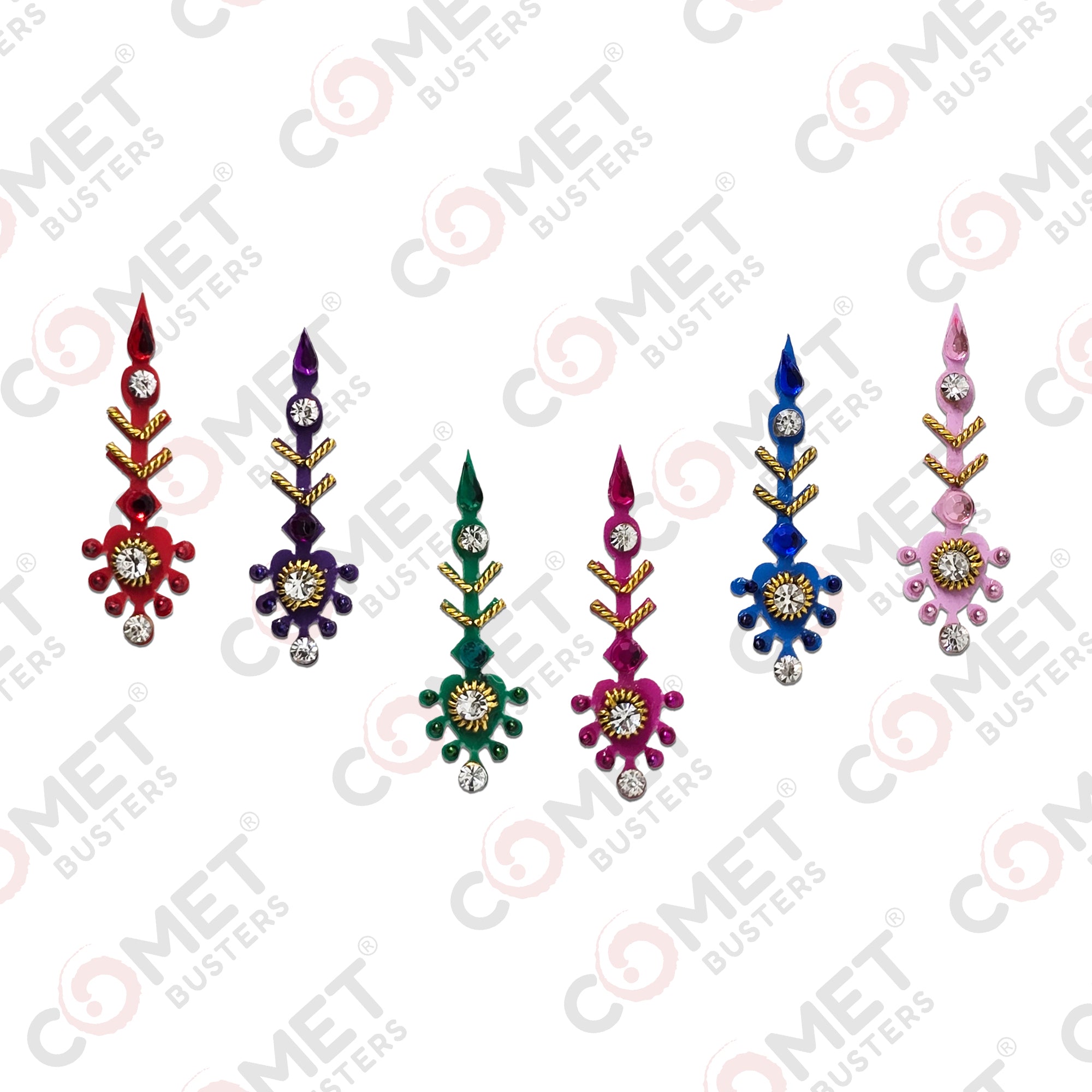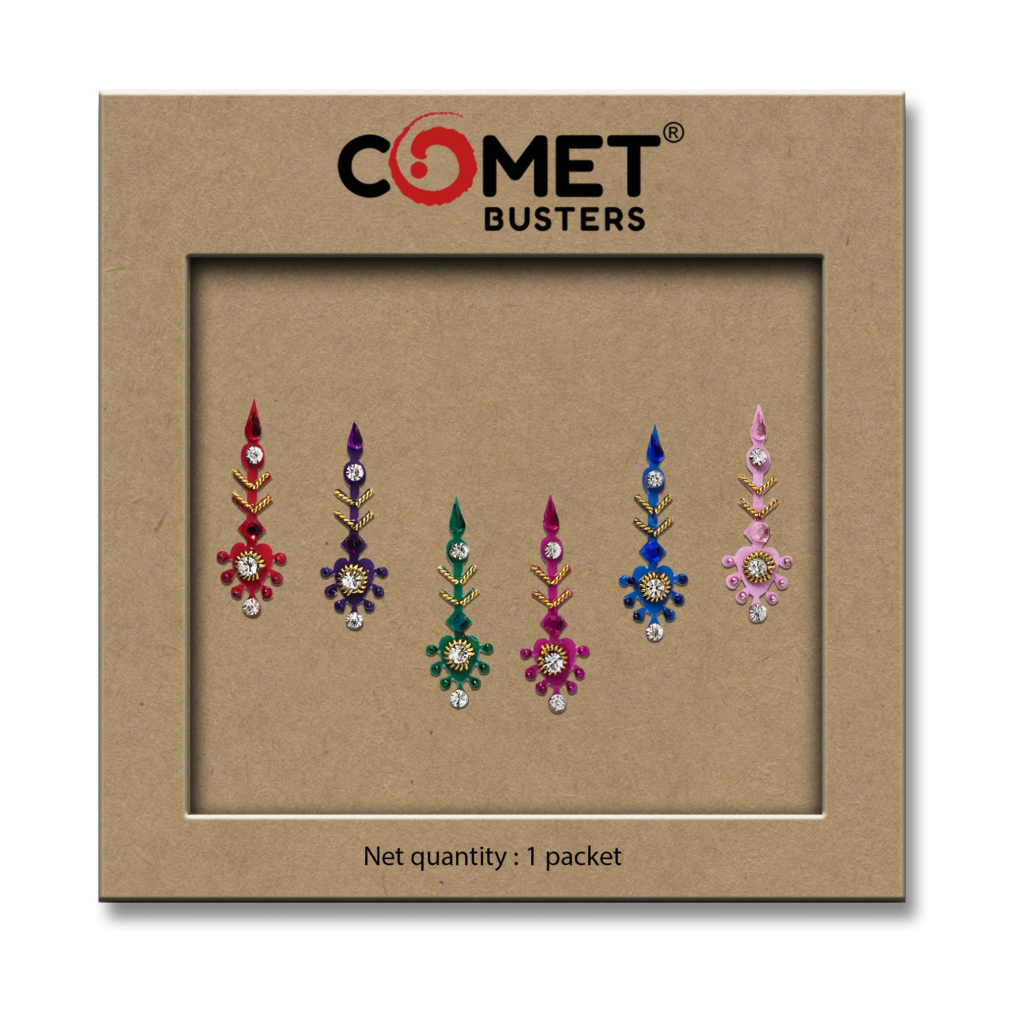Comet Busters® Multicolor Artistic Abstract Bindis – Crystal, Diamond, Shiny Beads – Handcrafted, Reusable & Skin-Friendly Bindis for Bridal Wear (25mm) – Forehead Bindi Stickers for Women & Girls – BIN081