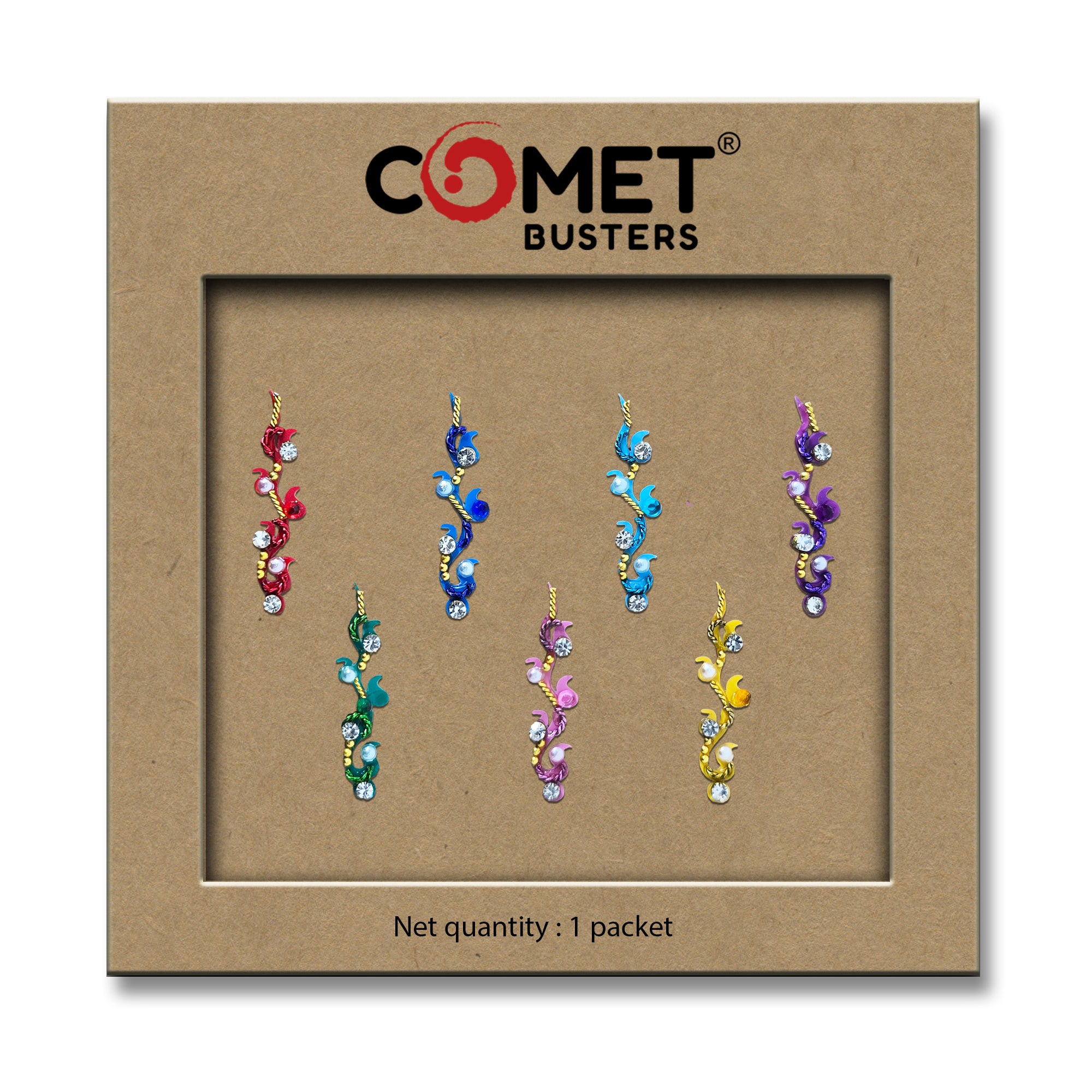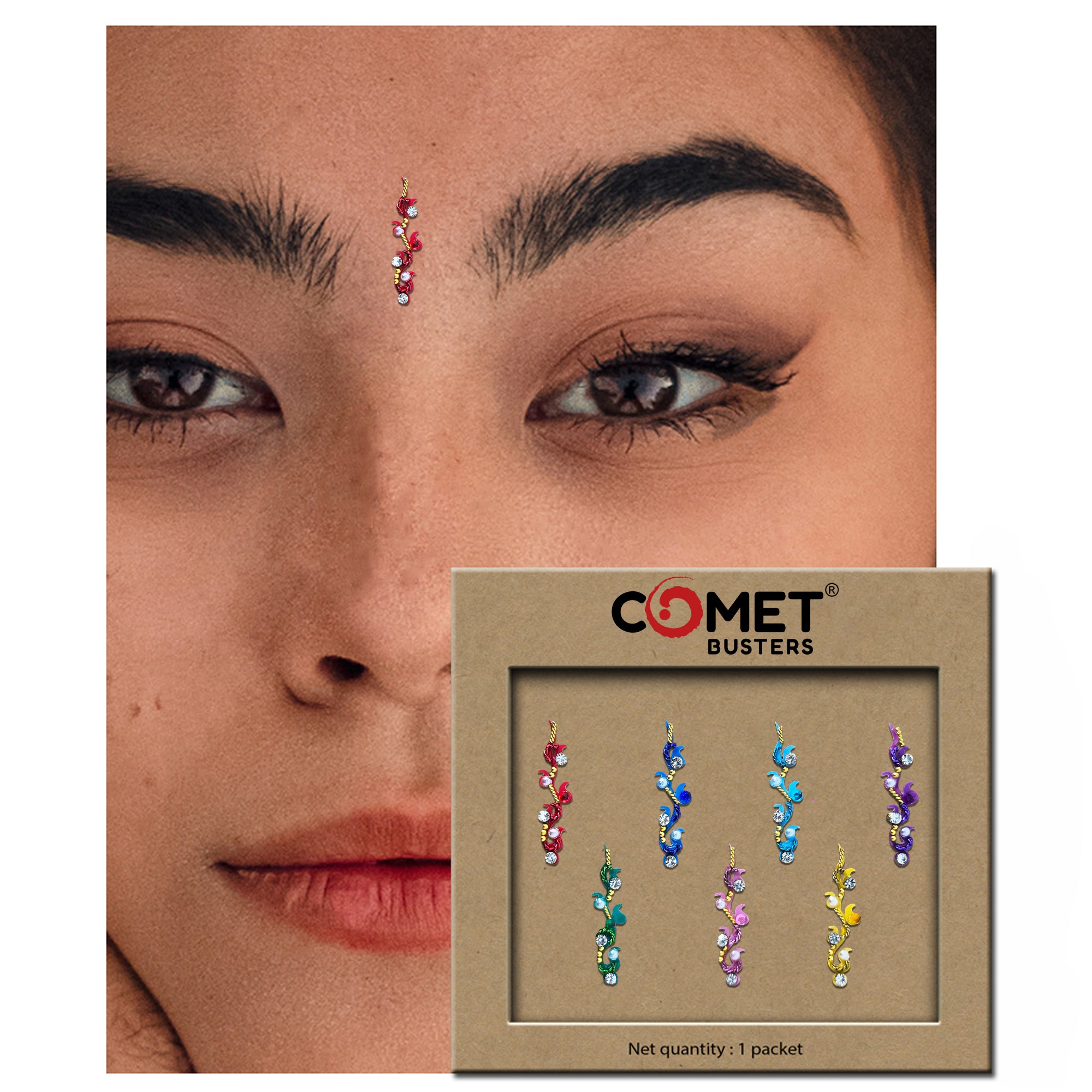 Comet Busters® Multicolor Artistic Abstract Bindis – Diamond, Pearl, Shiny Beads – Handcrafted, Reusable & Skin-Friendly Bindis for Bridal Wear (20mm) – Forehead Bindi Stickers for Women & Girls – BIN088