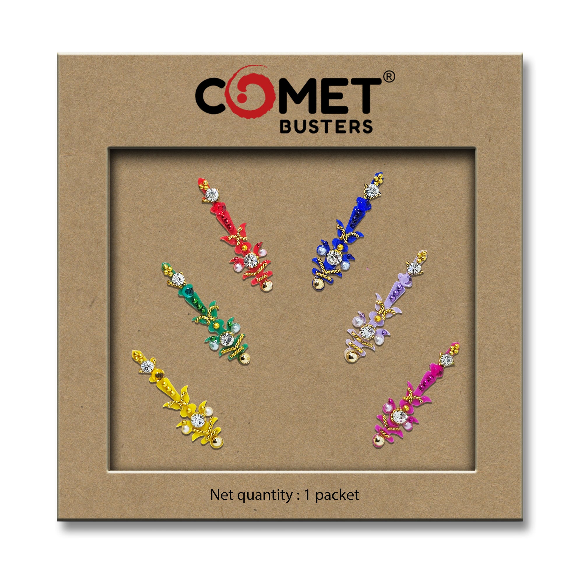 Comet Busters® Multicolor Artistic Abstract Bindis – Diamond, Pearl, Shiny Beads – Handcrafted, Reusable & Skin-Friendly Bindis for Bridal Wear (20mm) – Forehead Bindi Stickers for Women & Girls – BIN106