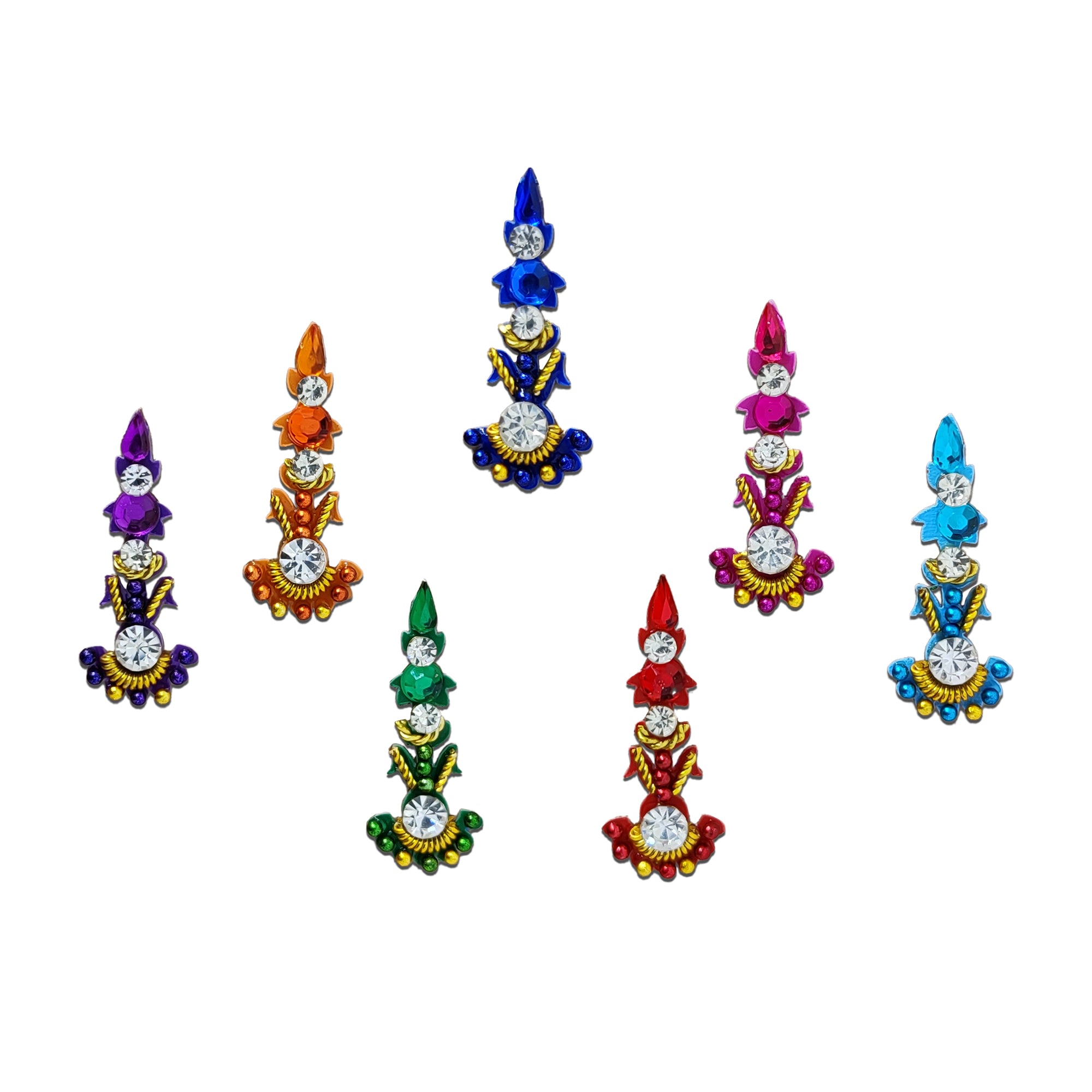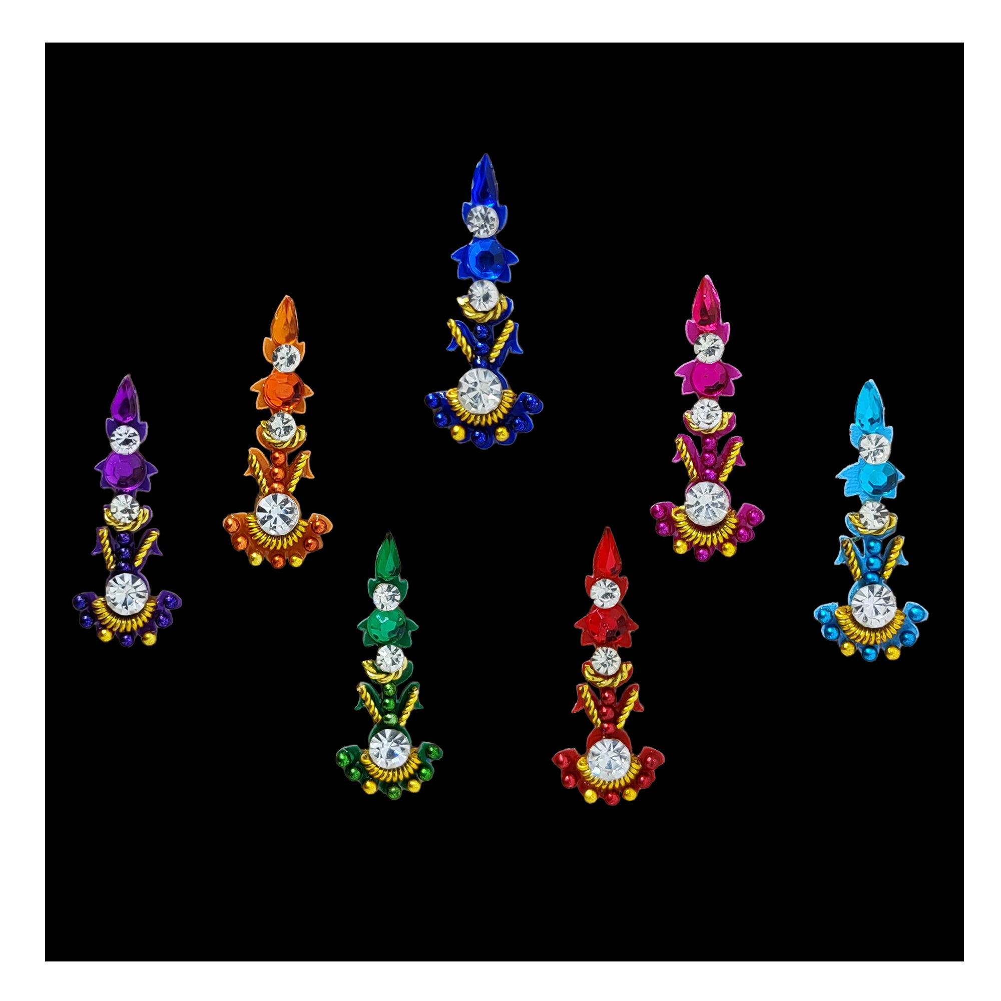• Multicolor Bindis: Vibrant options for a lively look.