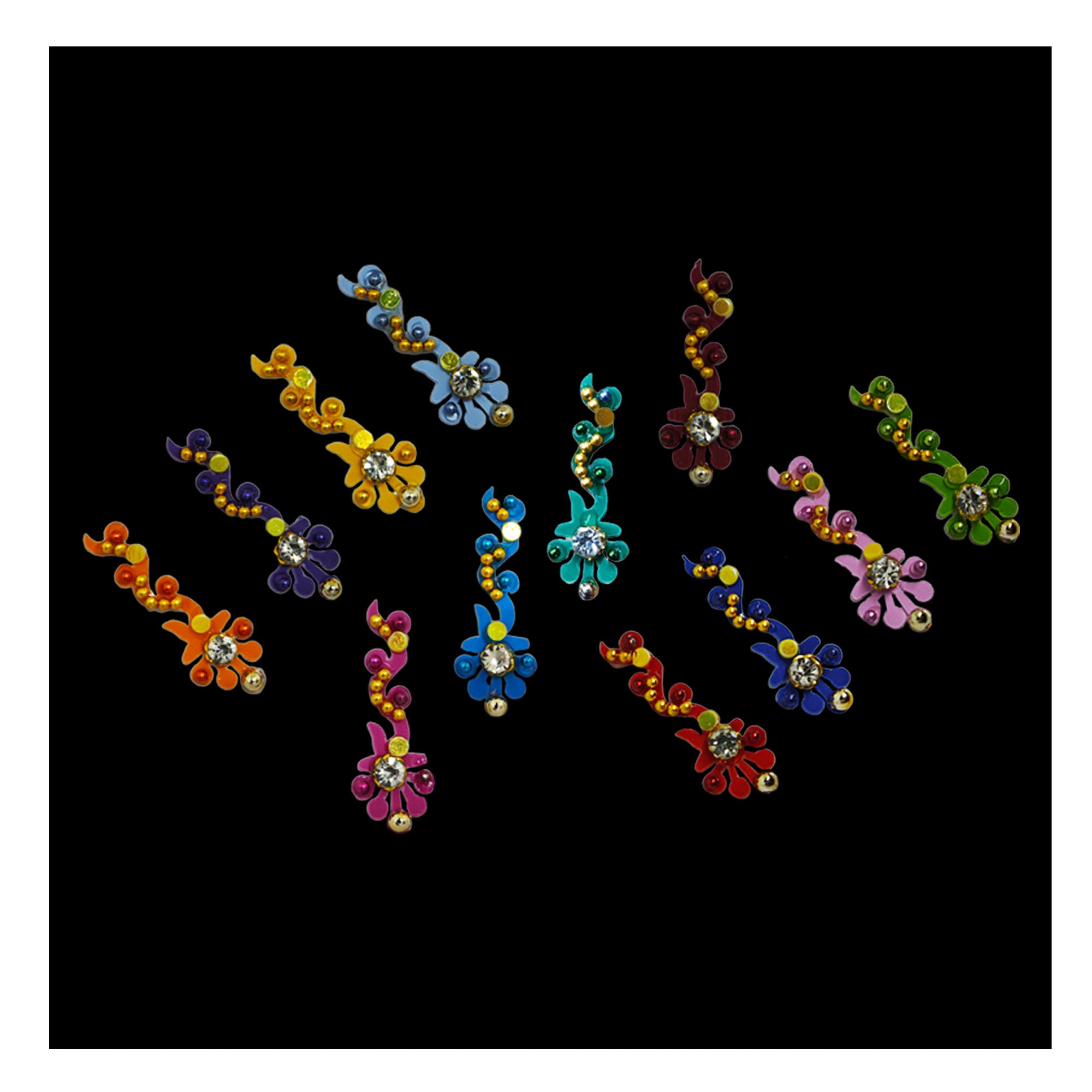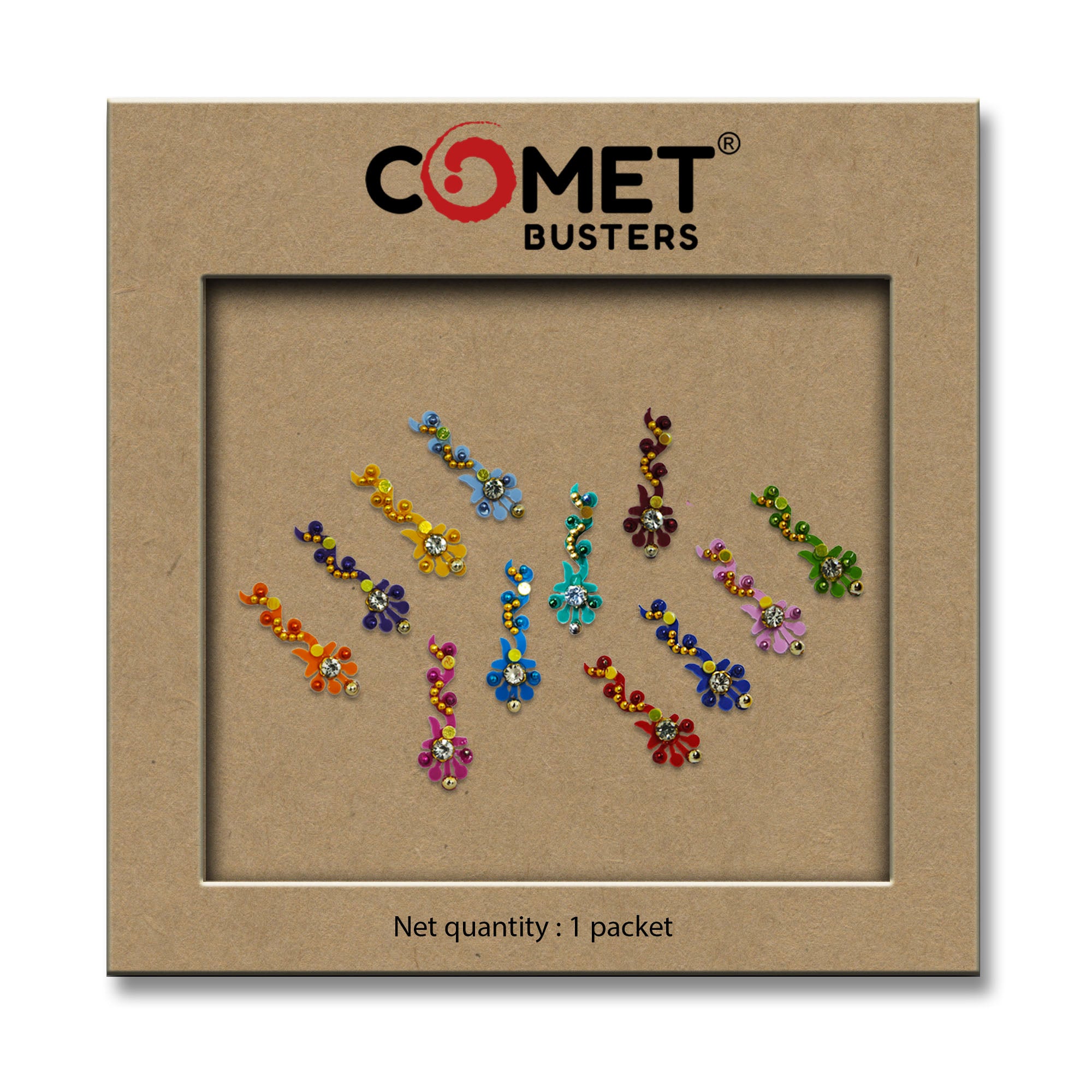 Comet Busters® Multicolor Artistic Abstract Bindis – Diamond, Shiny Beads – Handcrafted, Reusable & Skin-Friendly Bindis for Bridal Wear (15mm) – Forehead Bindi Stickers for Women & Girls – BIN101