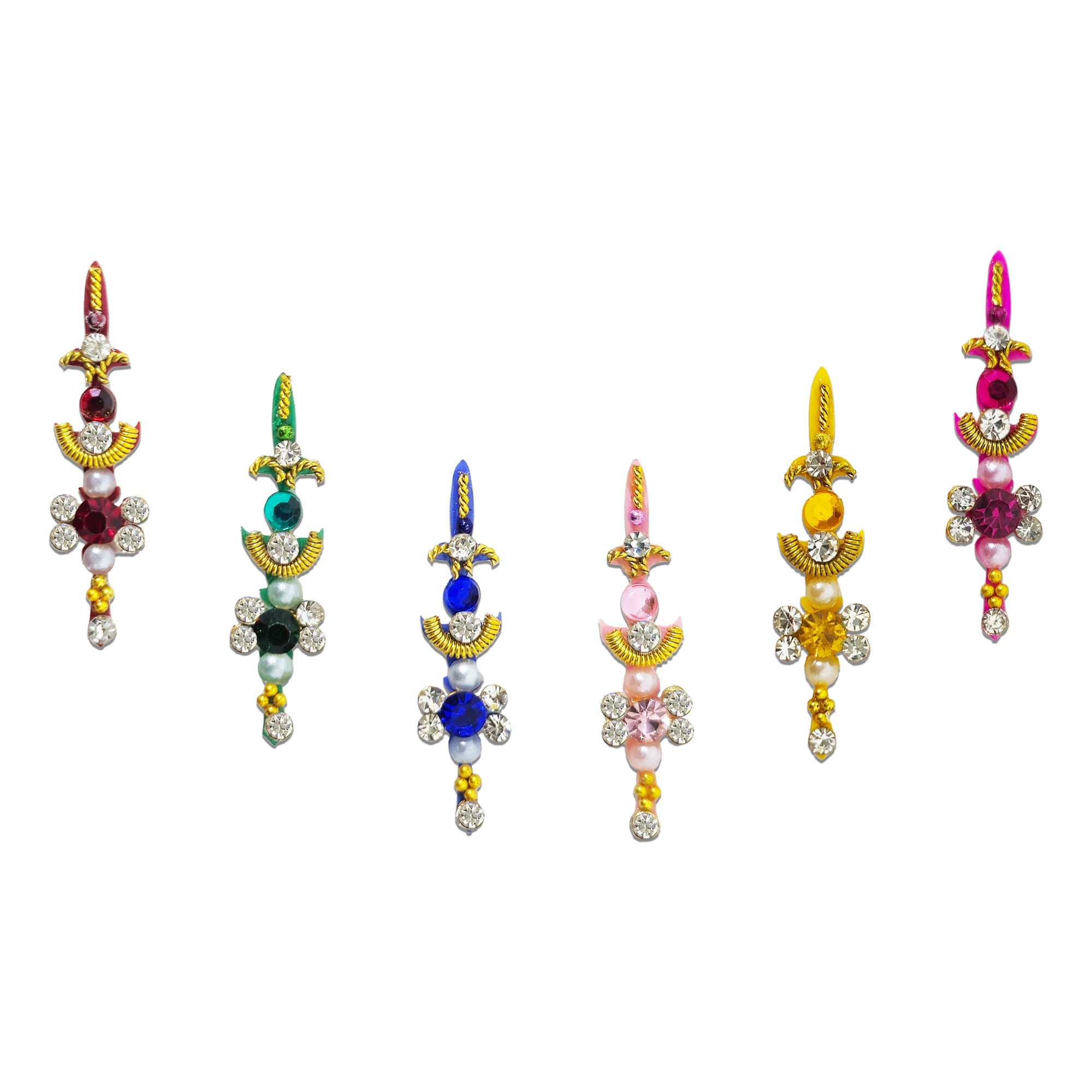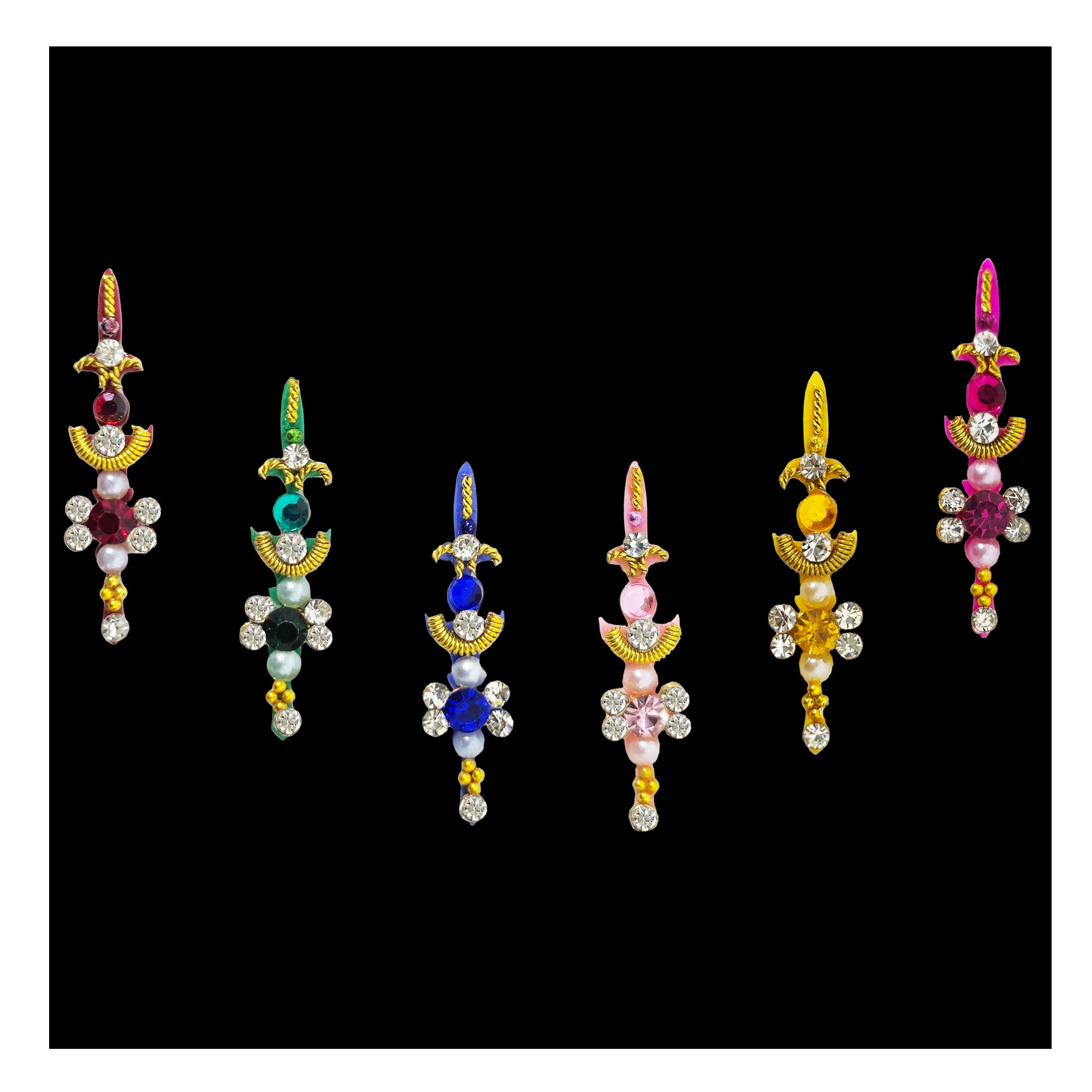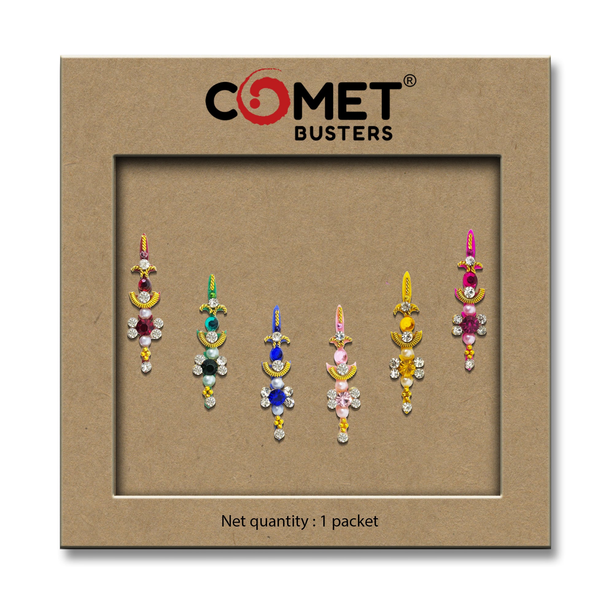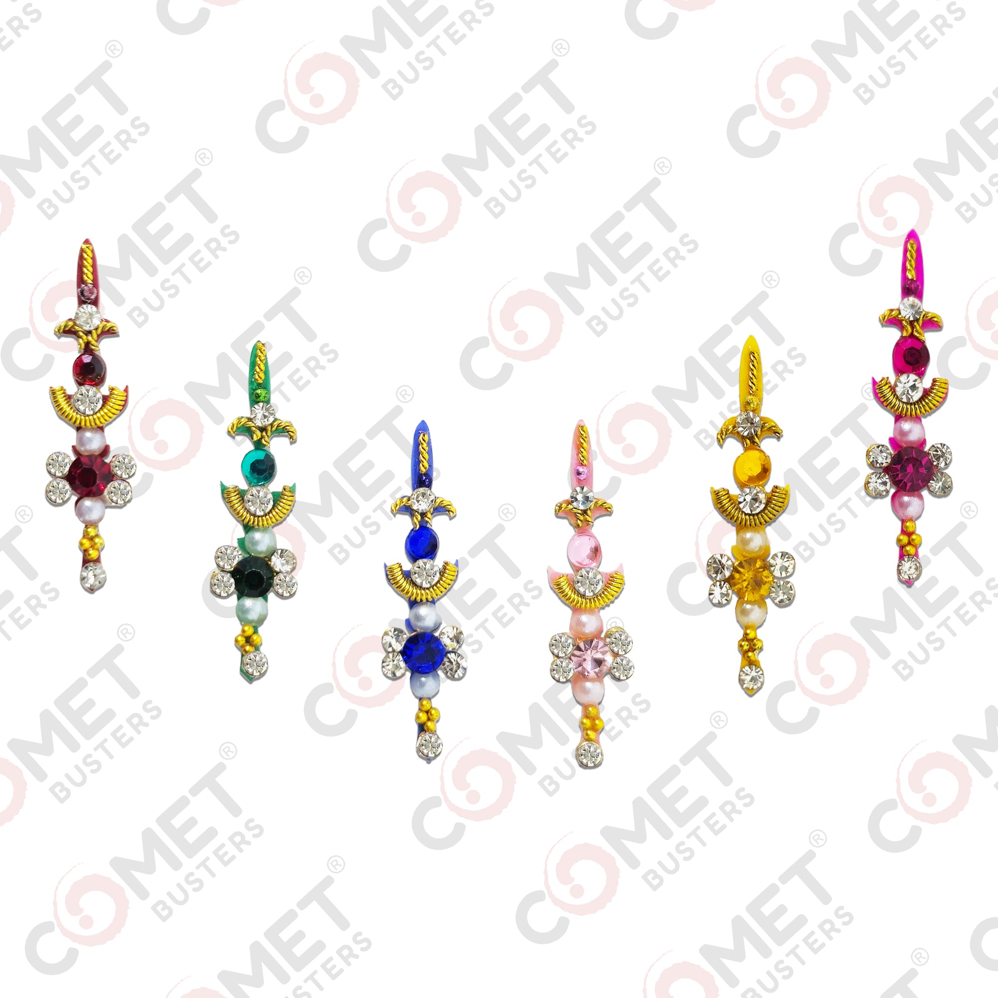 Comet Busters® Multicolor Artistic Abstract Bindis – Diamond, Pearl, Shiny Beads – Handcrafted, Reusable & Skin-Friendly Bindis for Bridal Wear (25mm) – Forehead Bindi Stickers for Women & Girls – BIN111