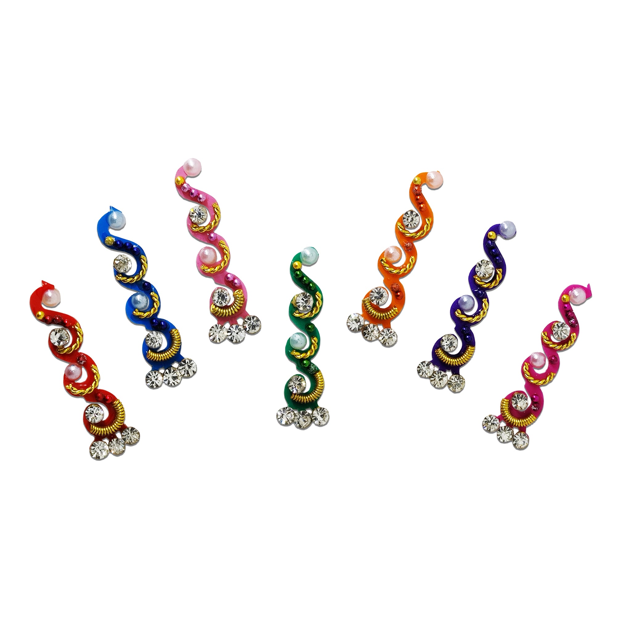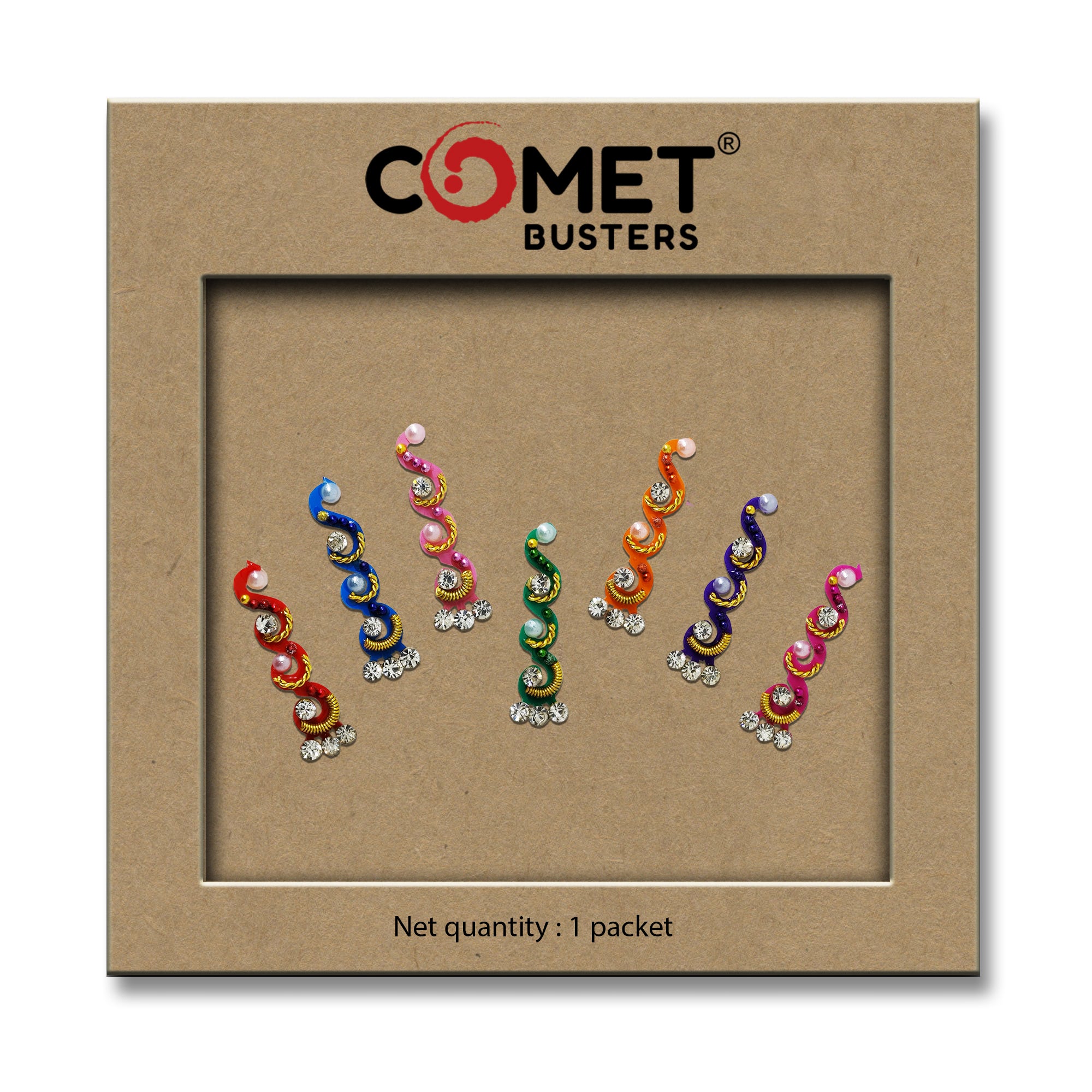 Comet Busters® Multicolor Artistic Abstract Bindis – Diamond, Shiny Beads – Handcrafted, Reusable & Skin-Friendly Bindis for Bridal Wear (20mm) – Forehead Bindi Stickers for Women & Girls – BIN333