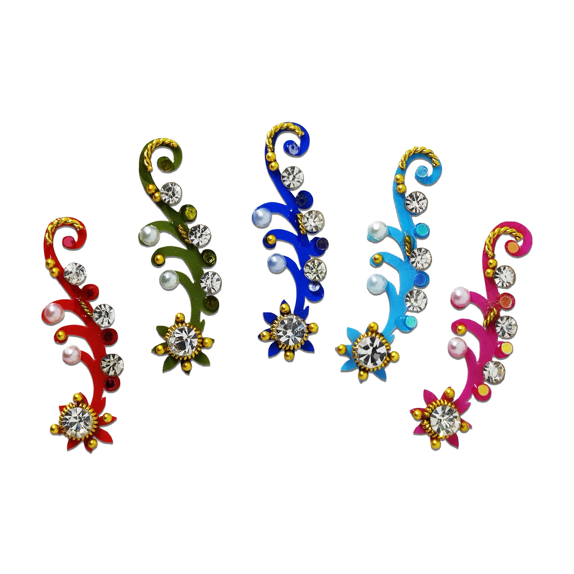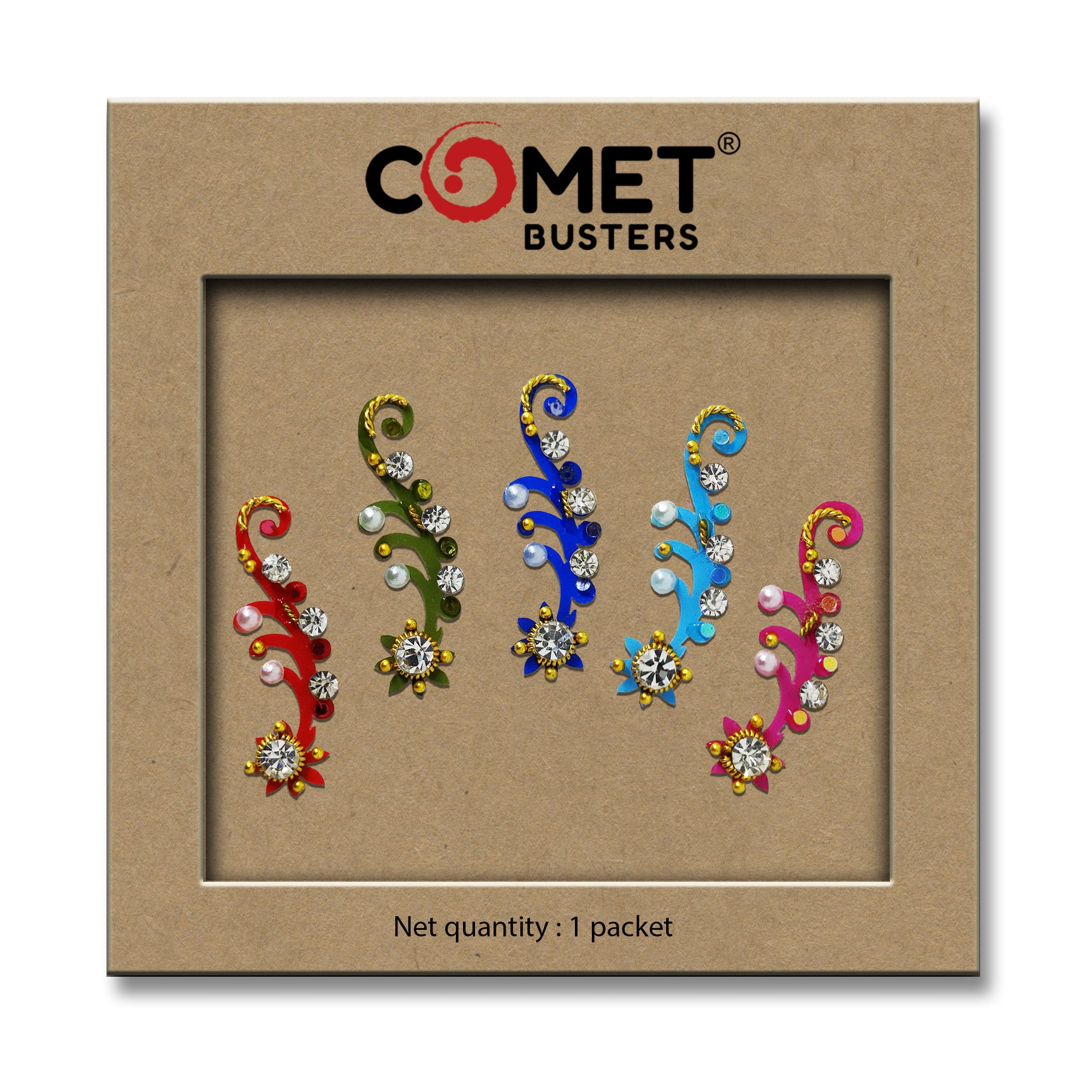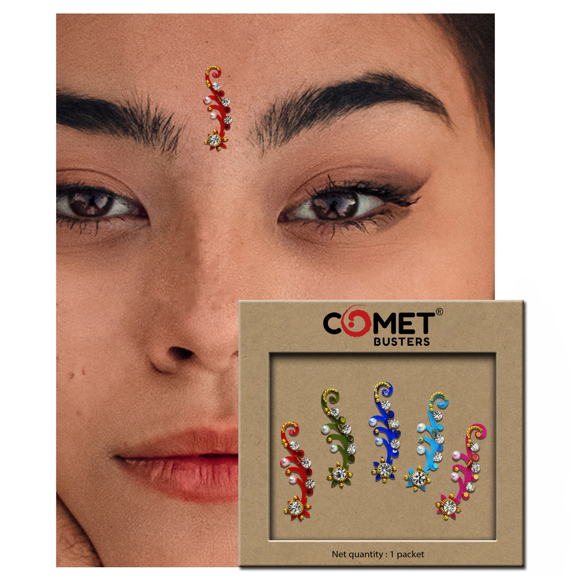 Comet Busters® Multicolor Artistic Abstract Bindis – Diamond, Shiny Beads – Handcrafted, Reusable & Skin-Friendly Bindis for Bridal Wear (25mm) – Forehead Bindi Stickers for Women & Girls – BIN334