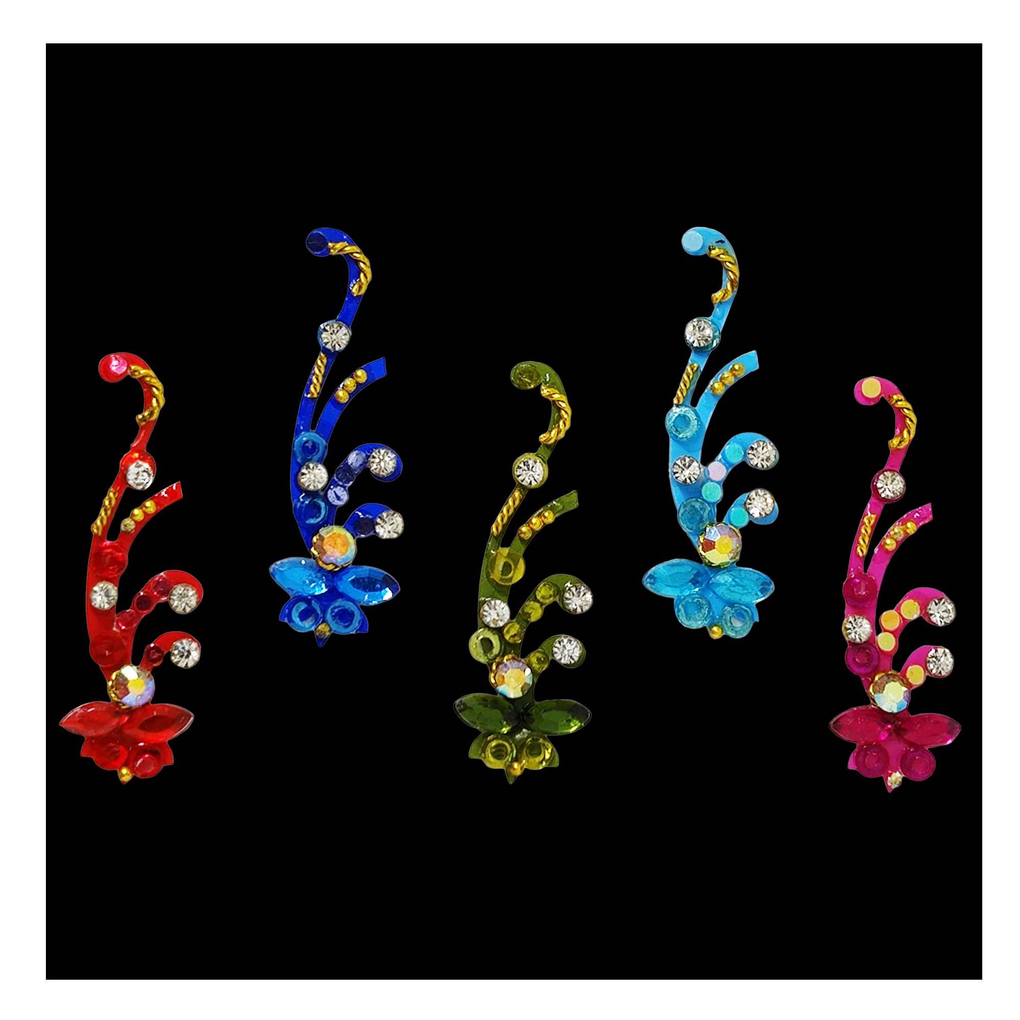 • Multicolor Bindis: Vibrant options for a lively look.