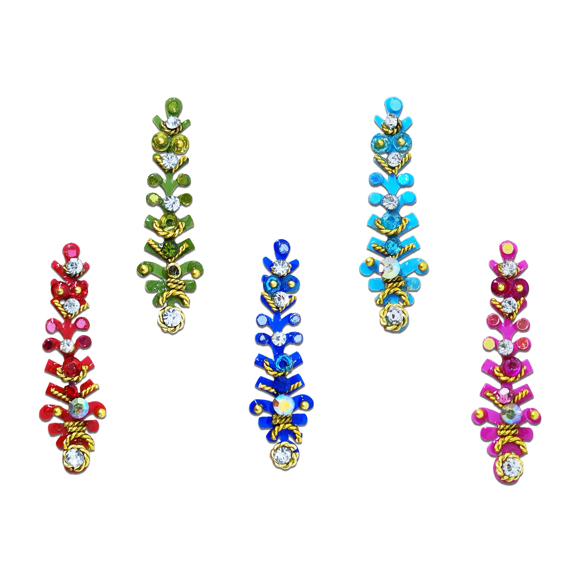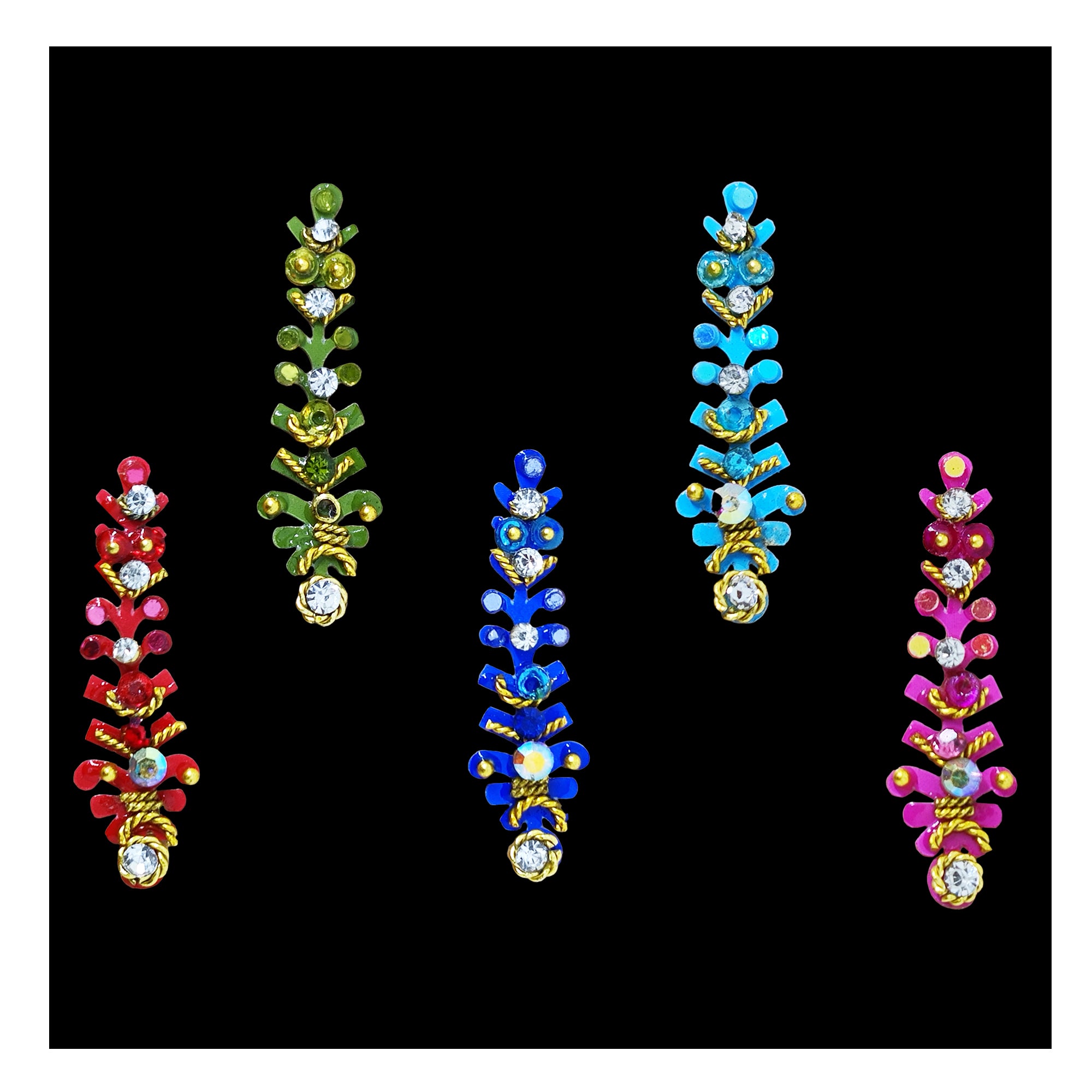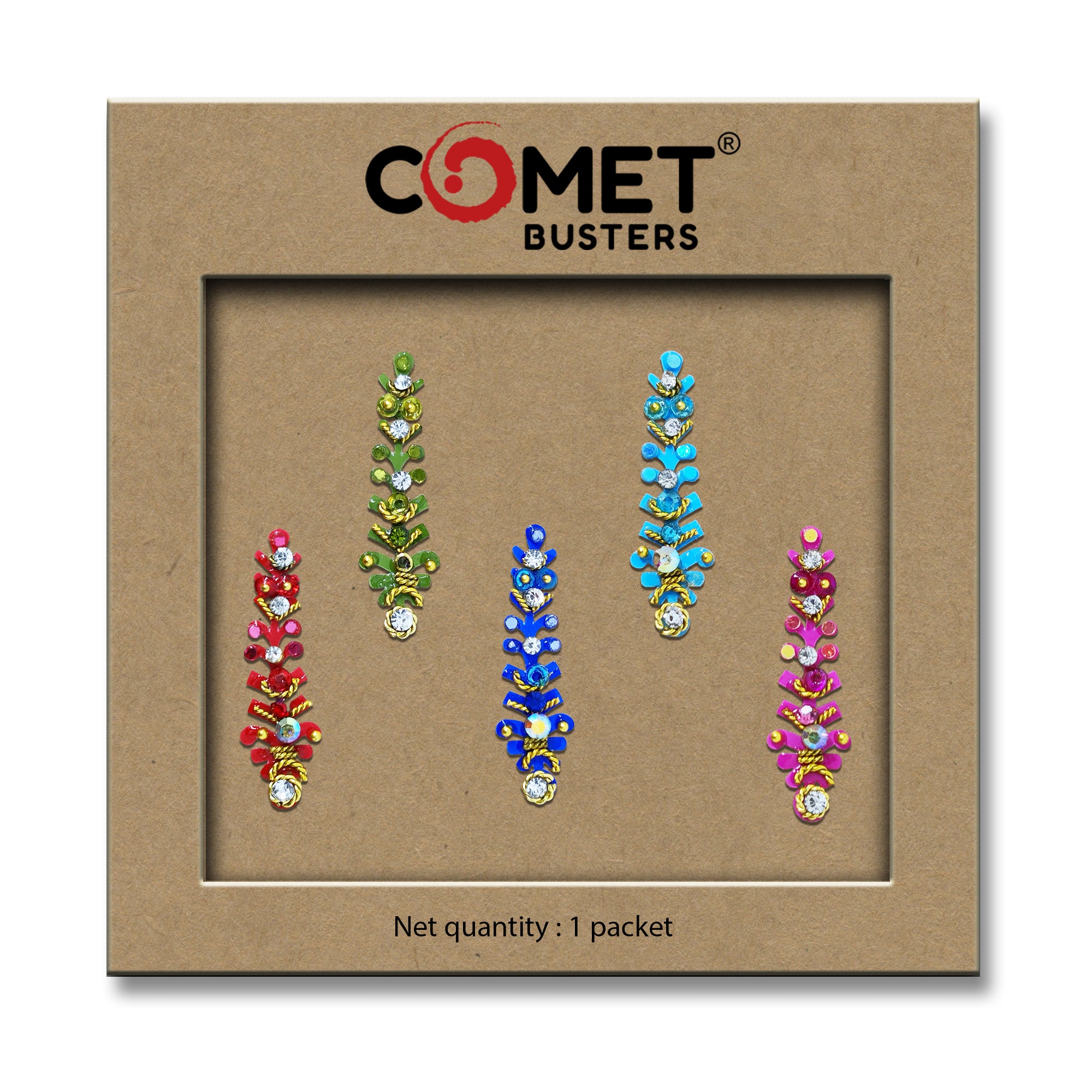 Comet Busters® Multicolor Artistic Abstract Bindis – Diamond, Shiny Beads – Handcrafted, Reusable & Skin-Friendly Bindis for Bridal Wear (25mm) – Forehead Bindi Stickers for Women & Girls – BIN340