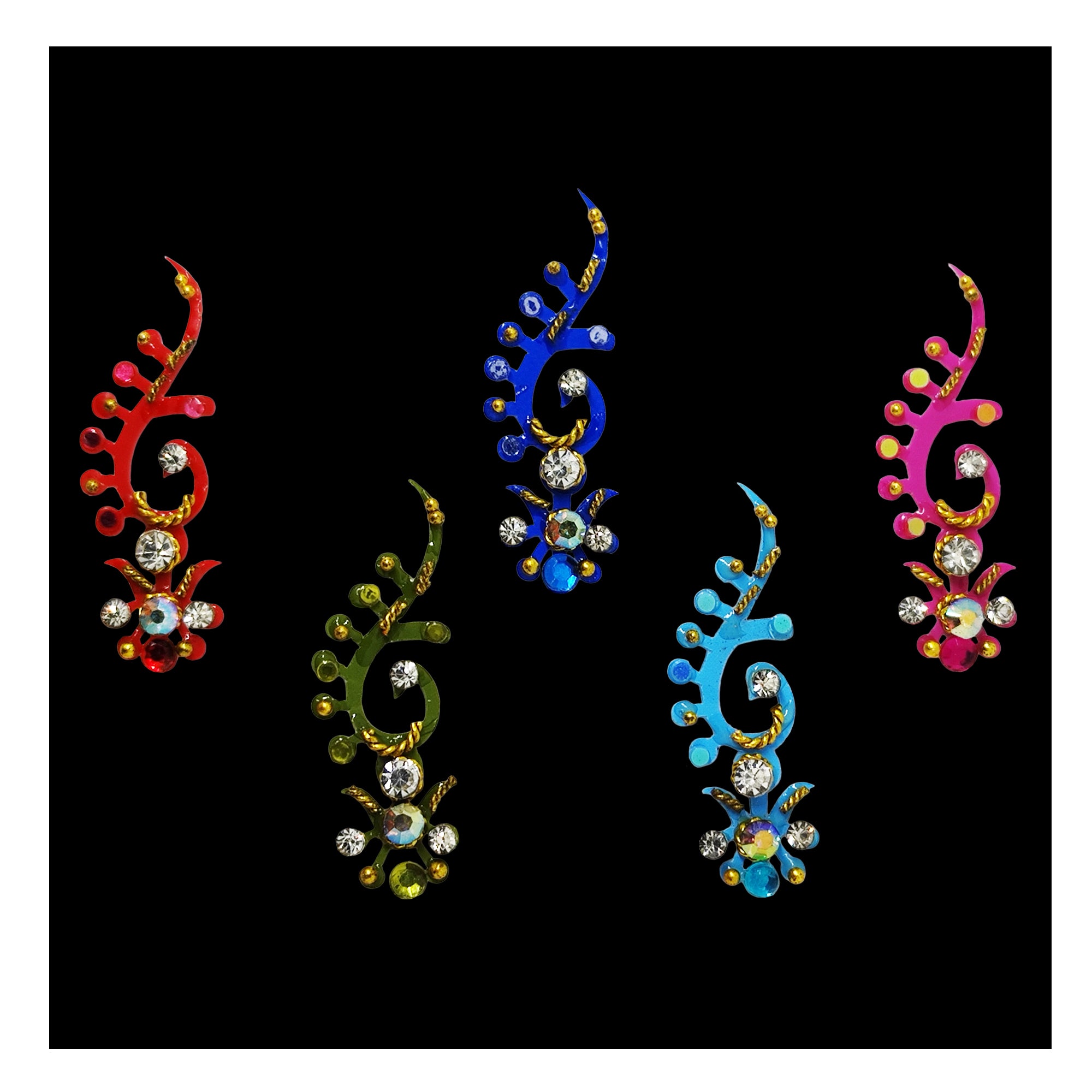 • Multicolor Bindis: Vibrant options for a lively look.