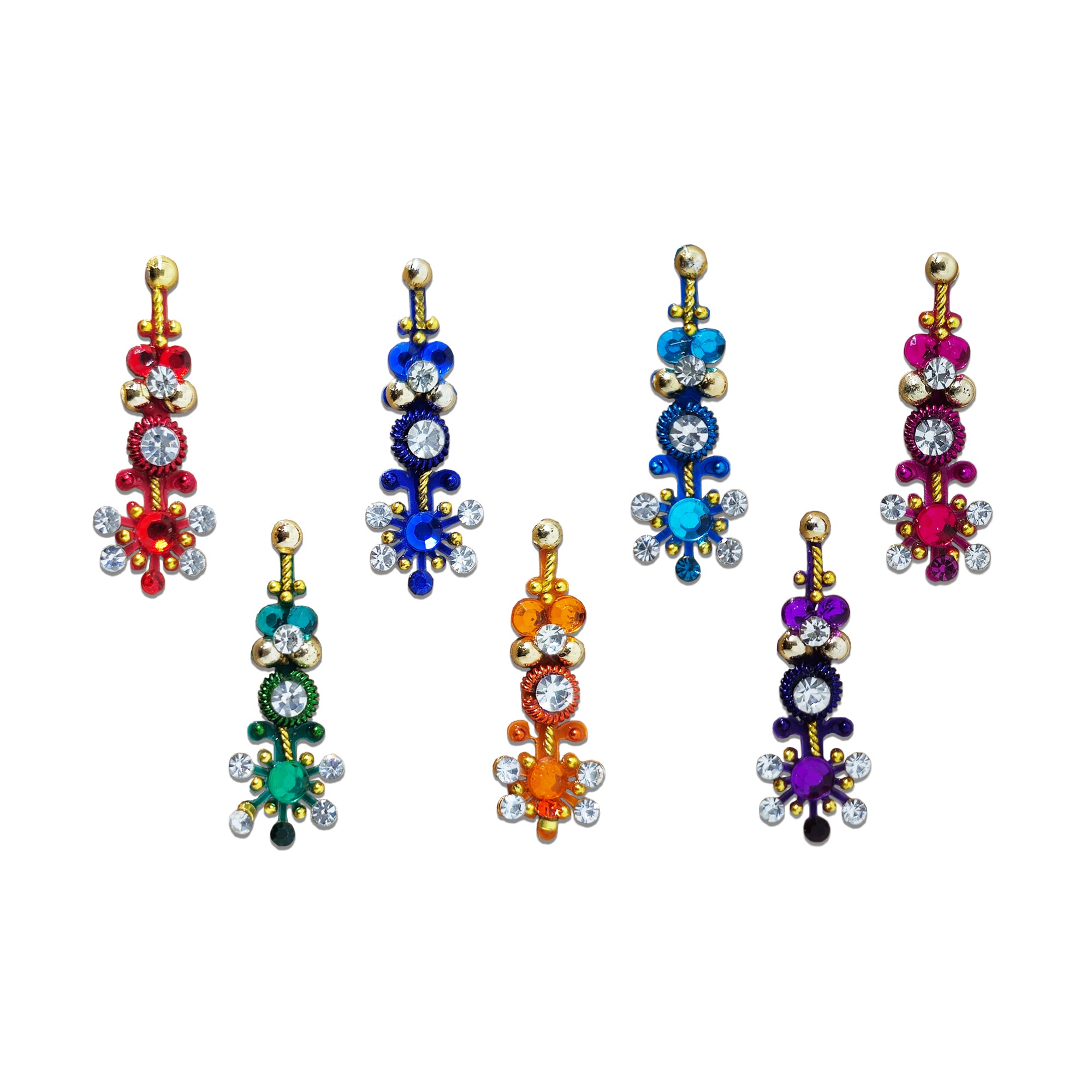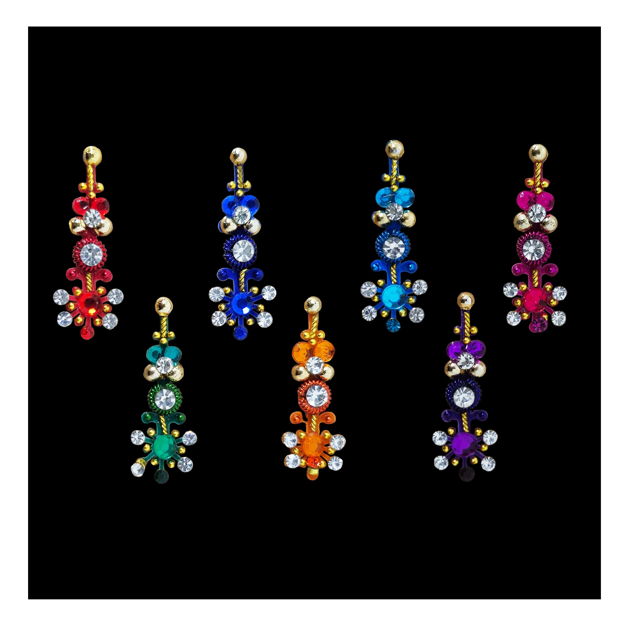 • Multicolor Bindis: Vibrant options for a lively look.