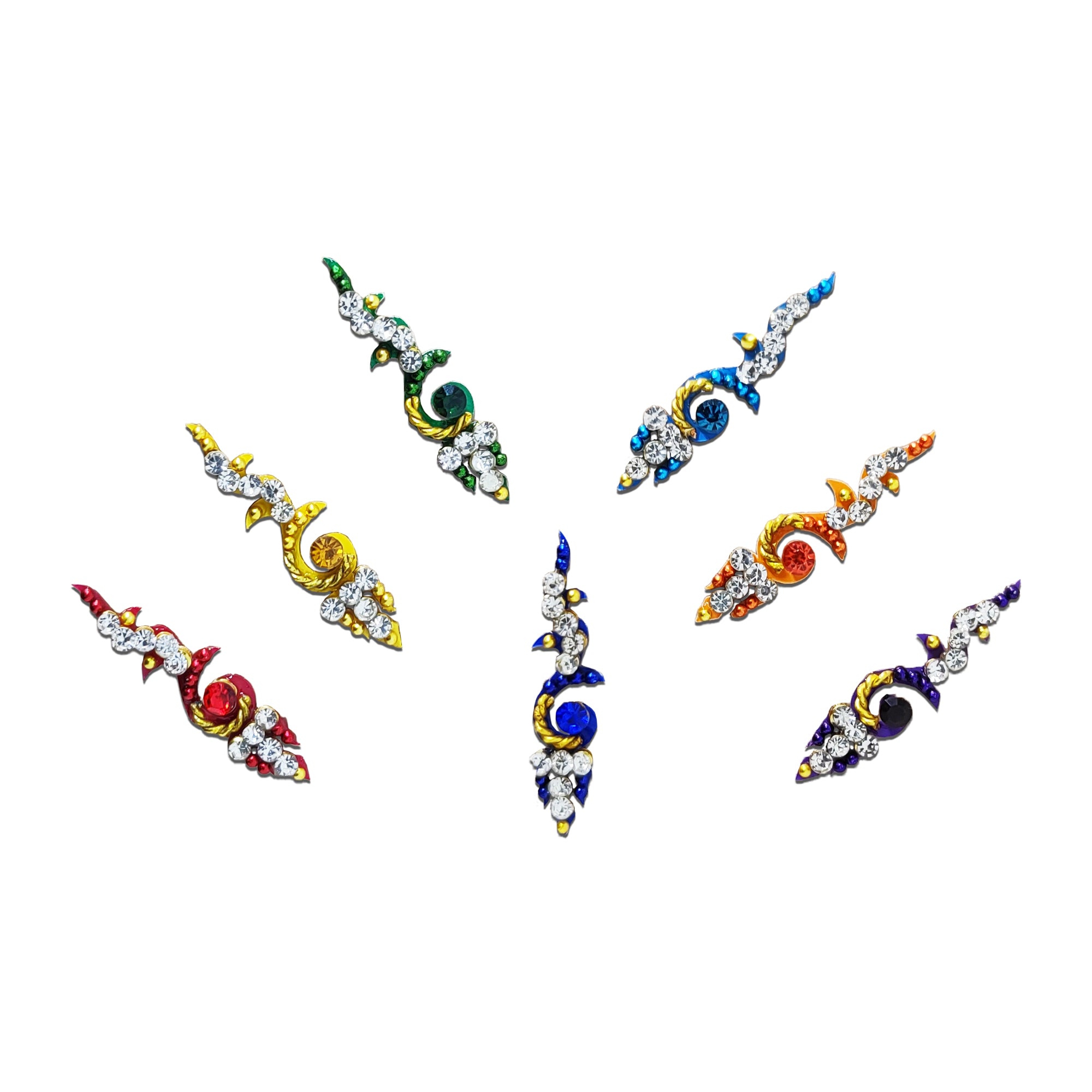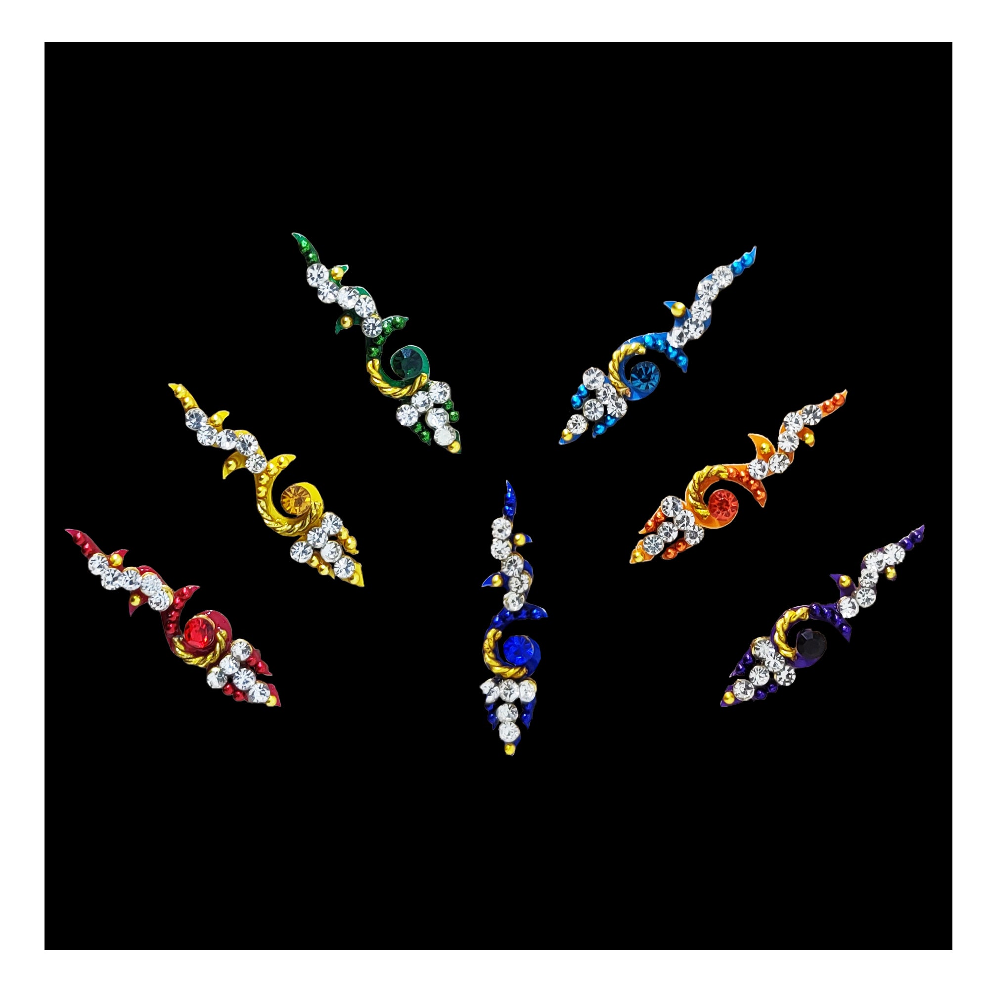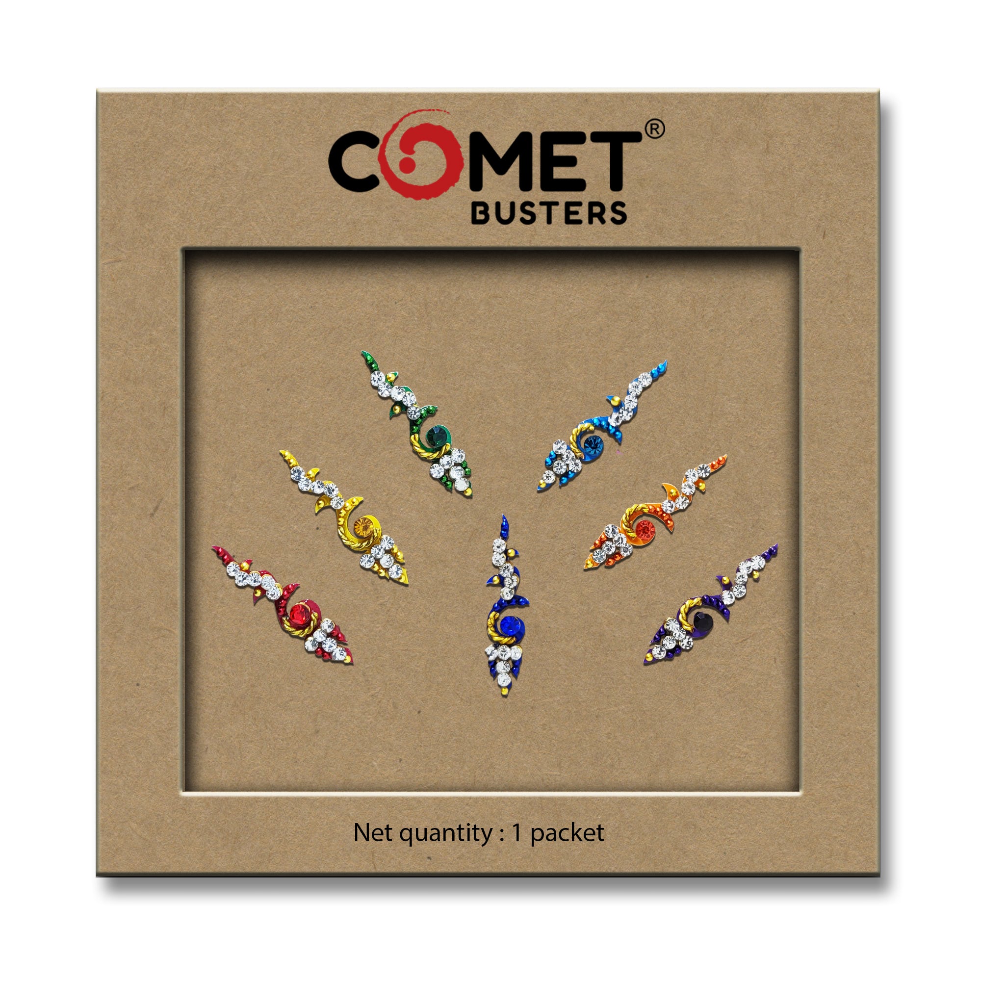 Comet Busters® Multicolor Artistic Abstract Bindis – Diamond, Shiny Beads – Handcrafted, Reusable & Skin-Friendly Bindis for Bridal Wear (20mm) – Forehead Bindi Stickers for Women & Girls – BIN159