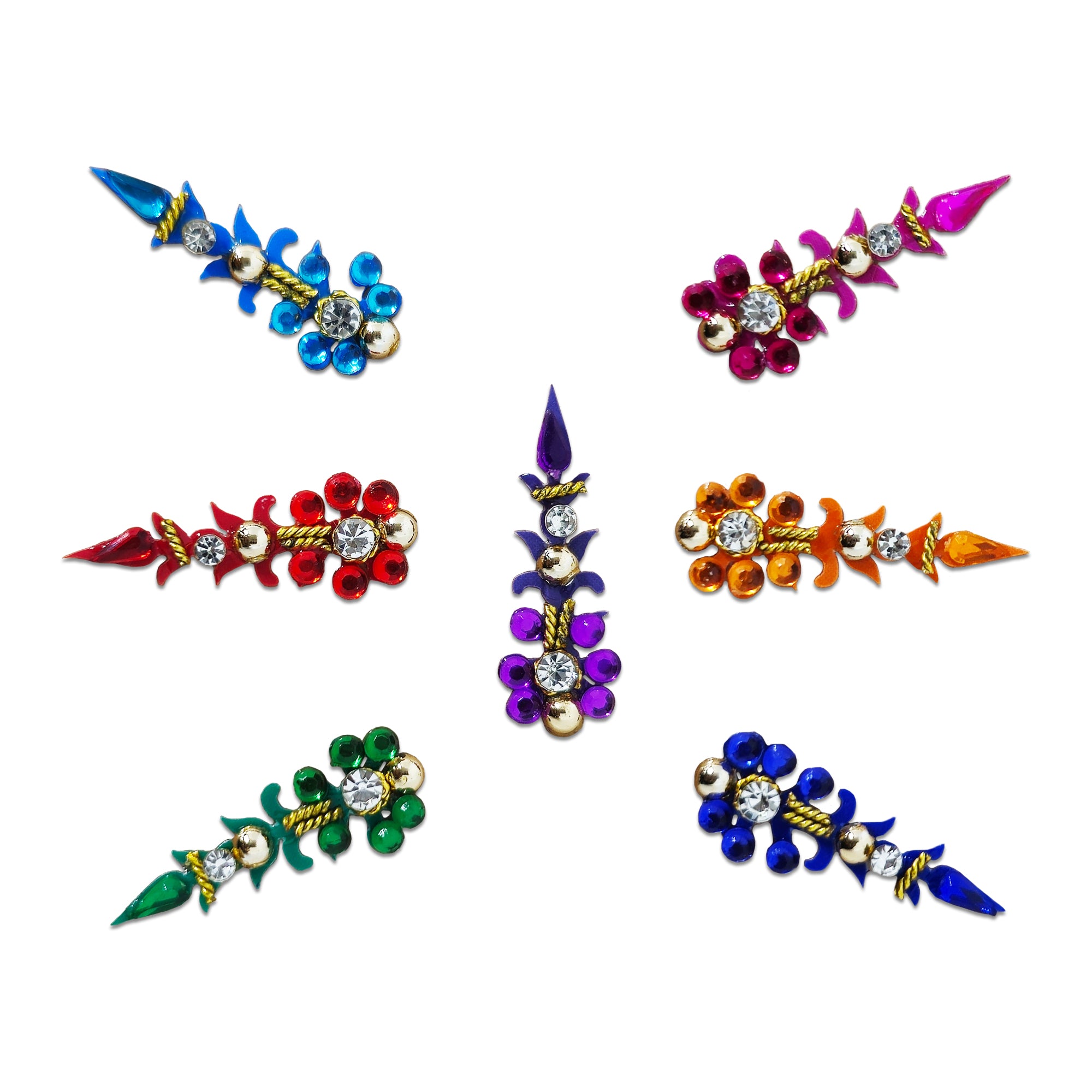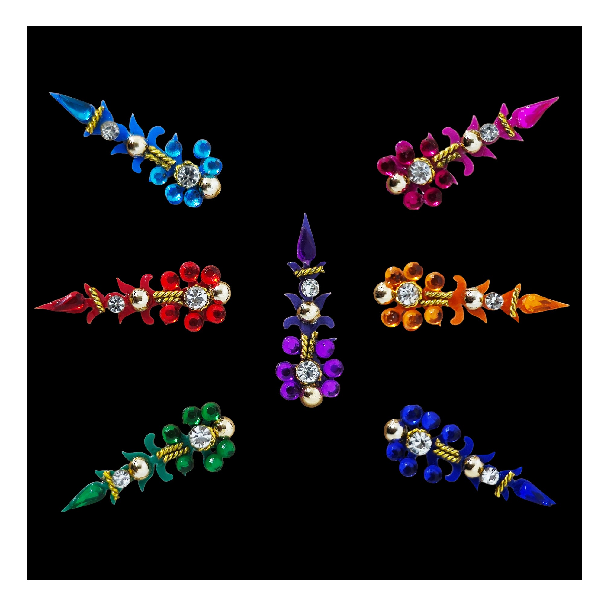 • Multicolor Bindis: Vibrant options for a lively look.