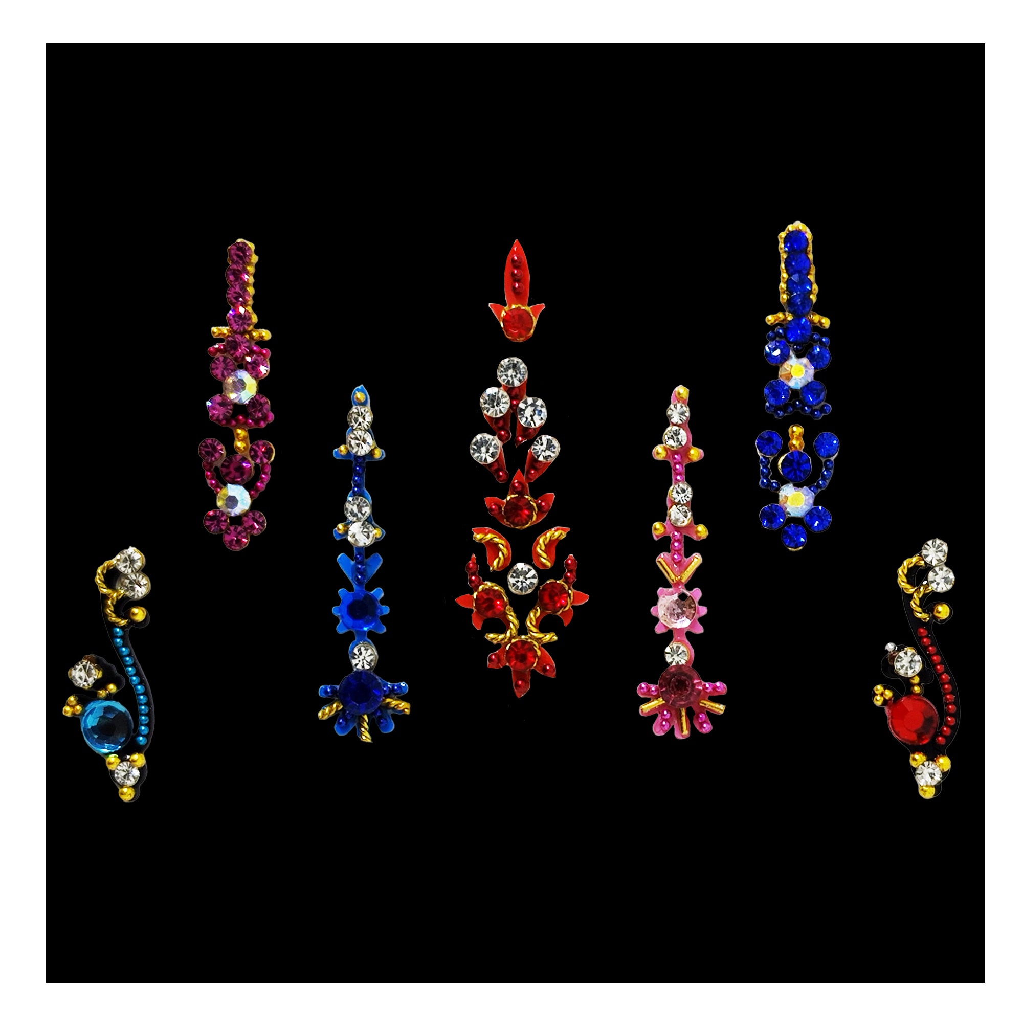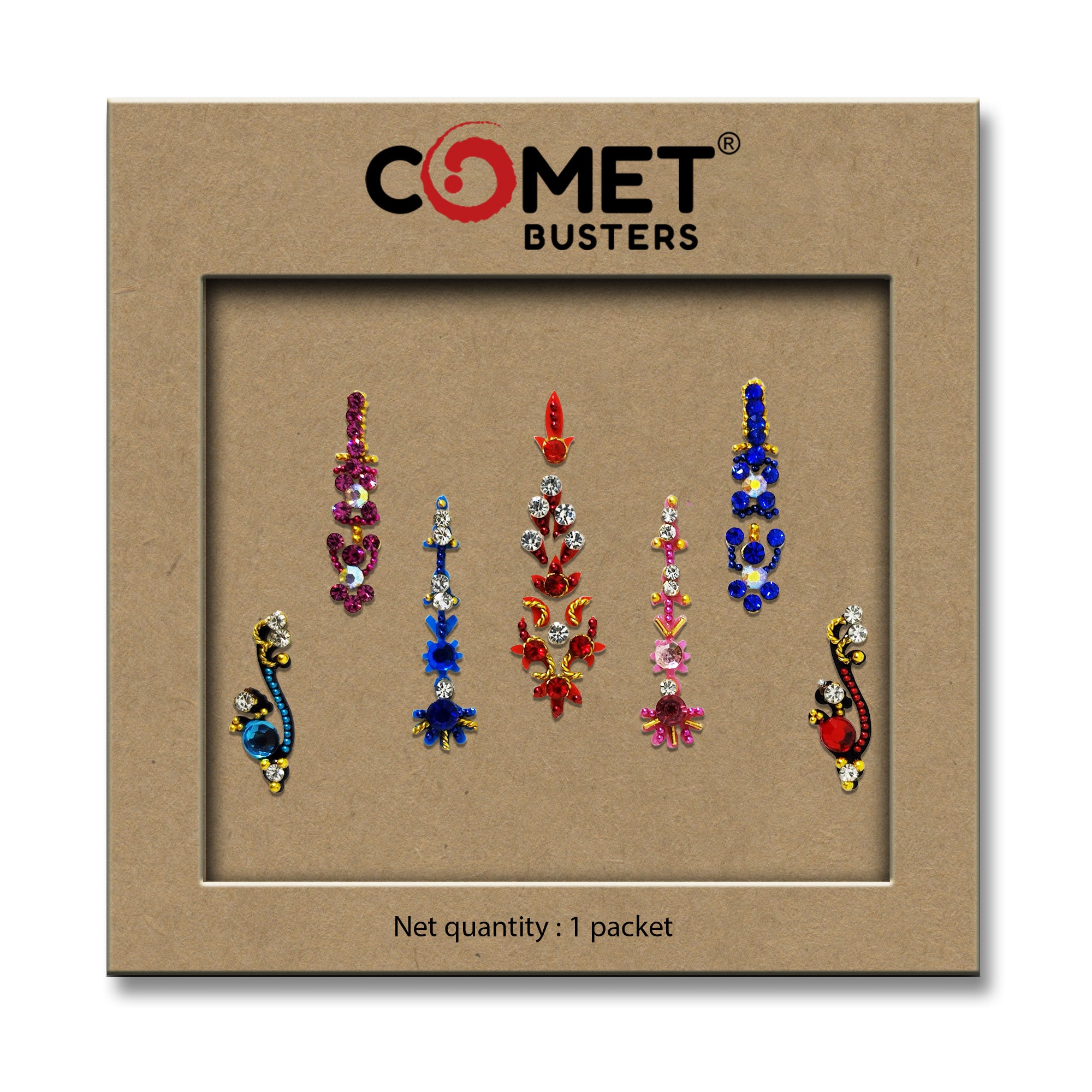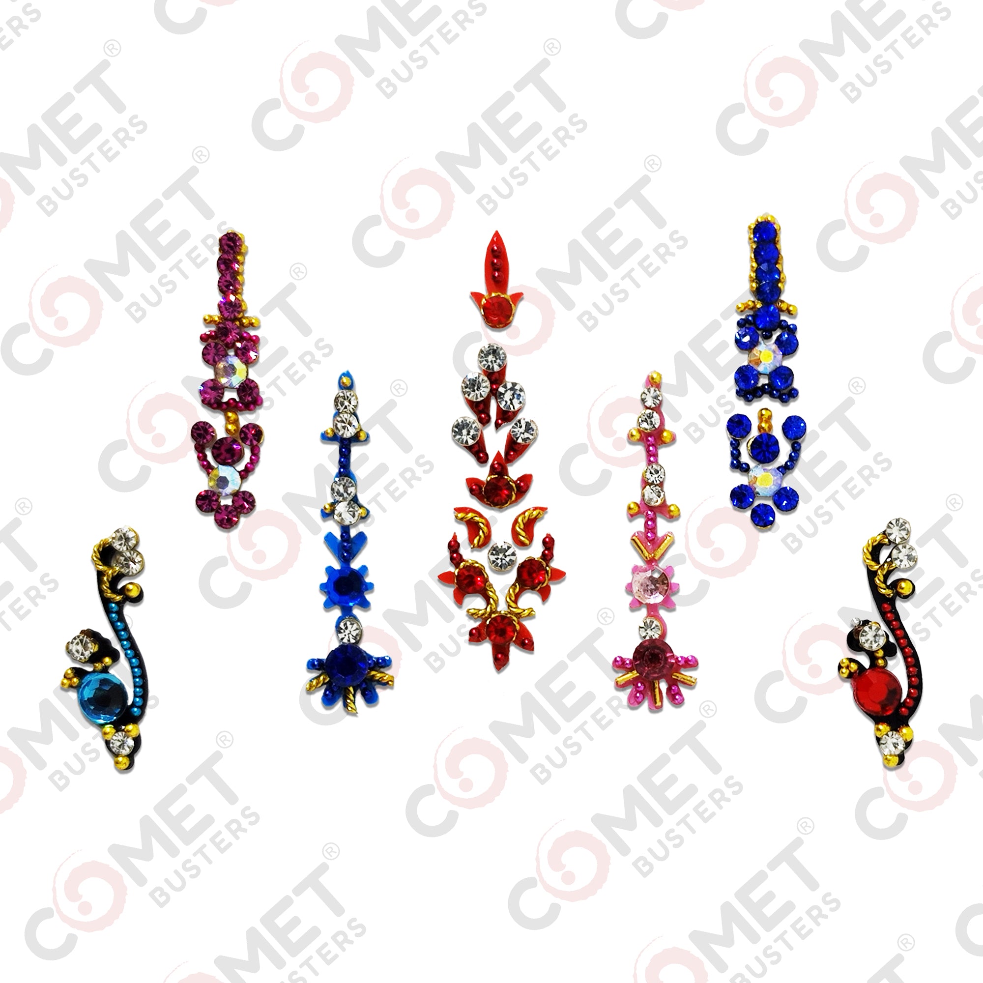 Comet Busters® Multicolor Artistic Abstract Bindis – Diamond, Shiny Beads – Handcrafted, Reusable & Skin-Friendly Bindis for Bridal Wear (20, 15, 25mm) – Forehead Bindi Stickers for Women & Girls – BIN193