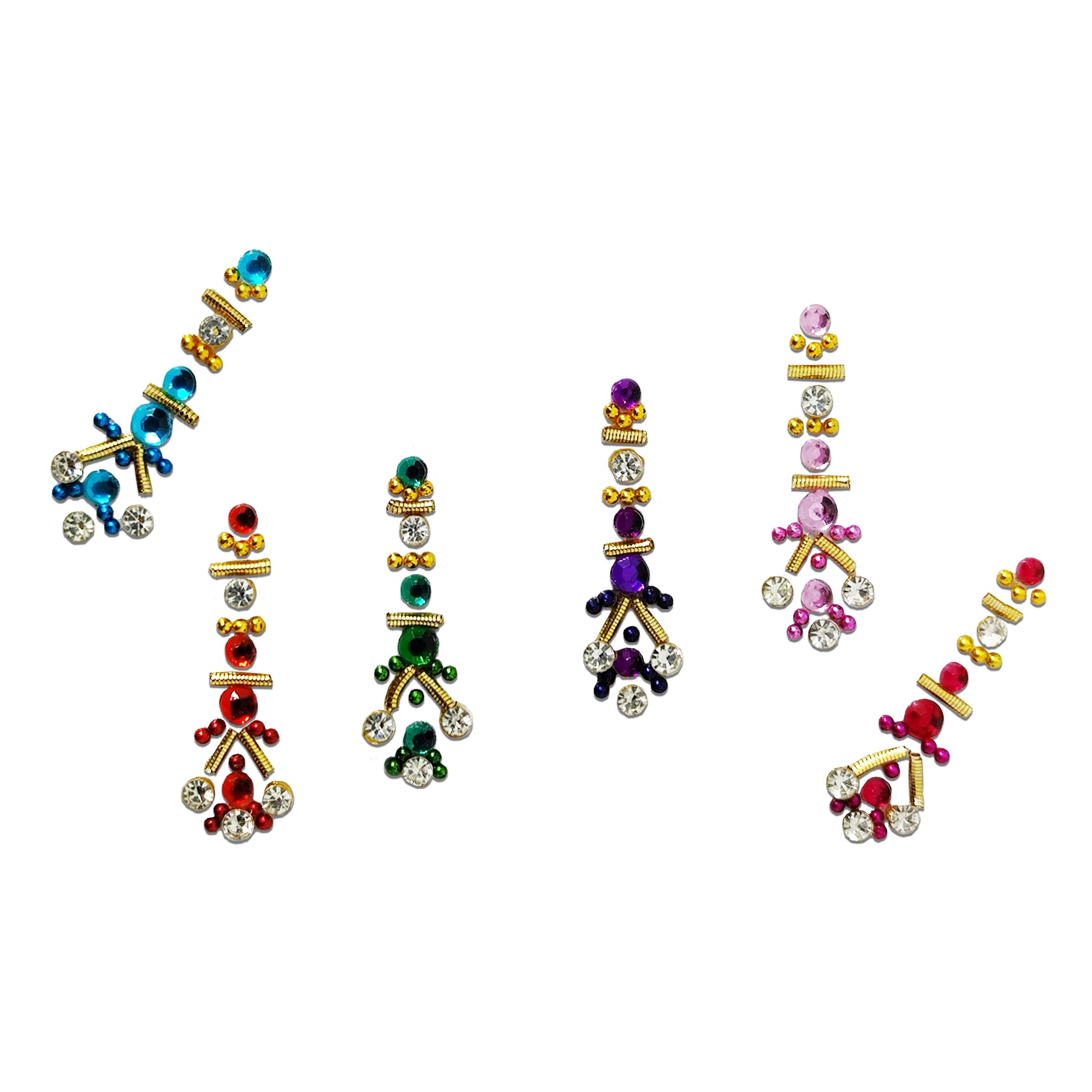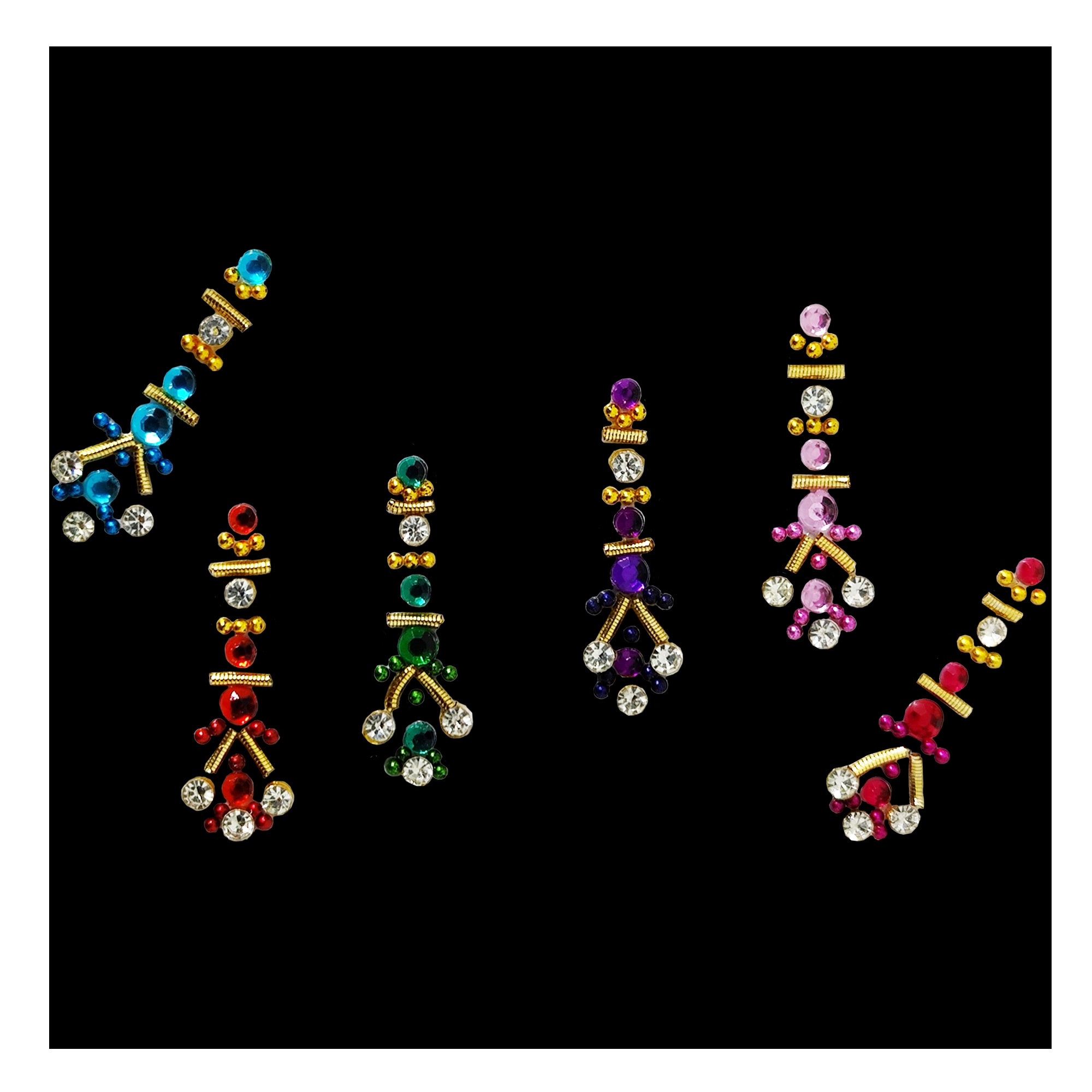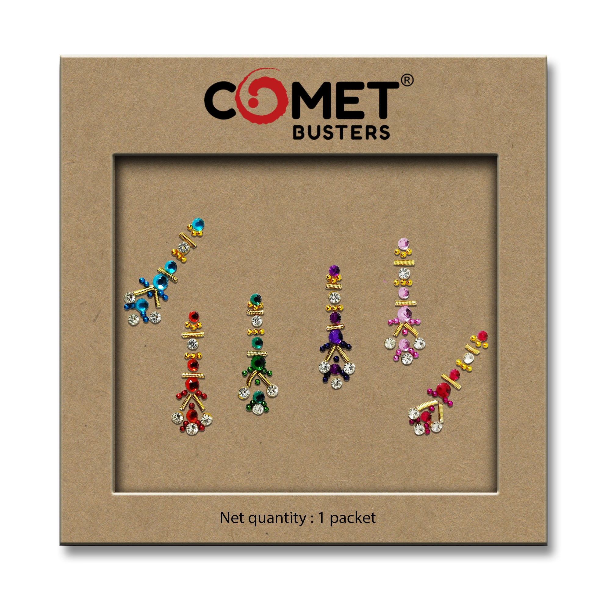 Comet Busters® Multicolor Artistic Abstract Bindis – Diamond, Shiny Beads – Handcrafted, Reusable & Skin-Friendly Bindis for Bridal Wear (15mm) – Forehead Bindi Stickers for Women & Girls – BIN253