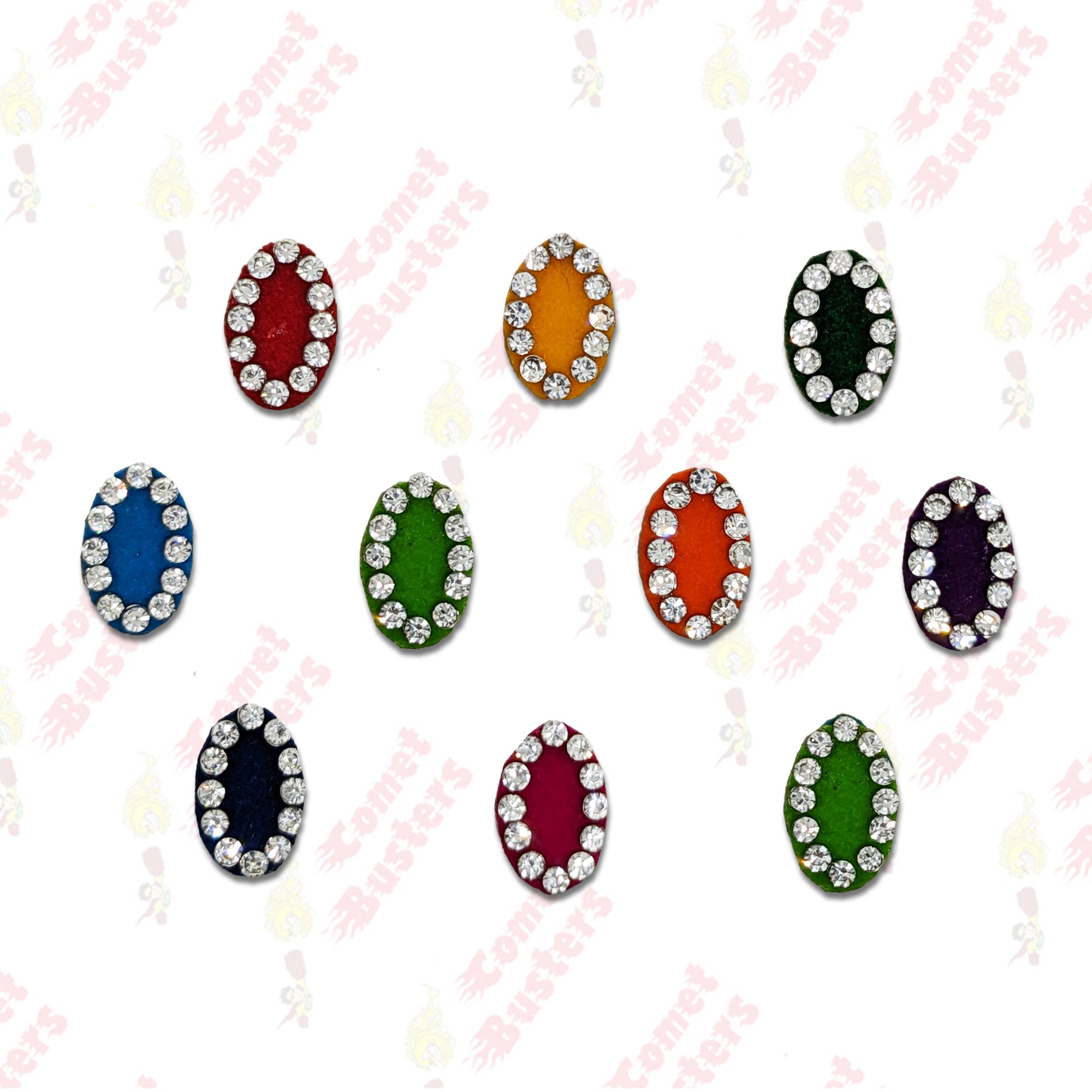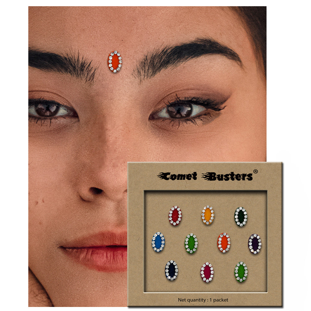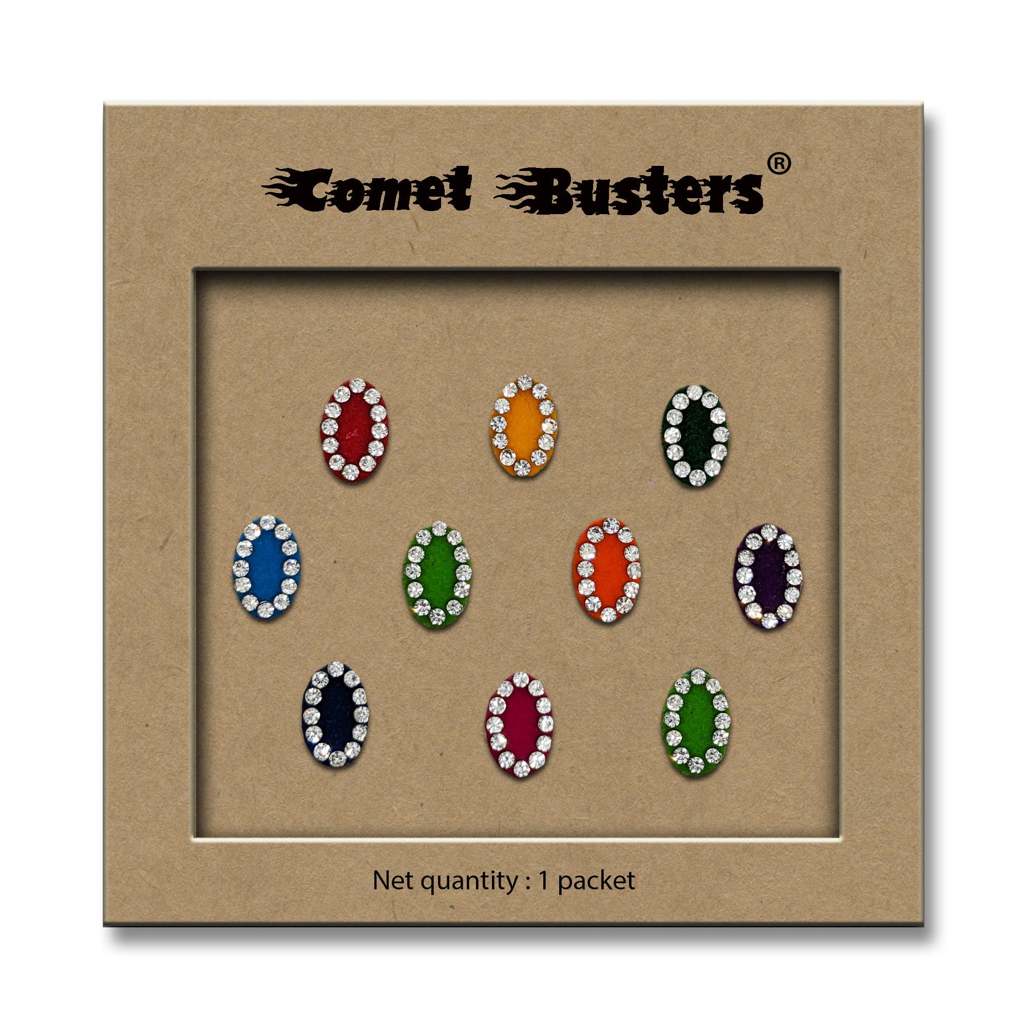 Comet Busters® Multicolor Oval – Velvet, Diamond – Handcrafted, Reusable & Skin-Friendly Bindis for Party Wear (10mm) – Forehead Bindi Stickers for Women & Girls – BIN1992