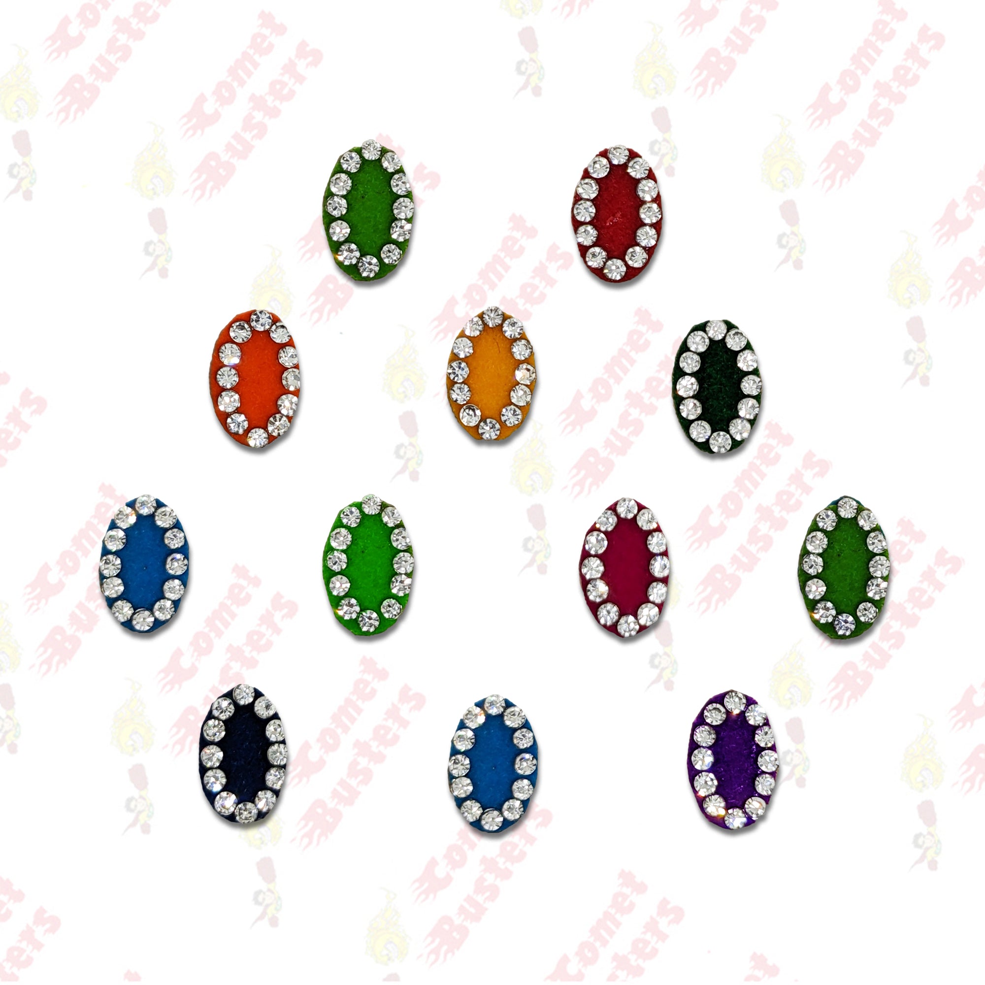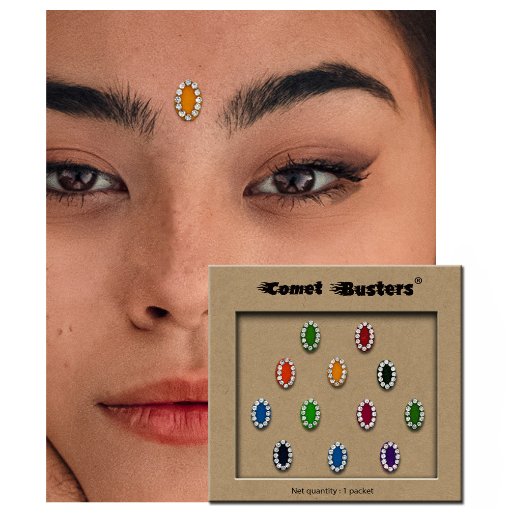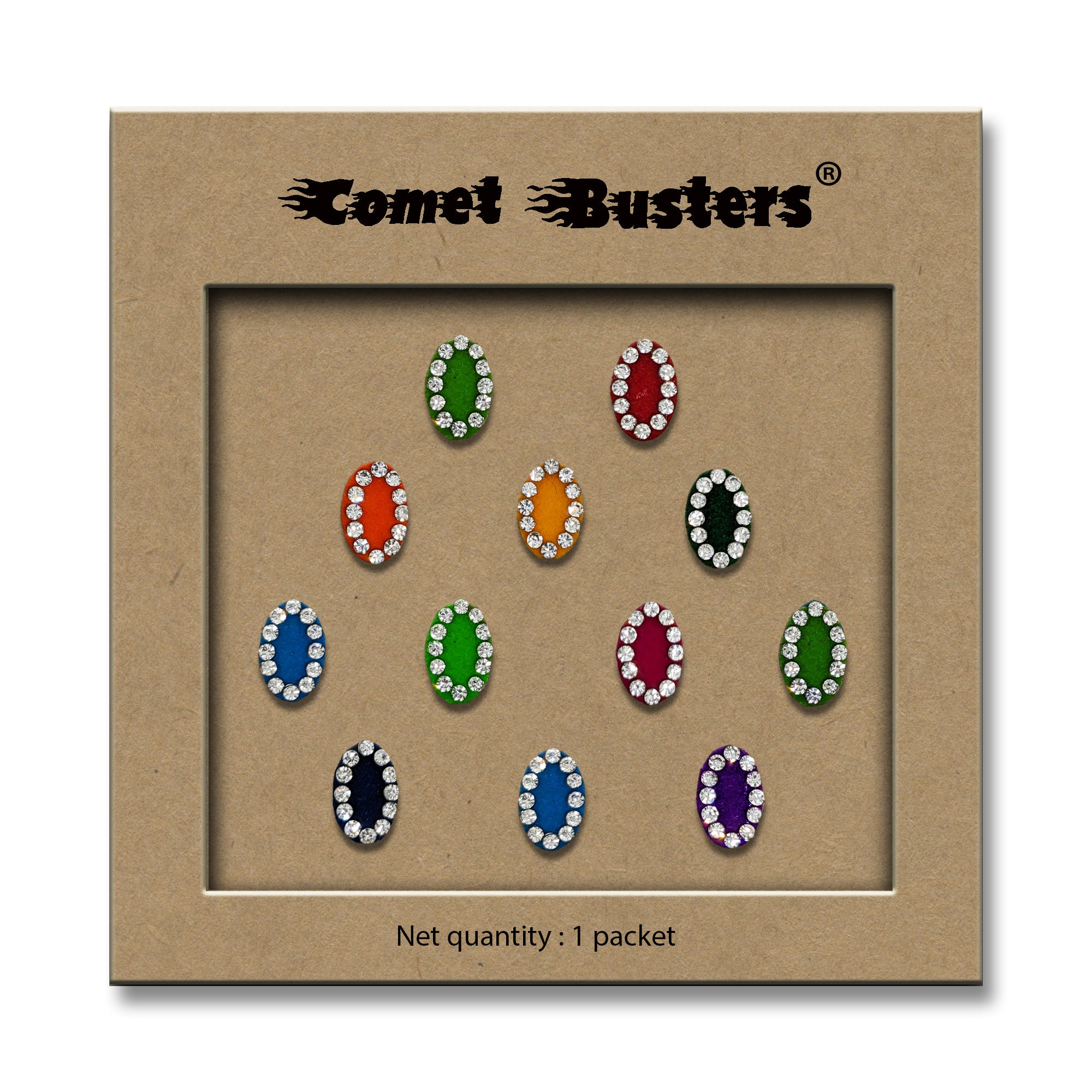 Comet Busters® Multicolor Oval – Velvet, Diamond – Handcrafted, Reusable & Skin-Friendly Bindis for Party Wear (9mm) – Forehead Bindi Stickers for Women & Girls – BIN1989