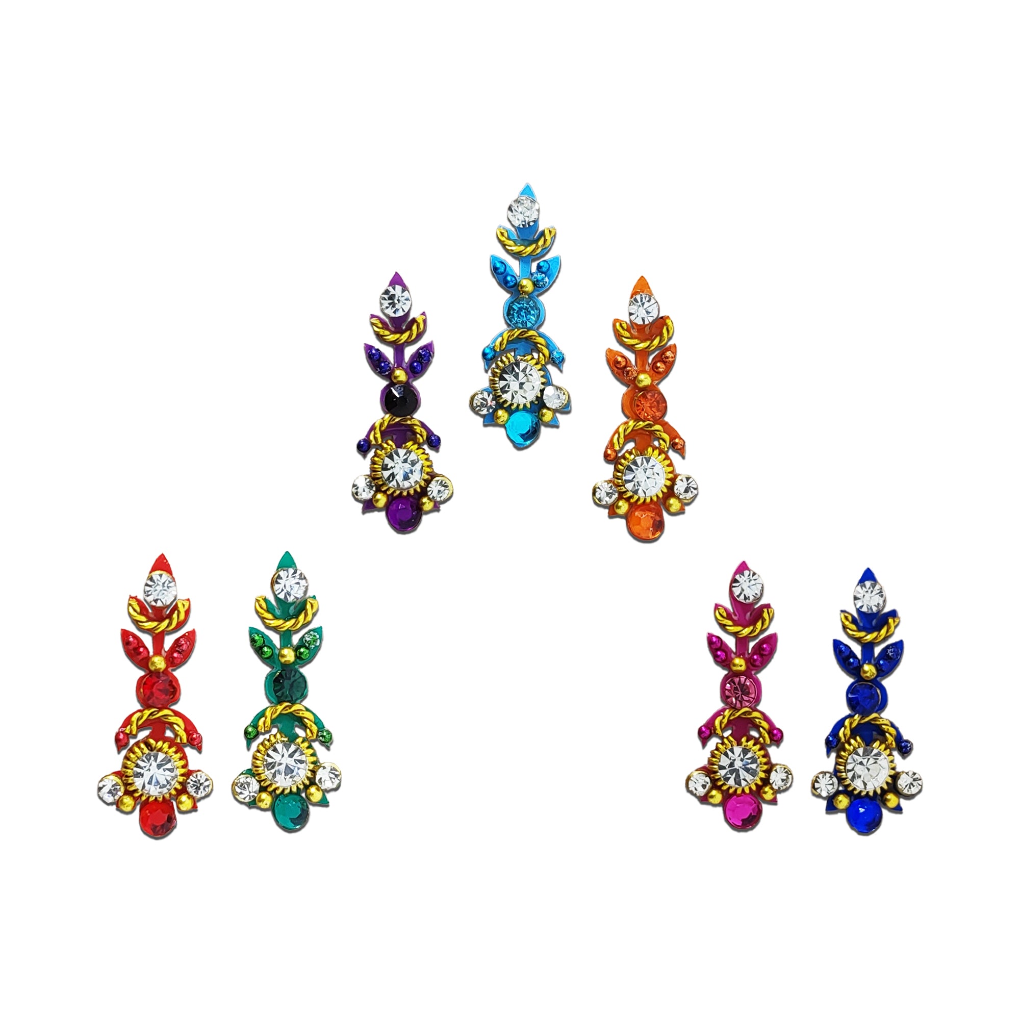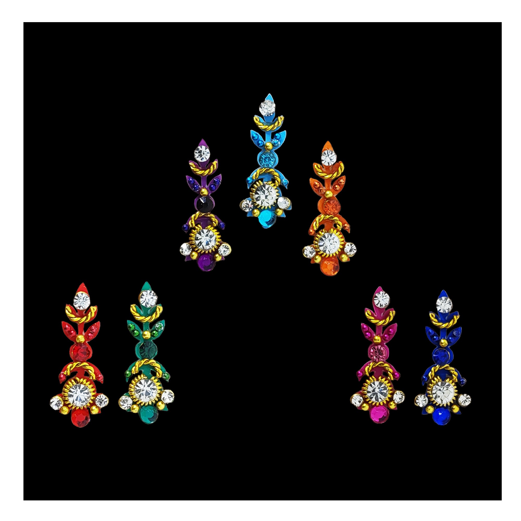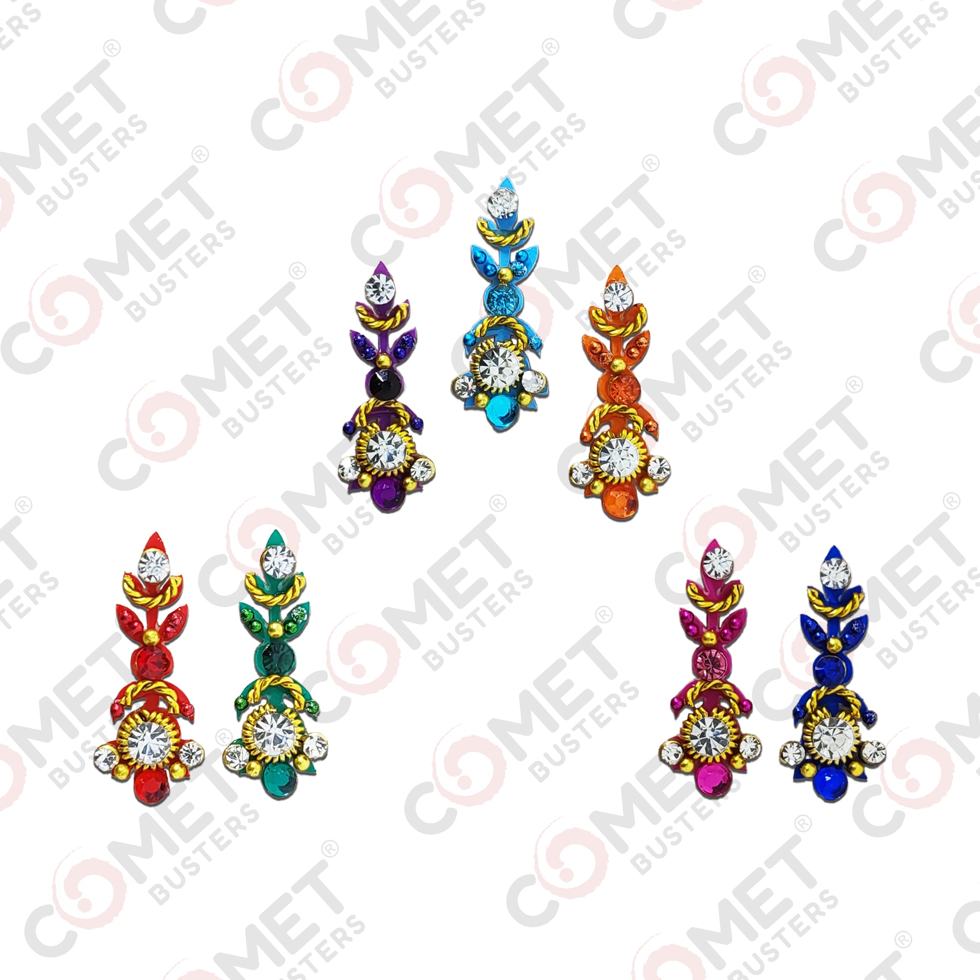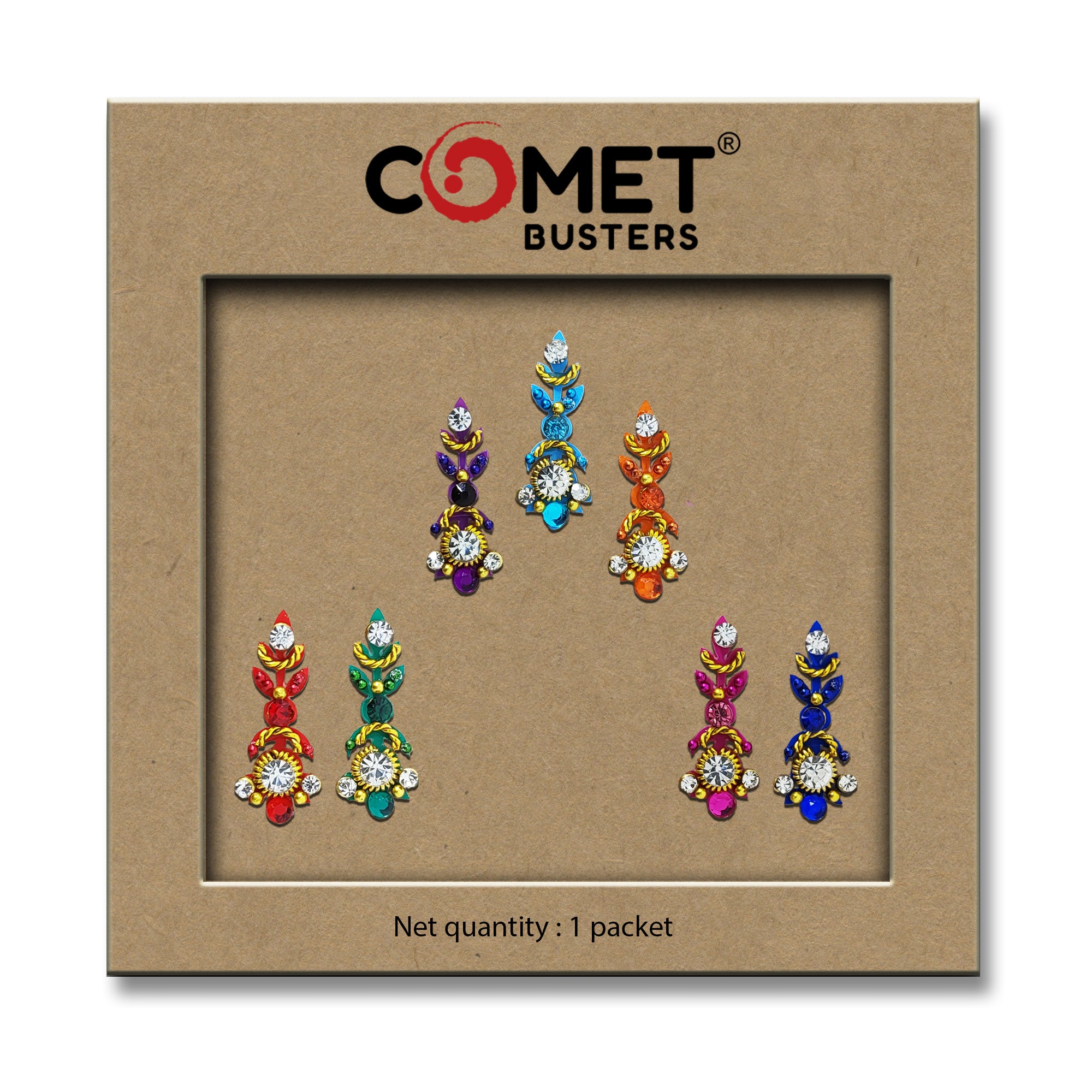 Comet Busters® Multicolor Artistic Abstract Bindis – Diamond, Shiny Beads – Handcrafted, Reusable & Skin-Friendly Bindis for Bridal Wear (15mm) – Forehead Bindi Stickers for Women & Girls – BIN045