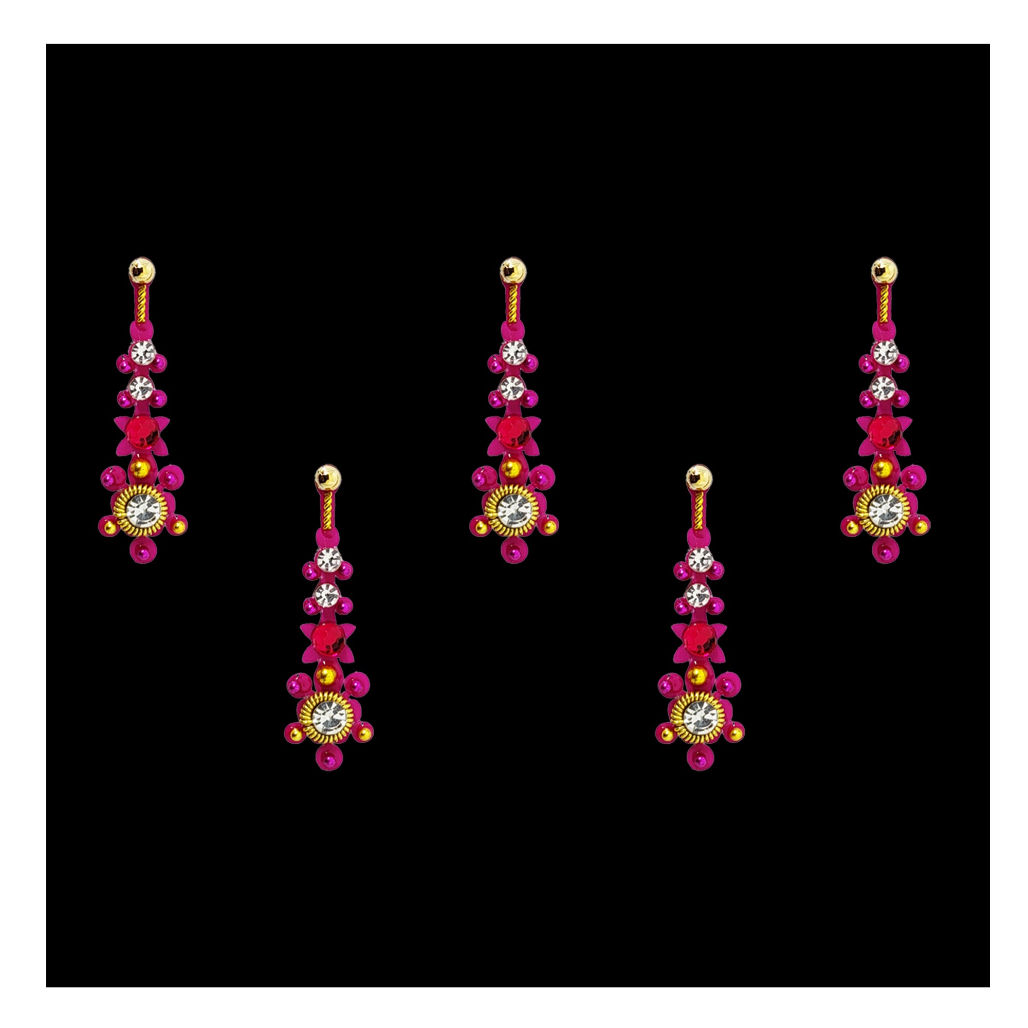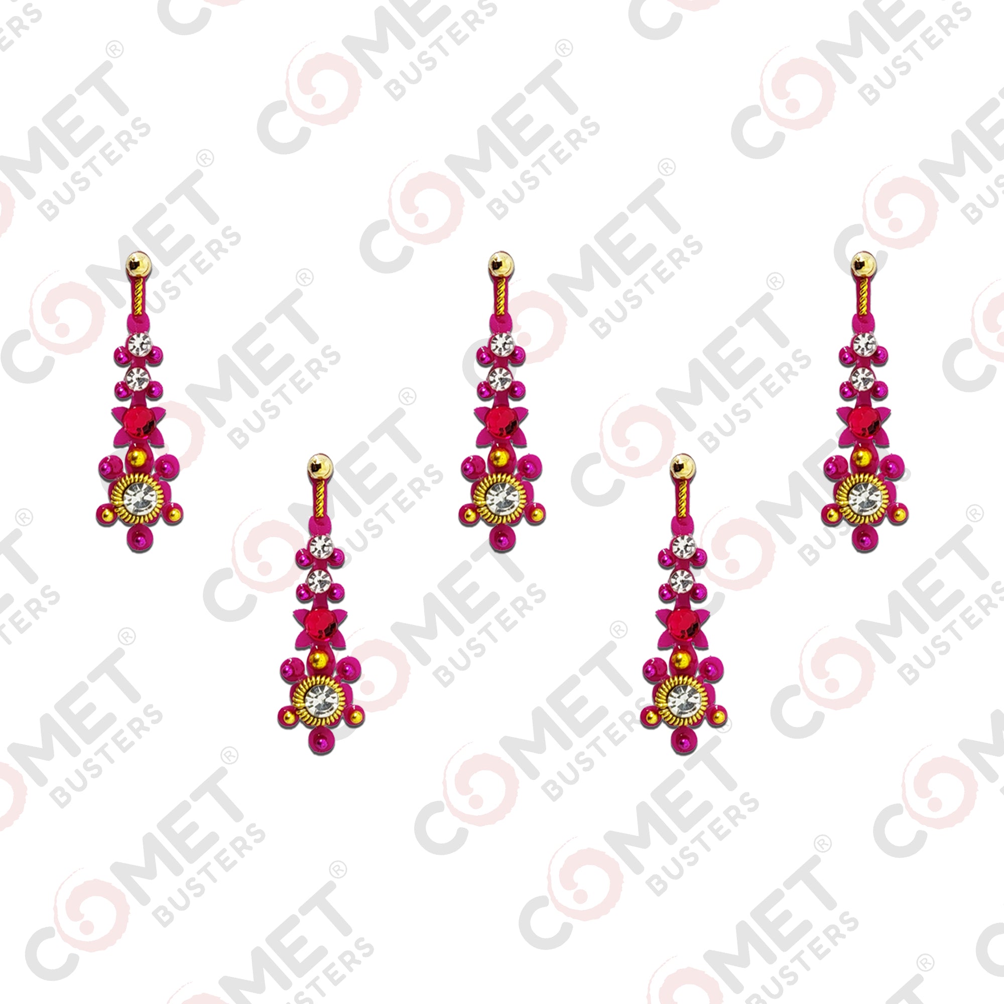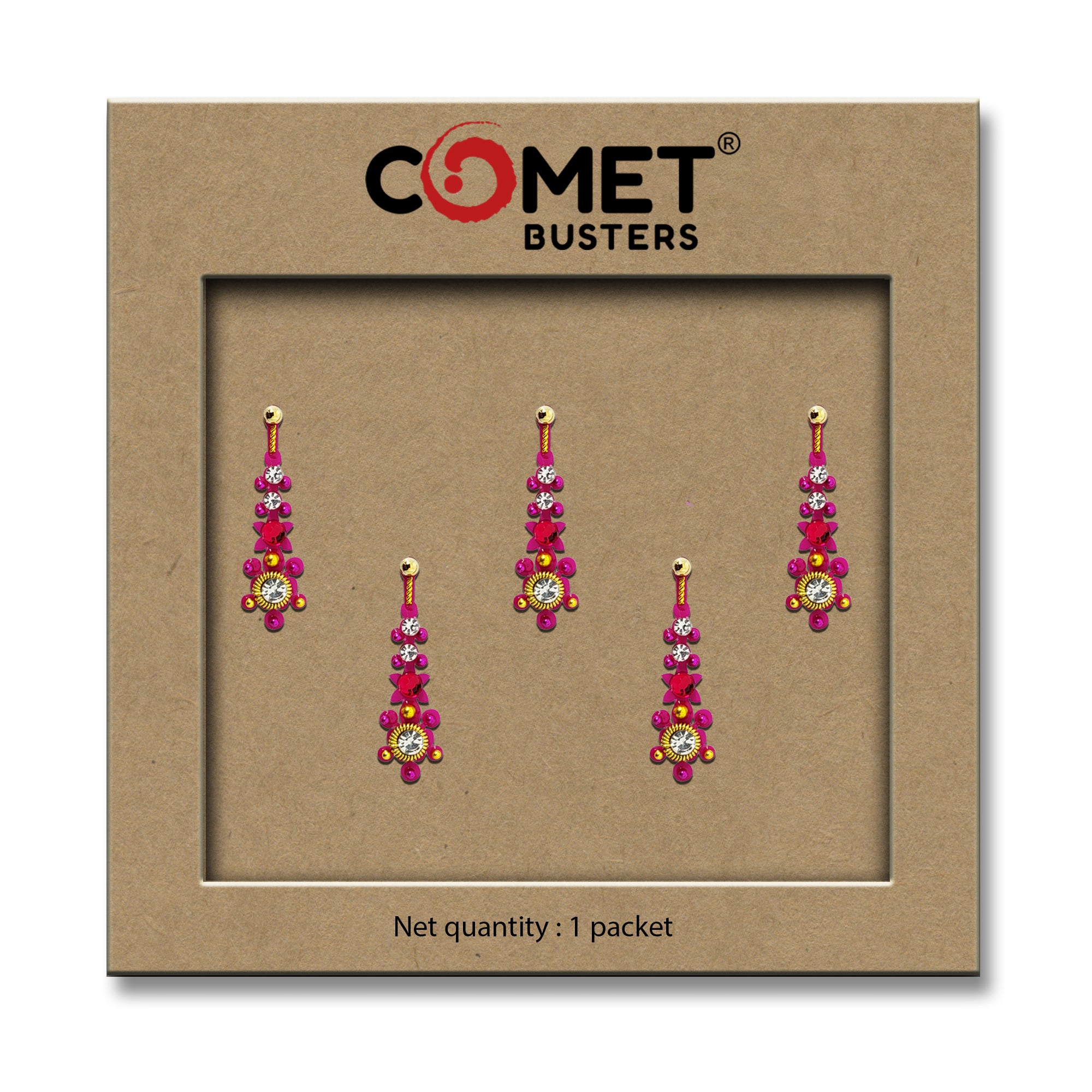 Comet Busters® Pink Artistic Abstract Bindis – Diamond, Shiny Beads – Handcrafted, Reusable & Skin-Friendly Bindis for Bridal Wear (25mm) – Forehead Bindi Stickers for Women & Girls – BIN037