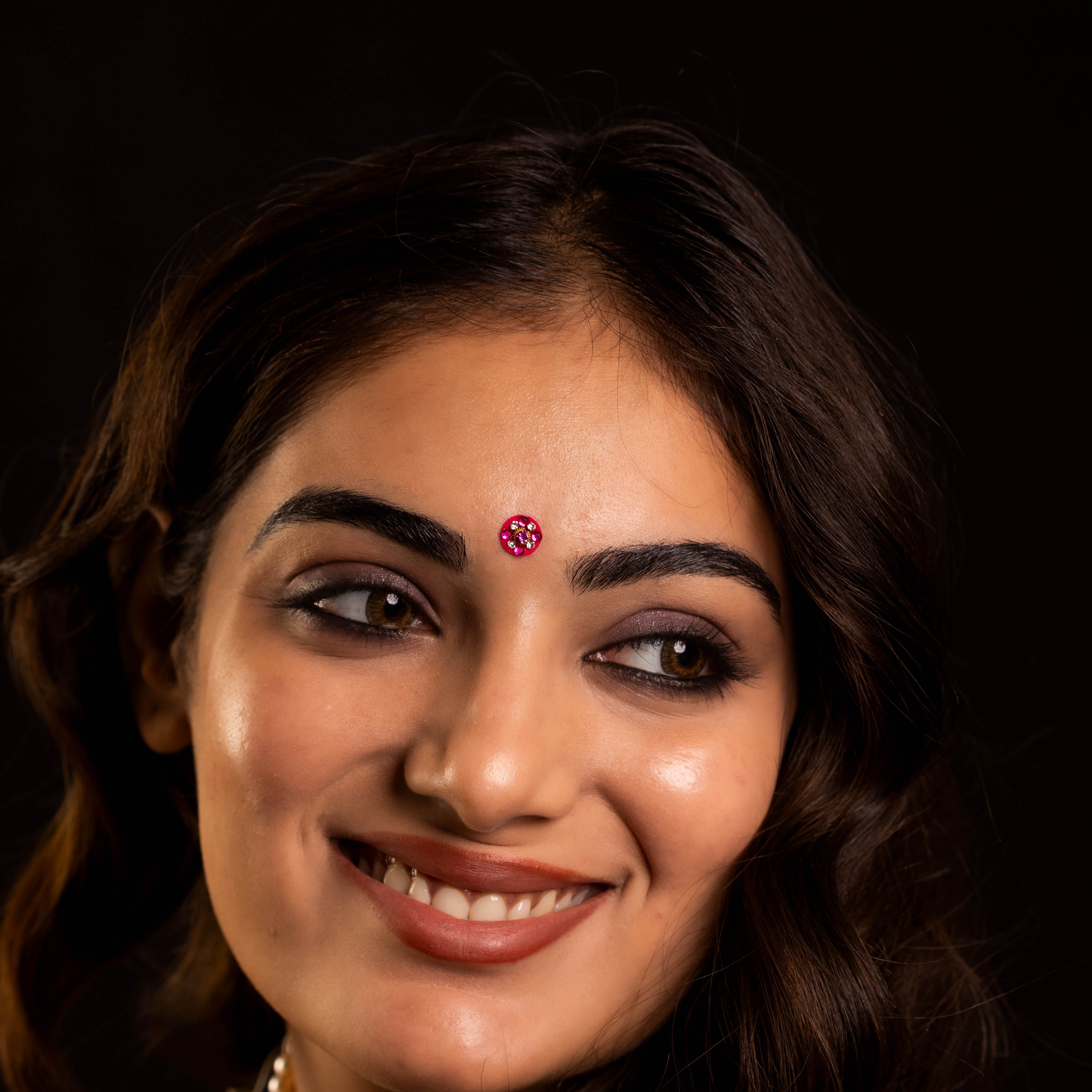 • To apply, gently remove the bindi from its backing and place it between the eyebrows.