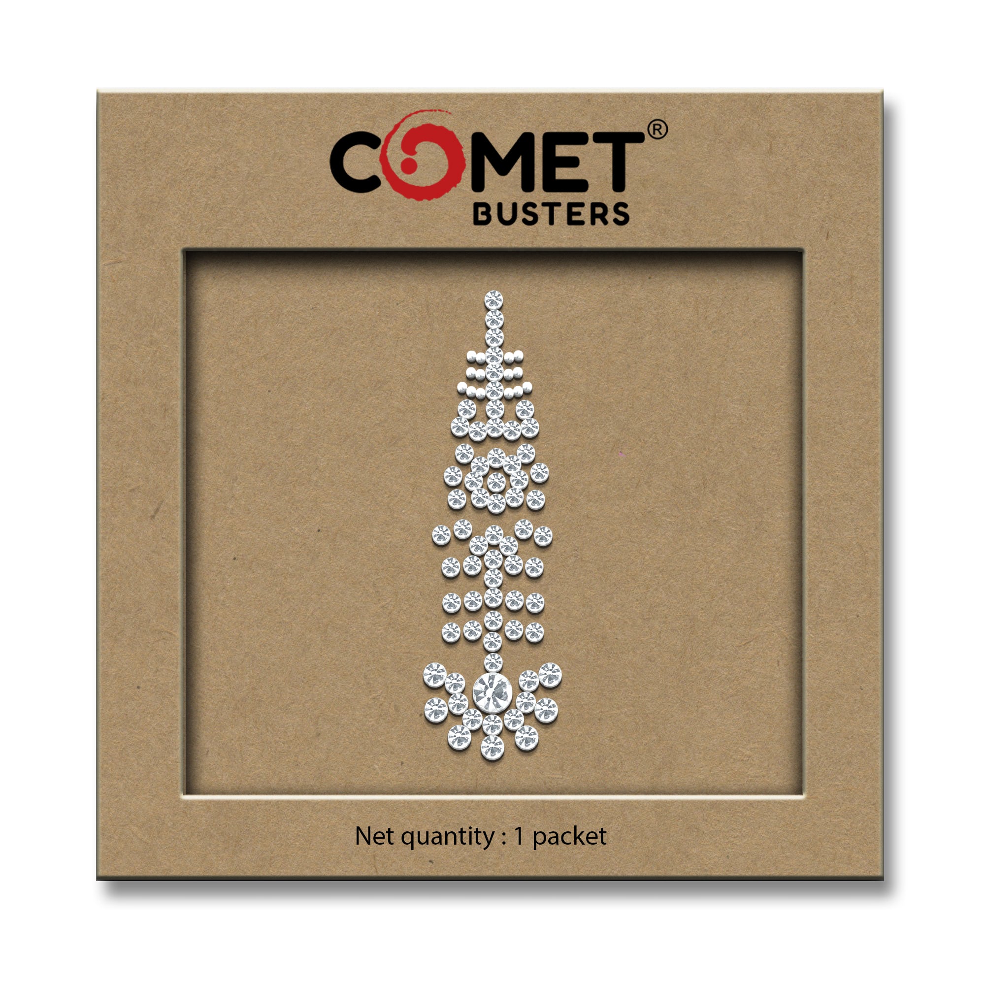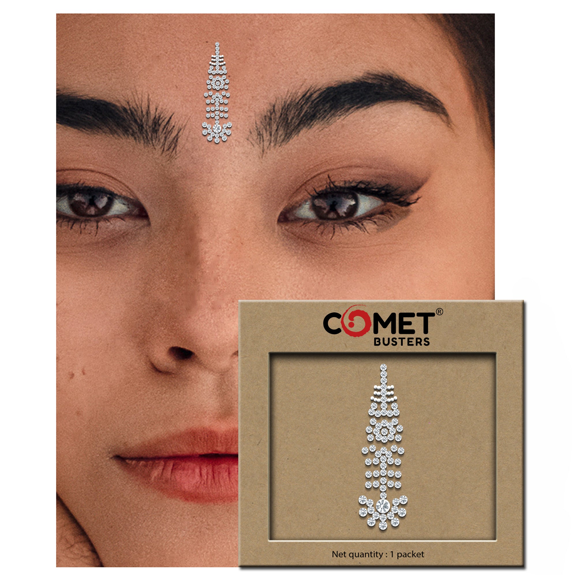 Comet Busters® Silver Premium – Diamond – Handcrafted, Reusable & Skin-Friendly Bindis for Bridal Wear (35mm) – Forehead Bindi Stickers for Women & Girls – BIN345