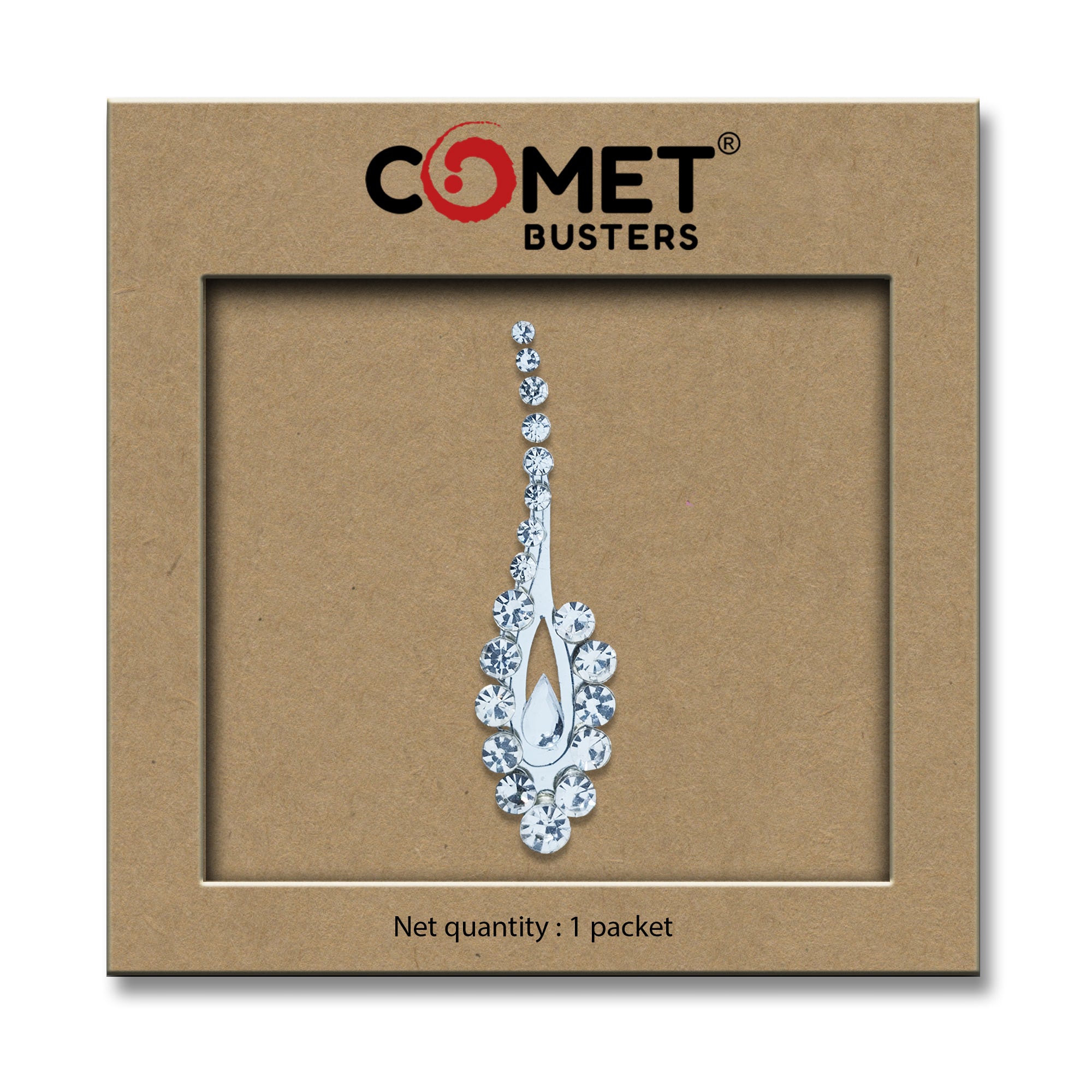 Comet Busters® Silver Premium – Crystal, Diamond – Handcrafted, Reusable & Skin-Friendly Bindis for Bridal Wear (30mm) – Forehead Bindi Stickers for Women & Girls – BIN343