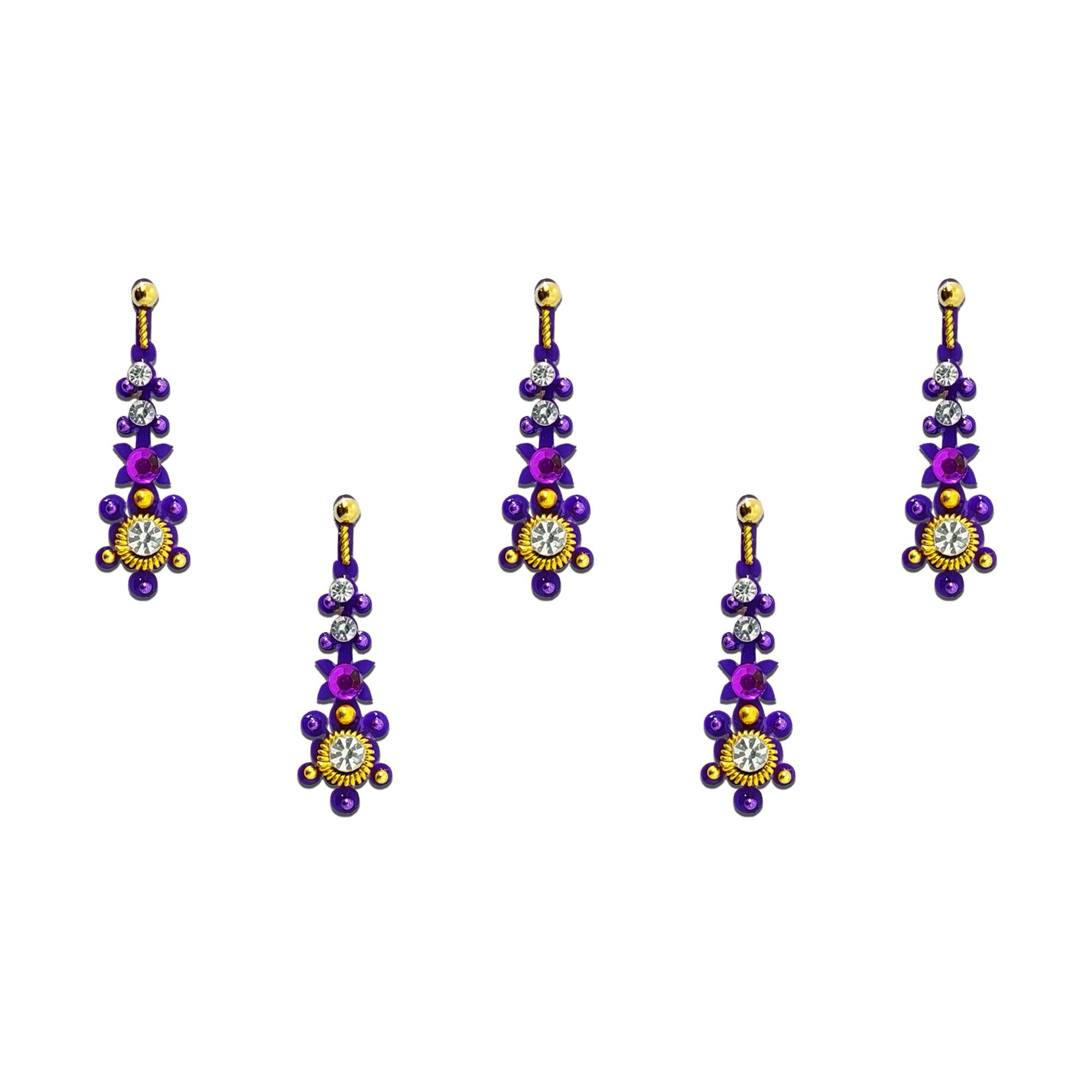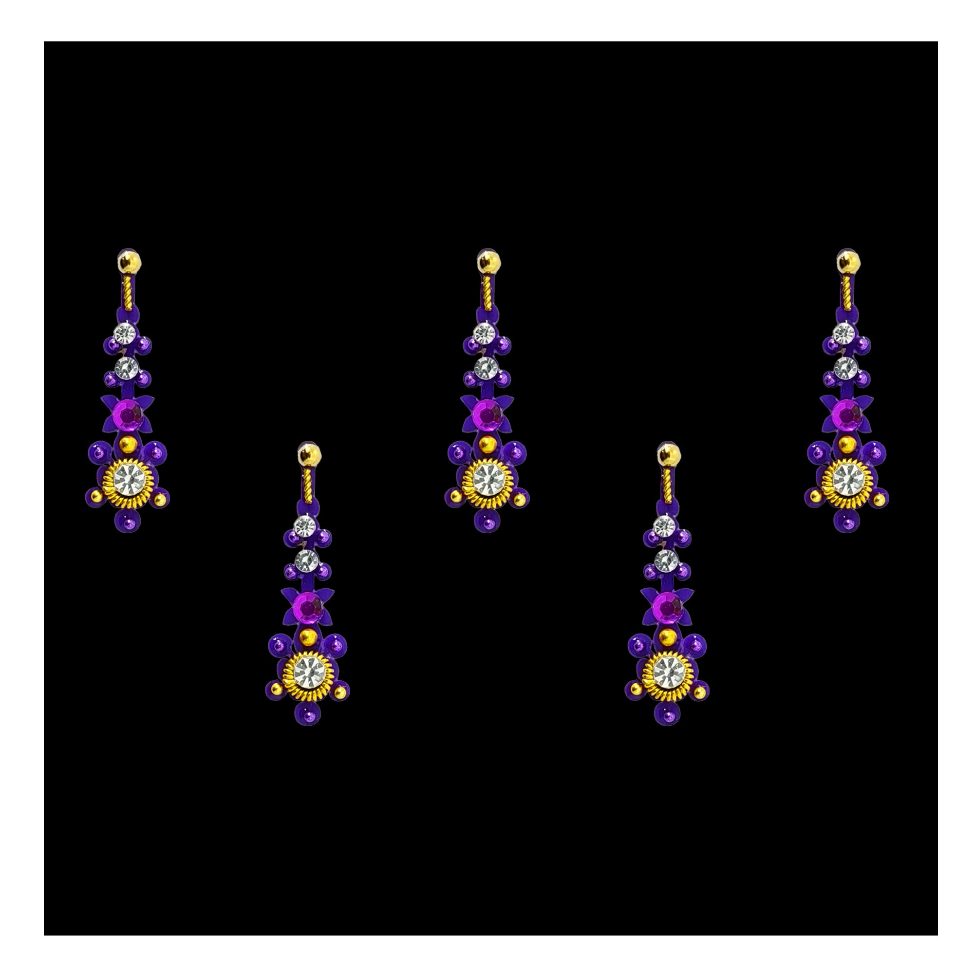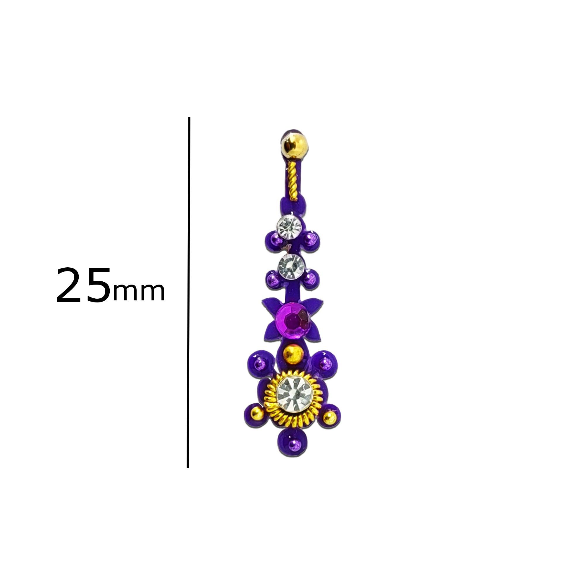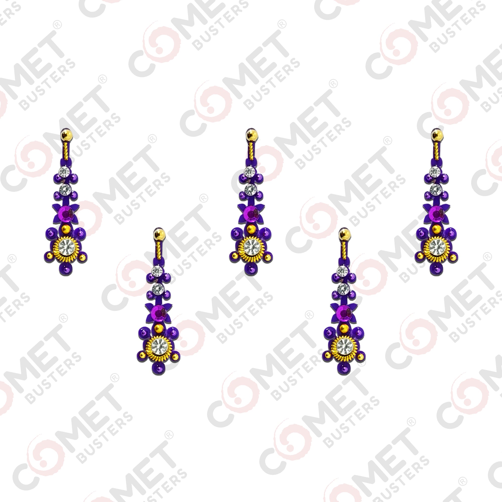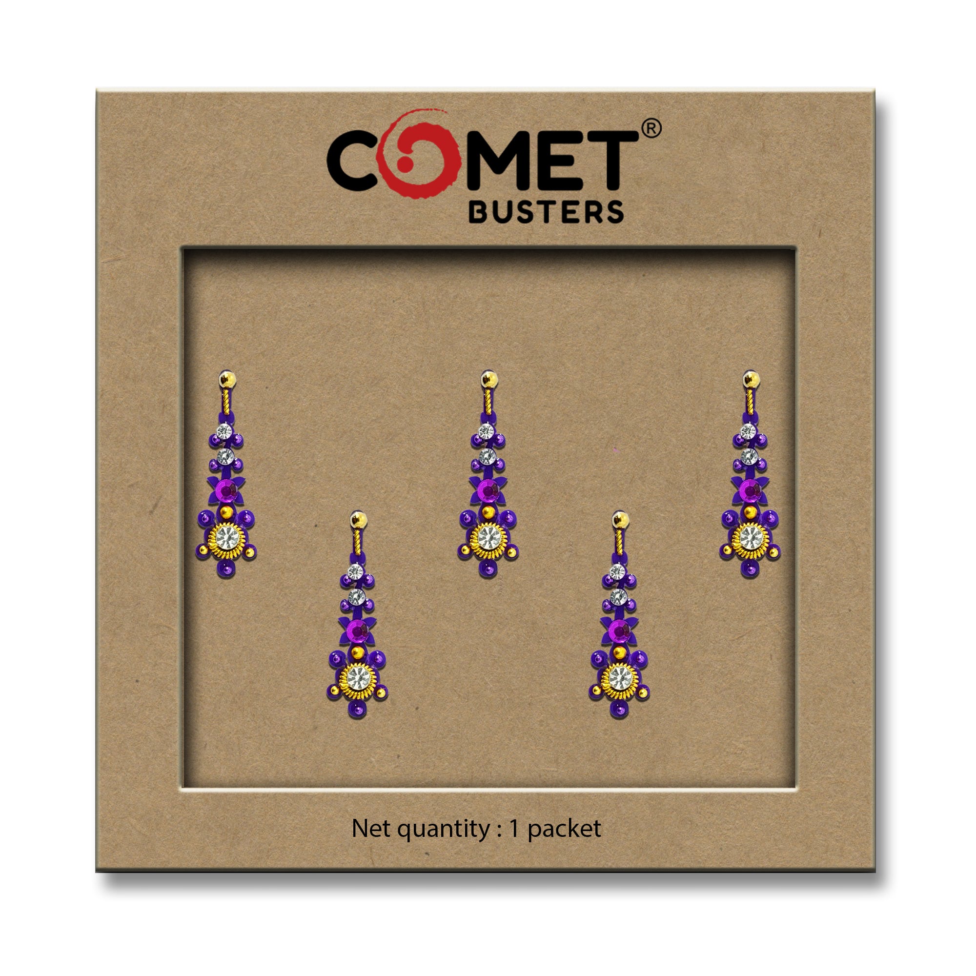 Comet Busters® Purple Artistic Abstract Bindis – Diamond, Shiny Beads – Handcrafted, Reusable & Skin-Friendly Bindis for Bridal Wear (25mm) – Forehead Bindi Stickers for Women & Girls – BIN031