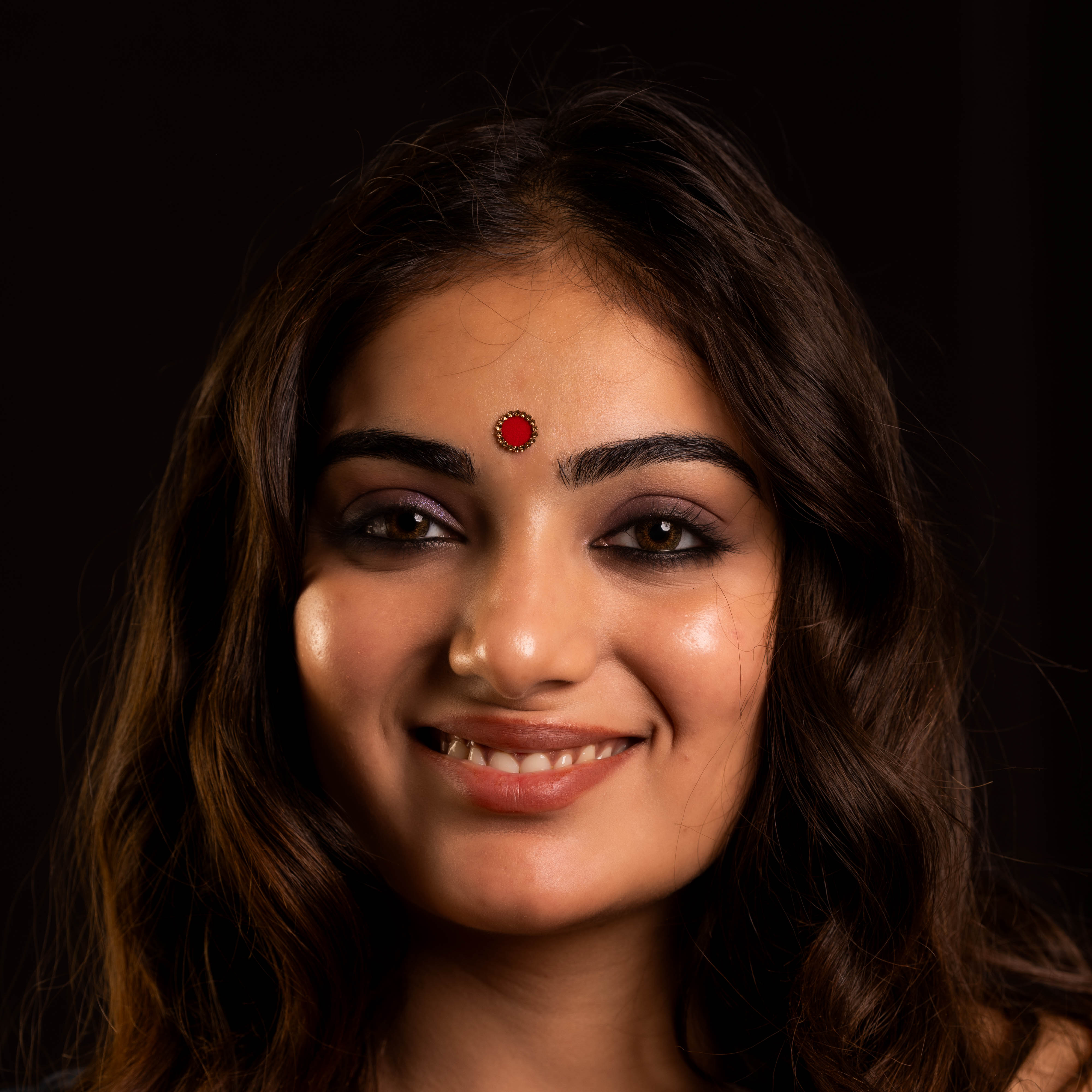 • To apply, gently remove the bindi from its backing and place it between the eyebrows.
