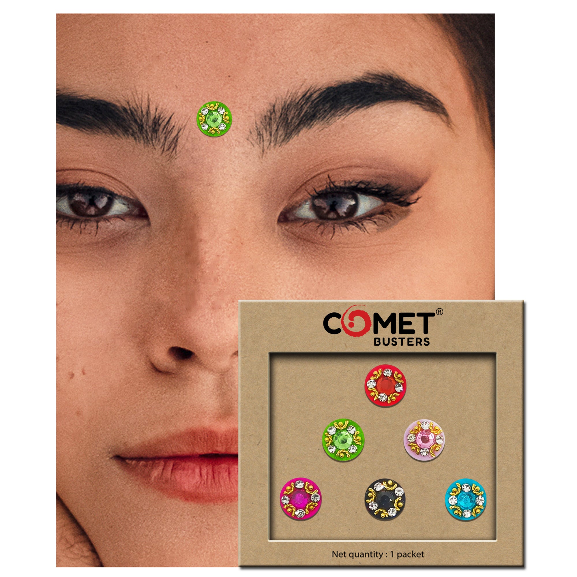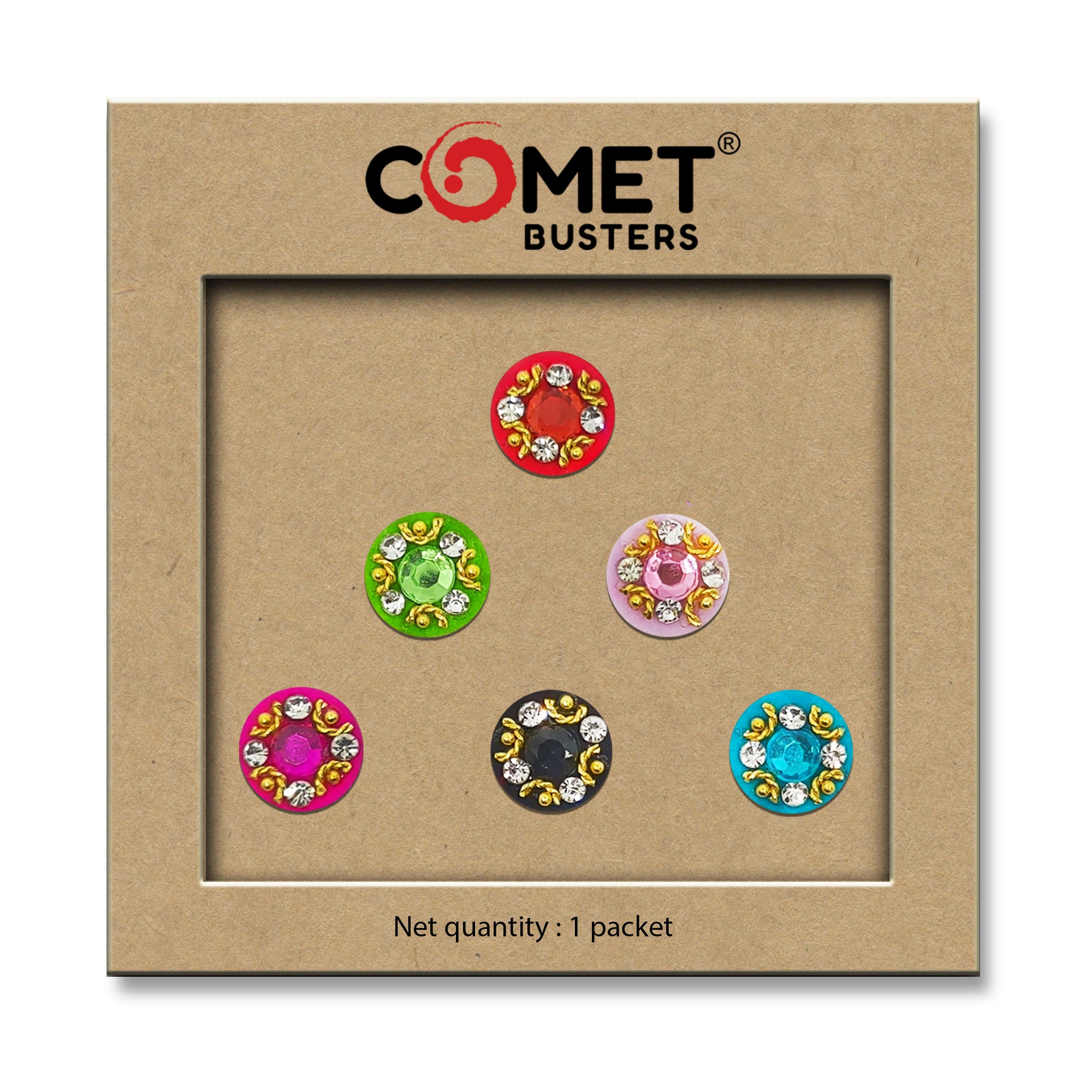 Comet Busters® Multicolor Round Classic Bindis – Handcrafted, Reusable, Skin-Safe Indian Forehead Stickers for Women