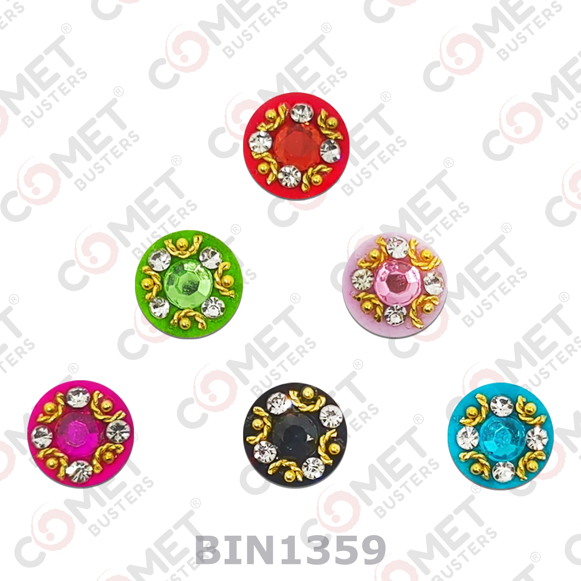 Comet Busters® Multicolor Round – Diamond, Velvet, Shiny Beads – Handcrafted, Reusable & Skin-Friendly Bindis for Party Wear (9mm) – Forehead Bindi Stickers for Women & Girls – BIN1359