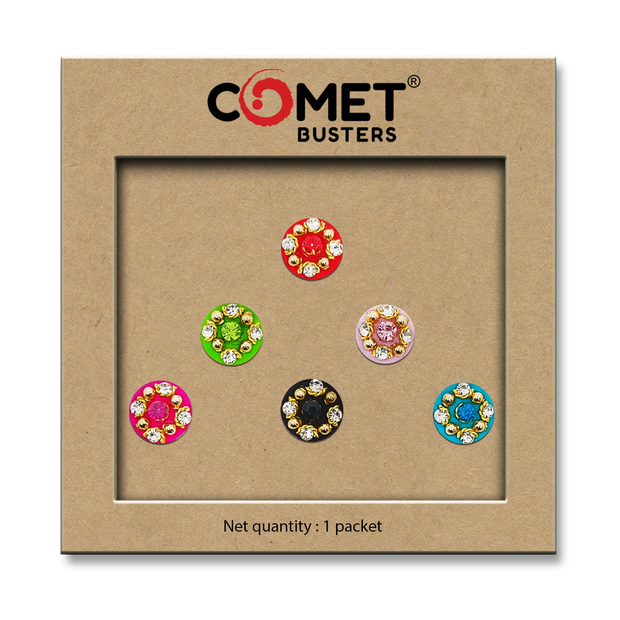 Comet Busters® Multicolor Round Classic Bindis – Handcrafted, Reusable, Skin-Safe Indian Forehead Stickers for Women