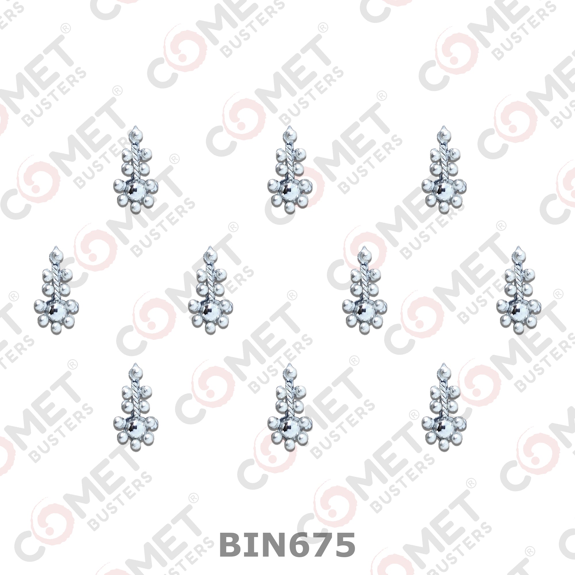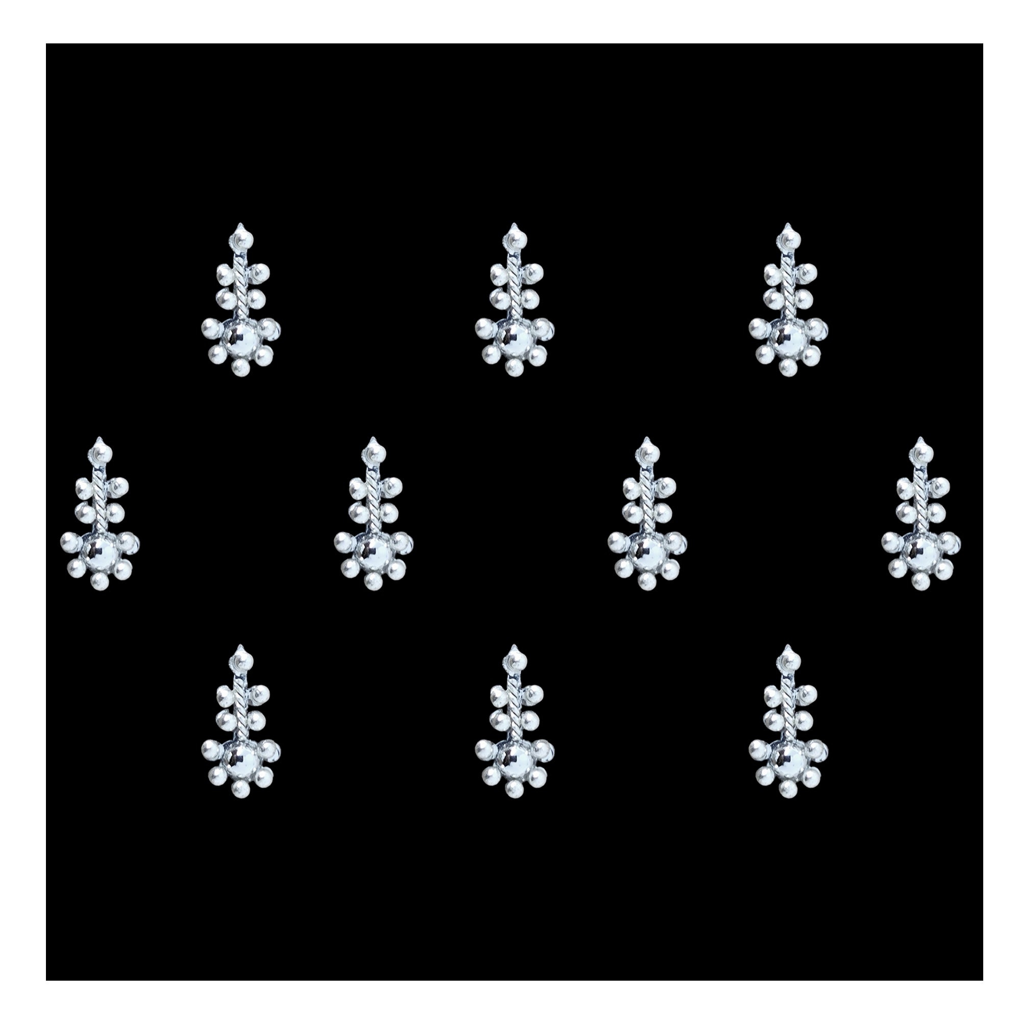 Comet Busters® Silver Artistic Abstract Bindis – Diamond, Shiny Beads – Handcrafted, Reusable & Skin-Friendly Bindis for Partywear Wear (8mm) – Forehead Bindi Stickers for Women & Girls – BIN675