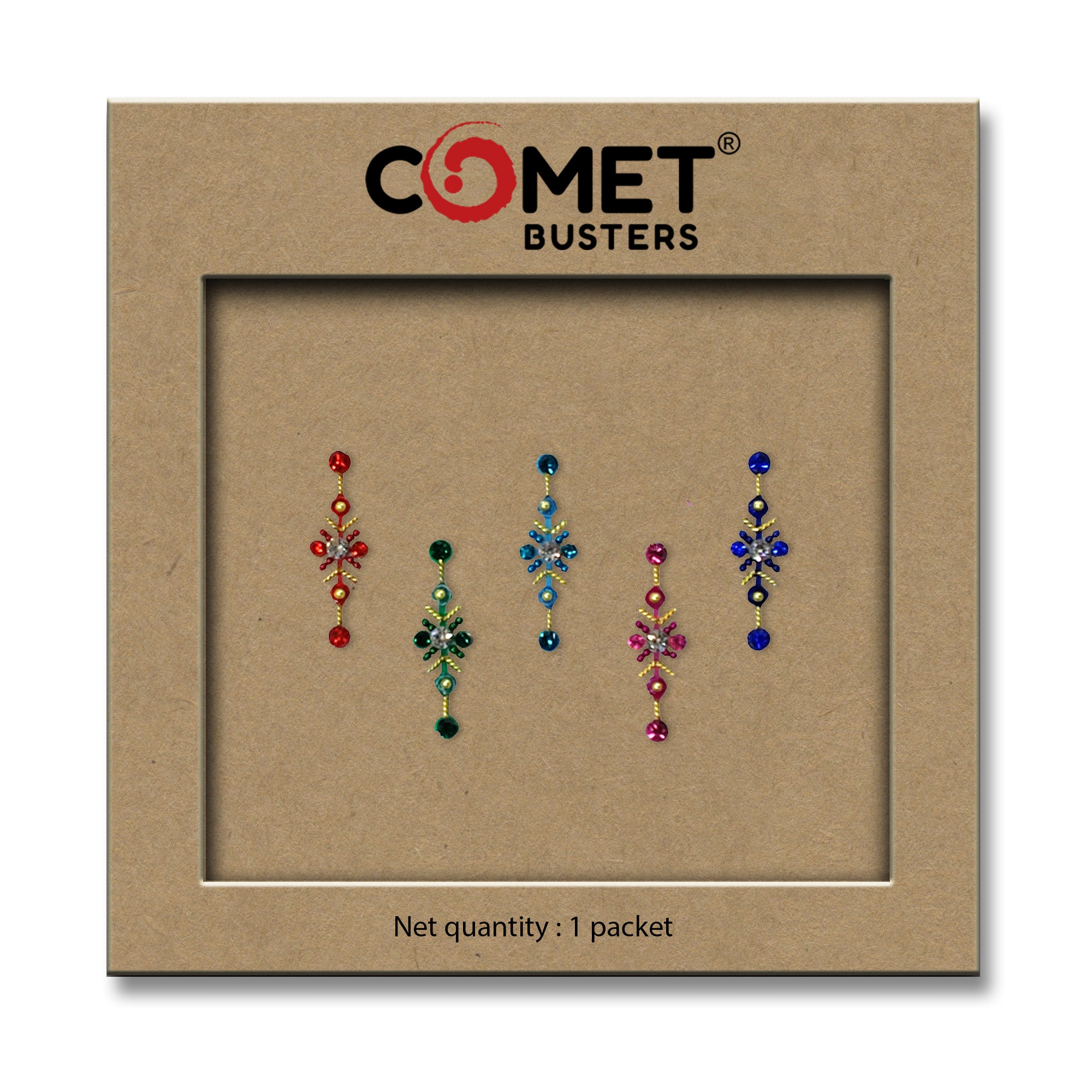Comet Busters® Multicolor Artistic Abstract Bindis – PVC, Diamond, Shiny Beads – Handcrafted, Reusable & Skin-Friendly Bindis for Party Wear (20mm) – Forehead Bindi Stickers for Women & Girls – BIN1766