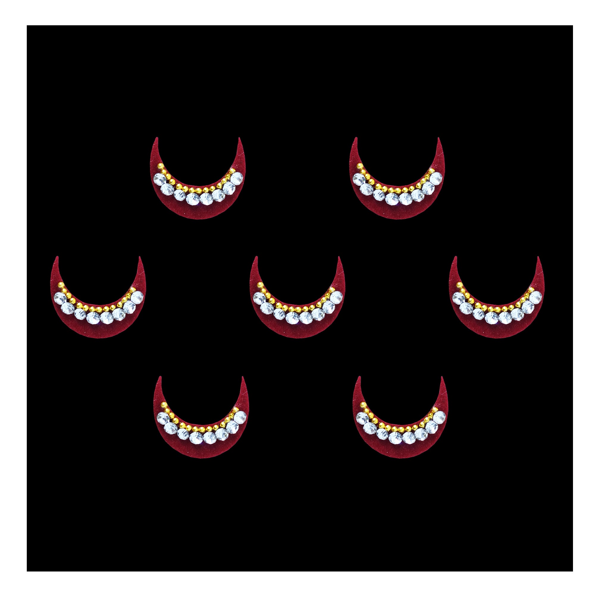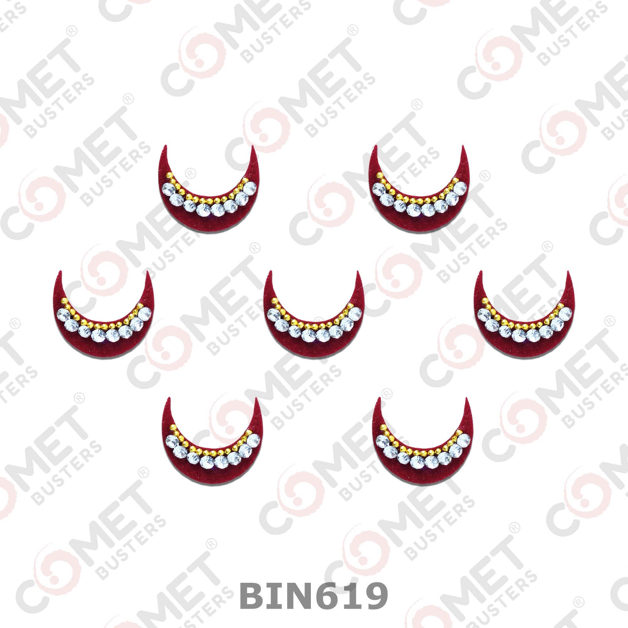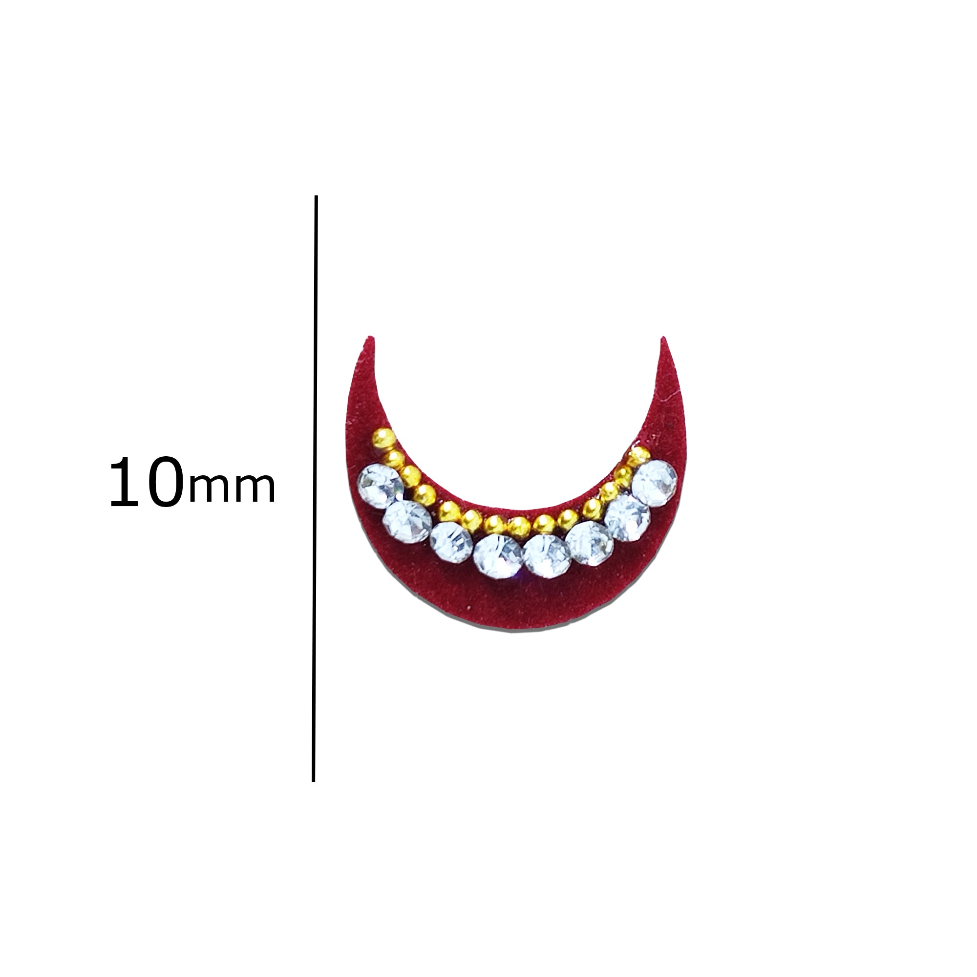 Comet Busters® Maroon Moon – Diamond, Velvet, Shiny Beads – Handcrafted, Reusable & Skin-Friendly Bindis for Casual Wear (10mm) – Forehead Bindi Stickers for Women & Girls – BIN619