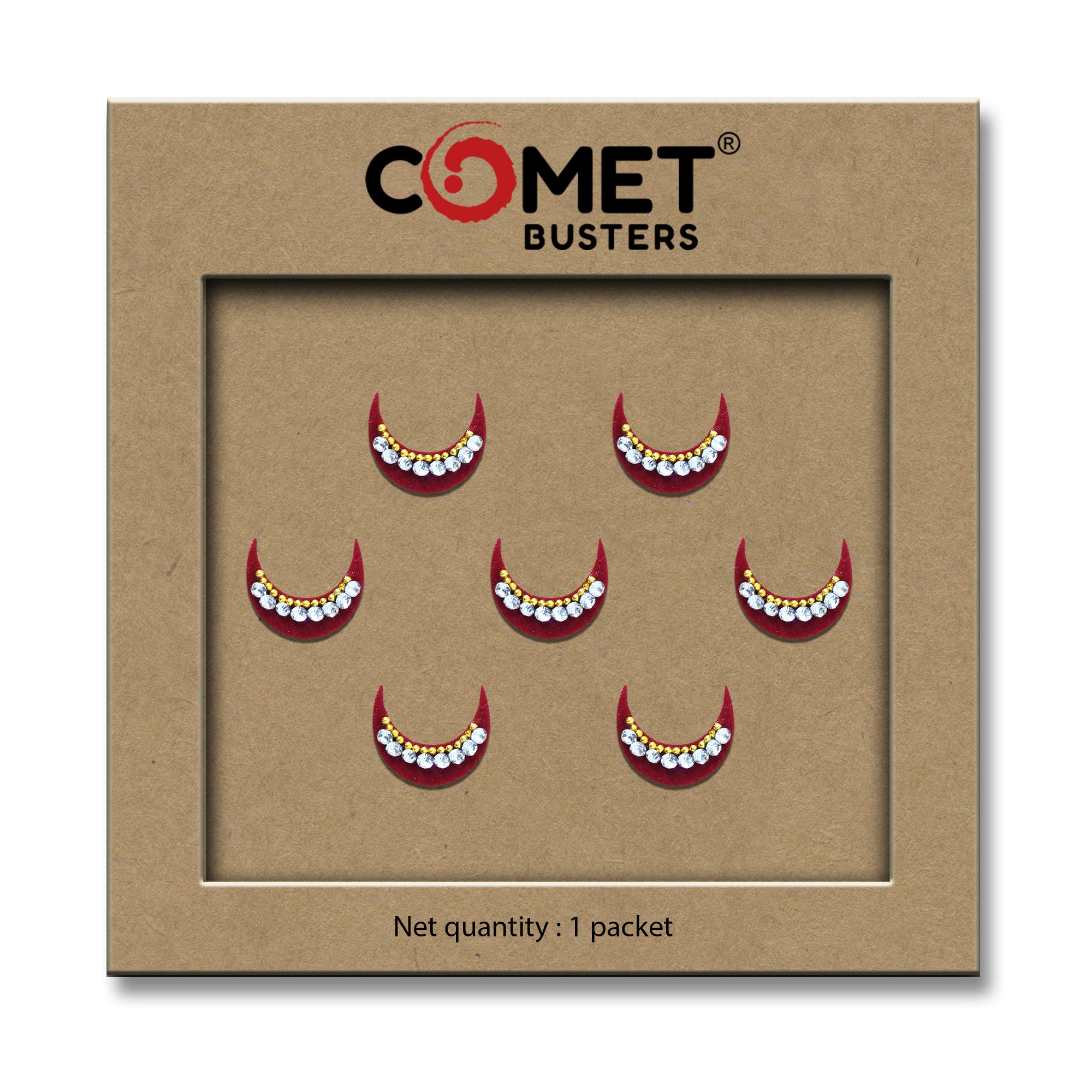 Comet Busters® Maroon Moon Classic Bindis – Handcrafted, Reusable, Skin-Safe Indian Forehead Stickers for Women
