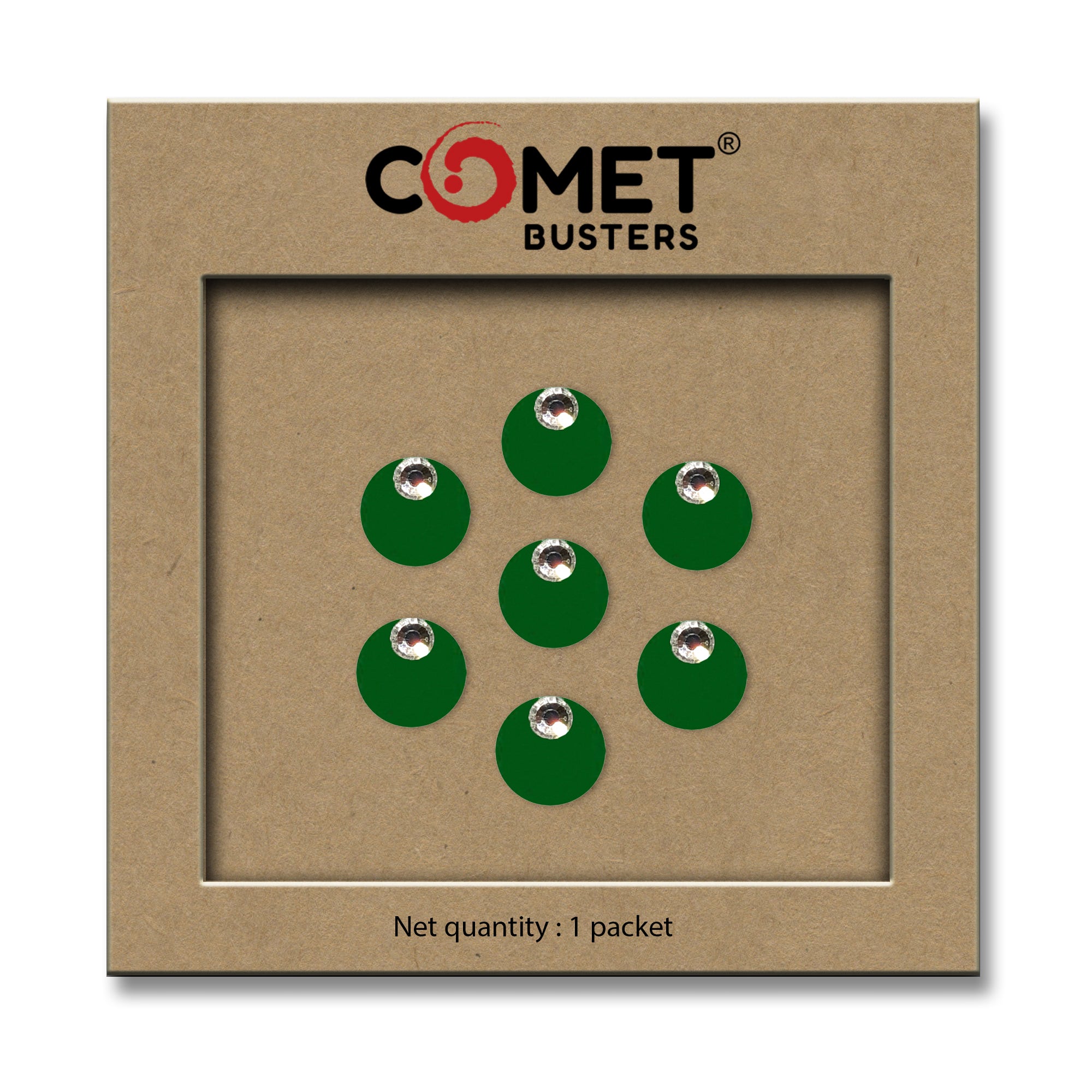 Comet Busters® Green Round – Velvet, Diamond – Handcrafted, Reusable & Skin-Friendly Bindis for Party Wear (9mm) – Forehead Bindi Stickers for Women & Girls – BIN1754