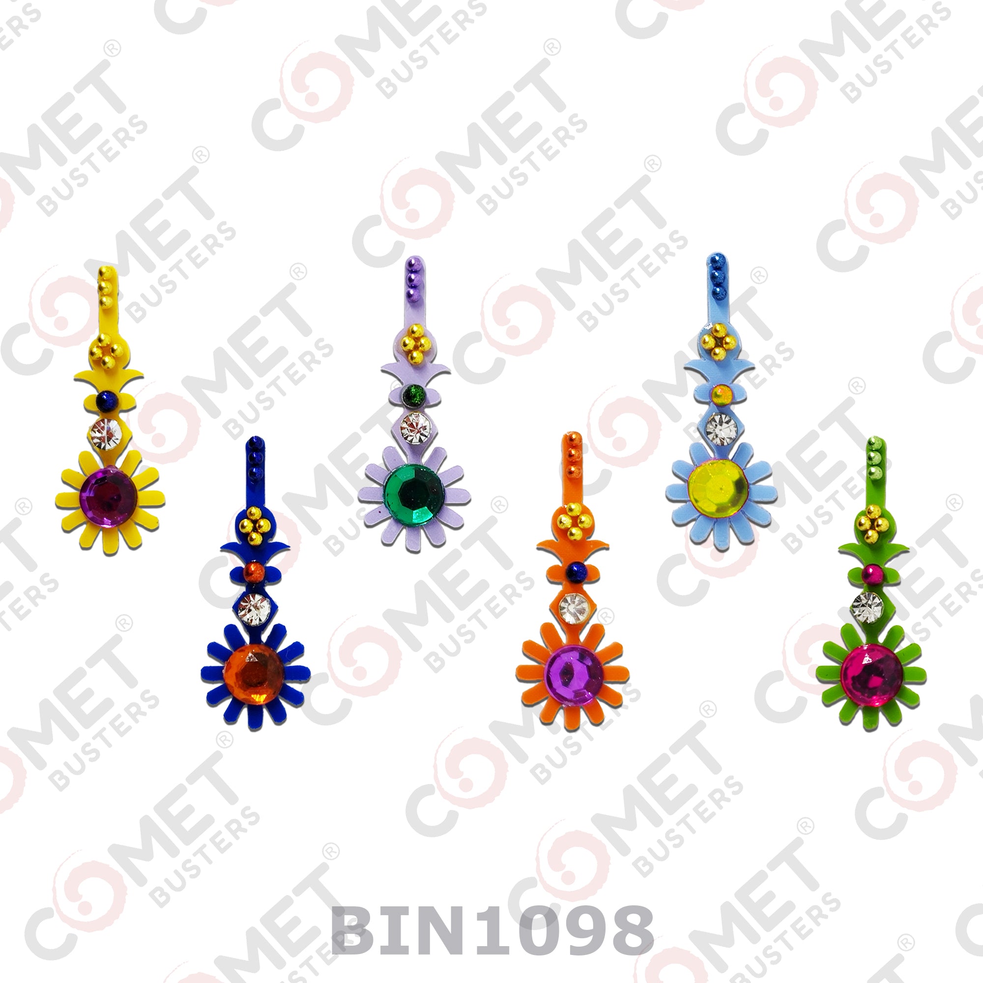 Comet Busters Multicolor Long Bindis With Stone Work (20mm)(BIN1098)