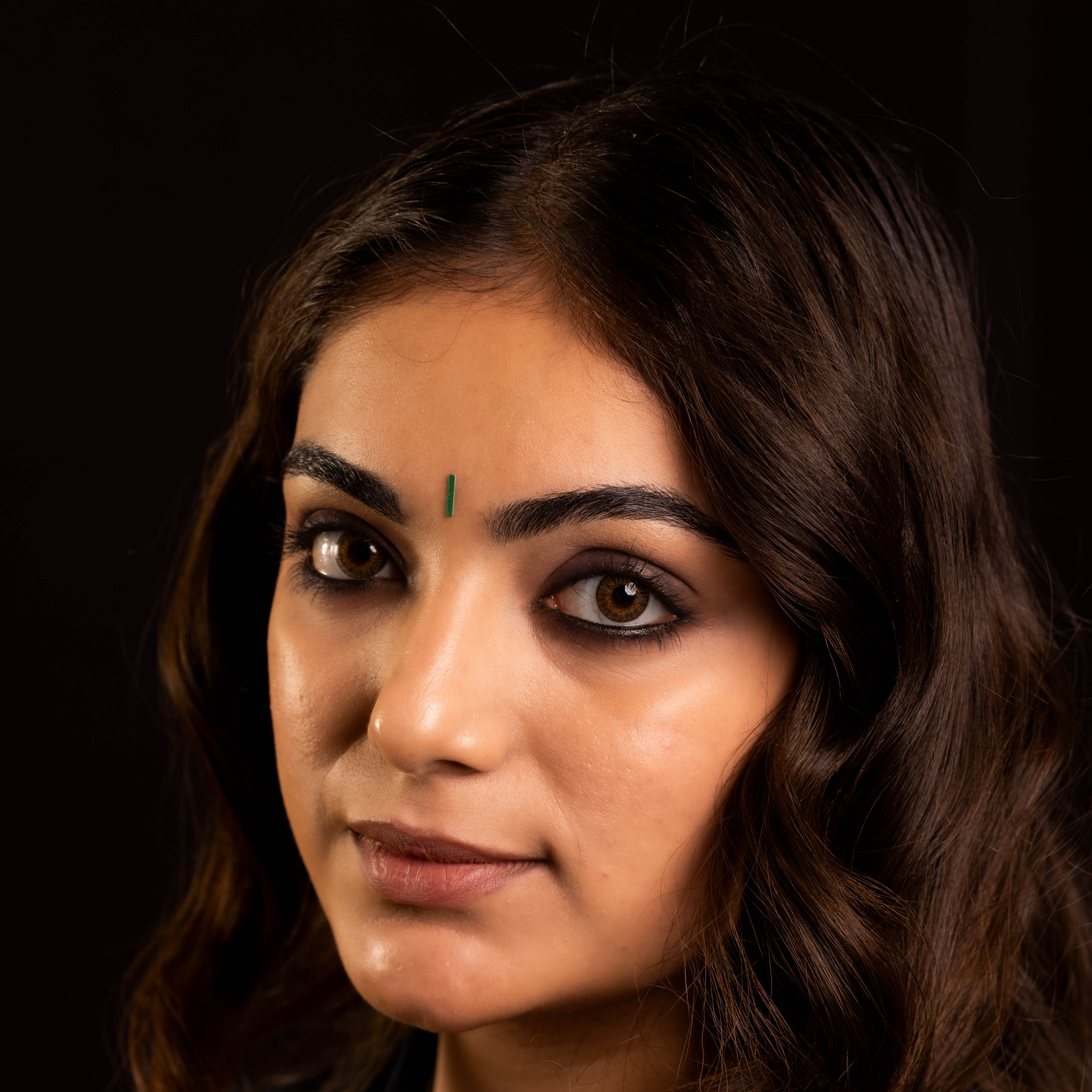 • To apply, gently remove the bindi from its backing and place it between the eyebrows.