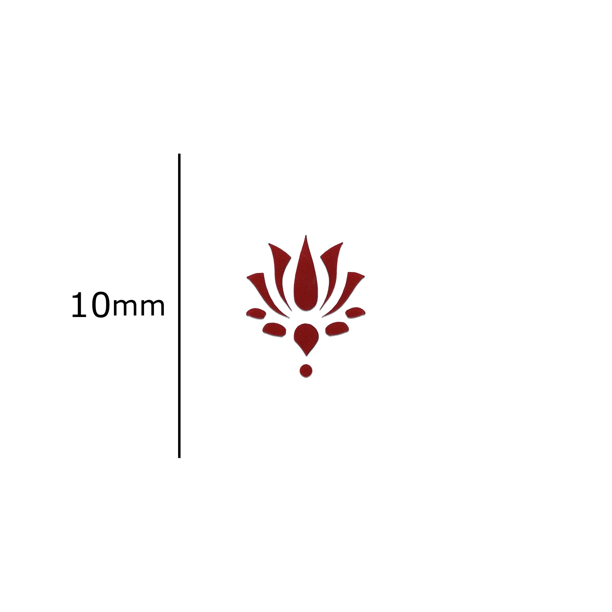 Add a touch of elegance to your ethnic look with this maroon lotus floral bindi, symbolising beauty, purity, and grace. Designed in a subtle 10mm size, it is perfect for festive occasions, pooja wear, and refined everyday styling.