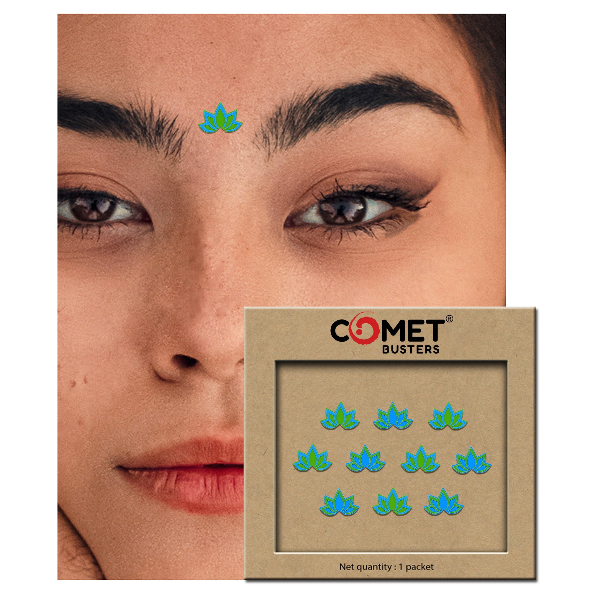 Comet Busters® Green, Blue, Multicolor Floral, Lotus – PVC – Handcrafted, Reusable & Skin-Friendly Bindis for Casual Wear (10mm) – Forehead Bindi Stickers for Women & Girls – BIN1951