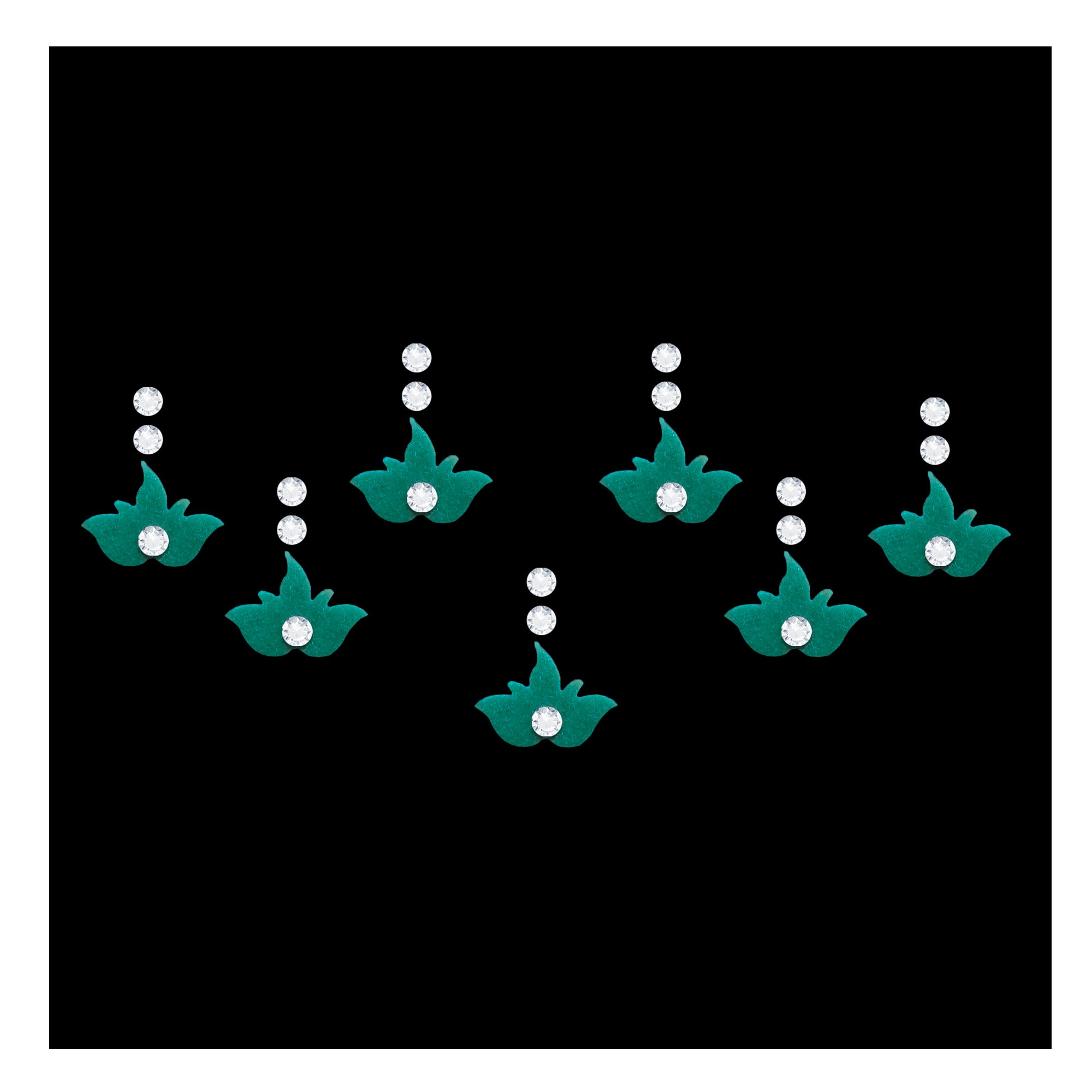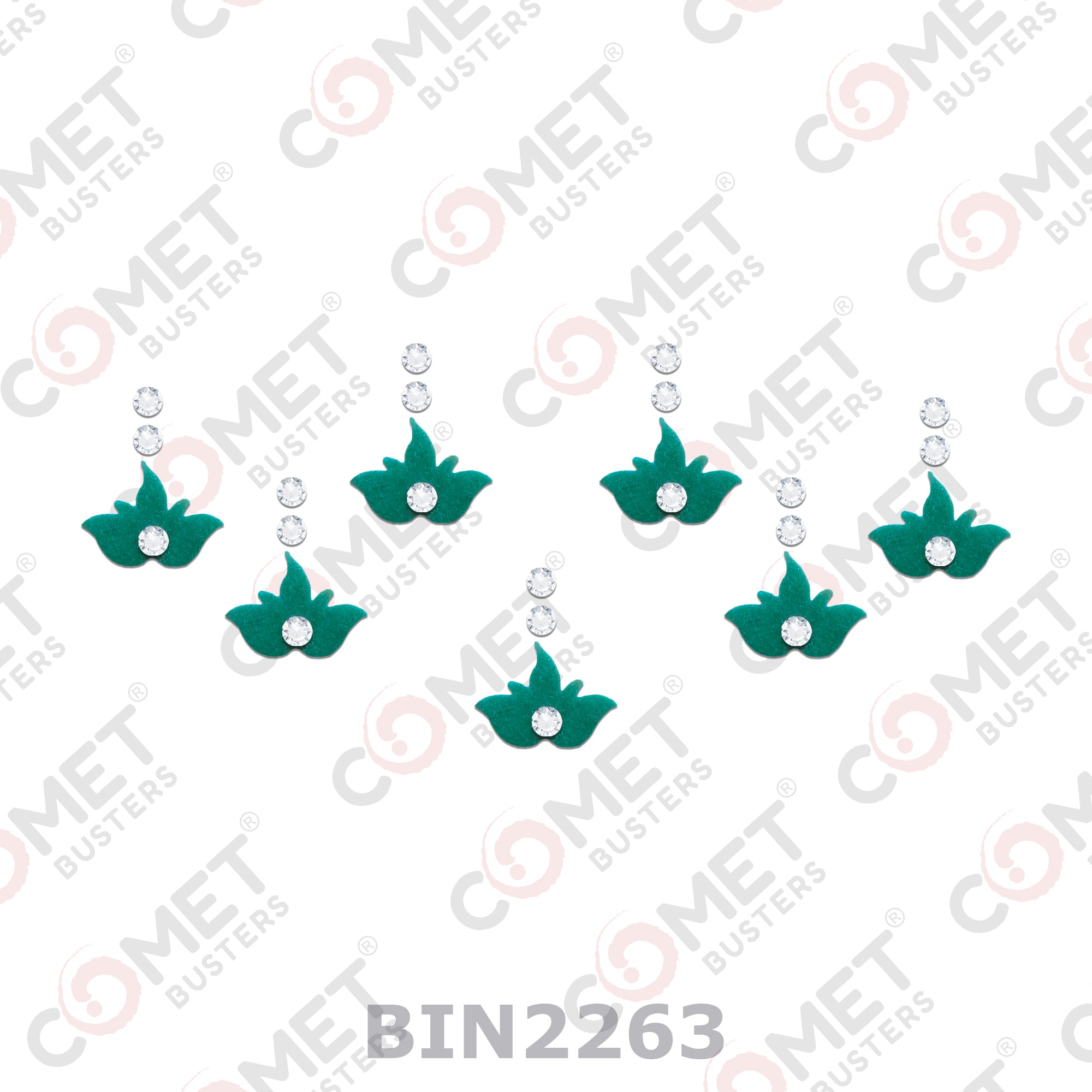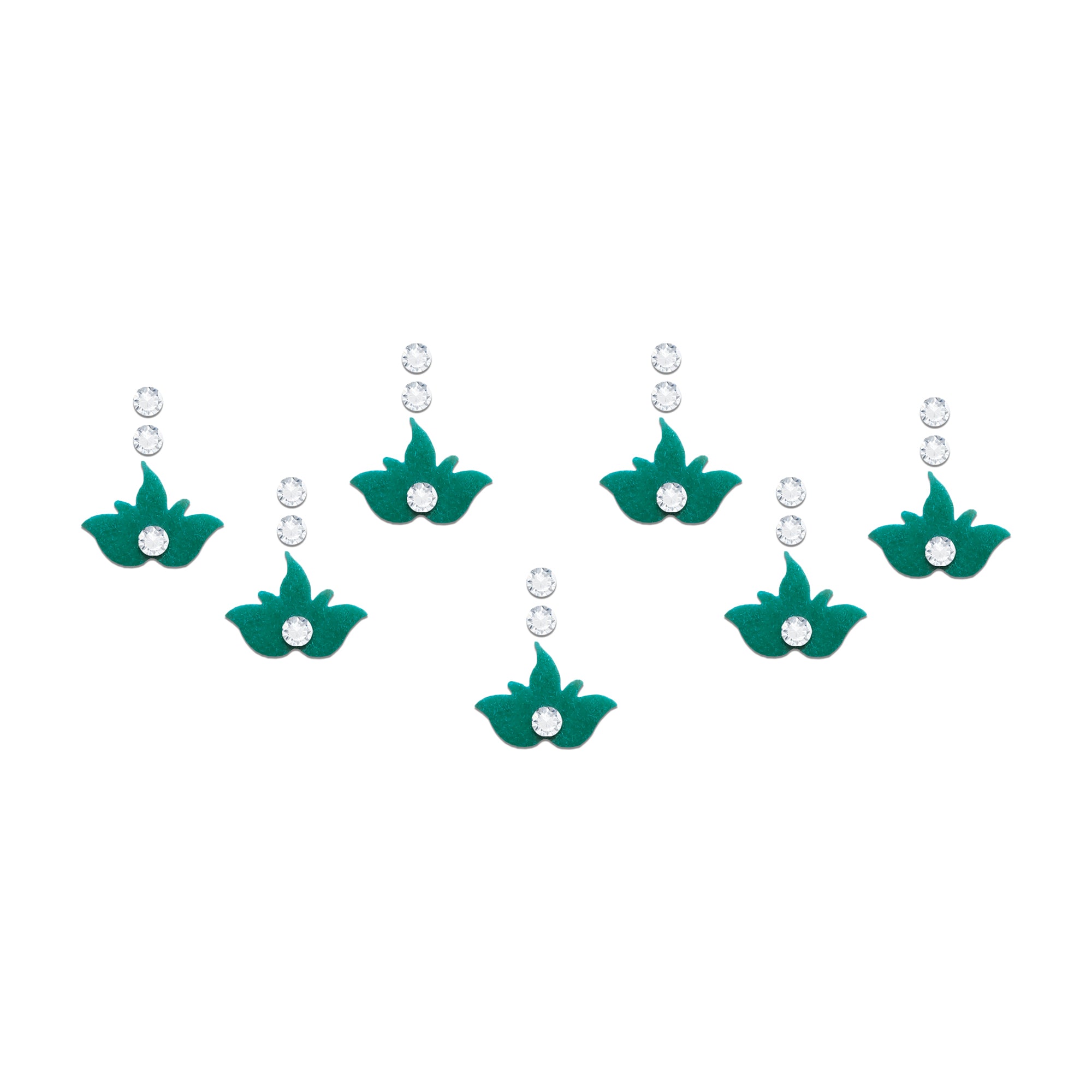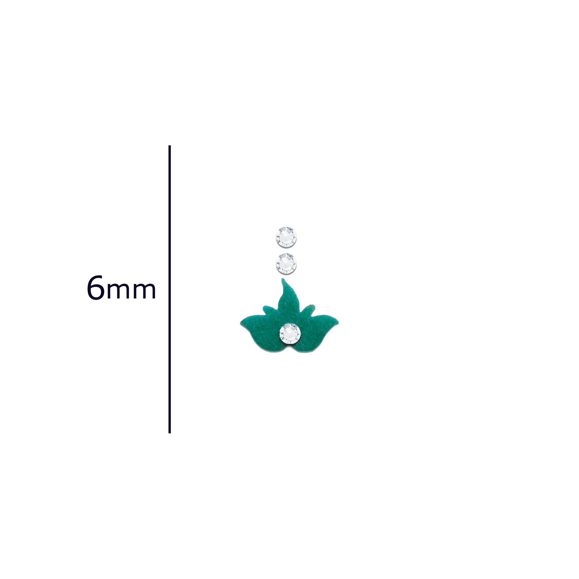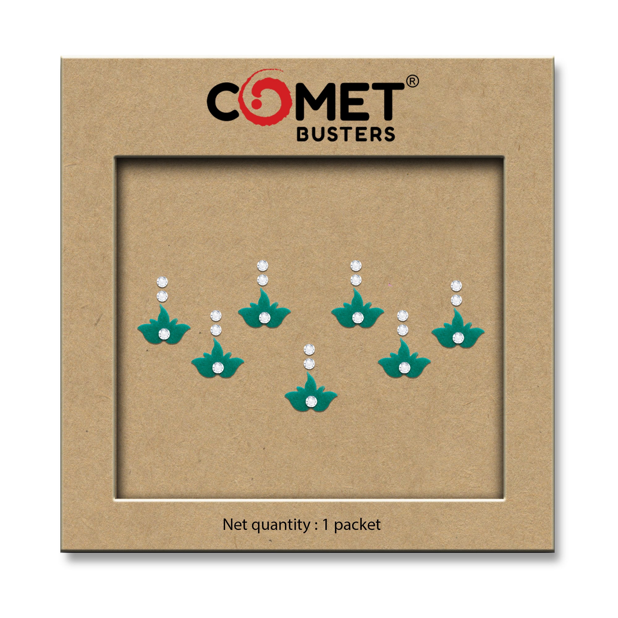 Comet Busters® Green Floral, Lotus – Velvet, Diamond – Handcrafted, Reusable & Skin-Friendly Bindis for Party Wear (6mm) – Forehead Bindi Stickers for Women & Girls – BIN2263