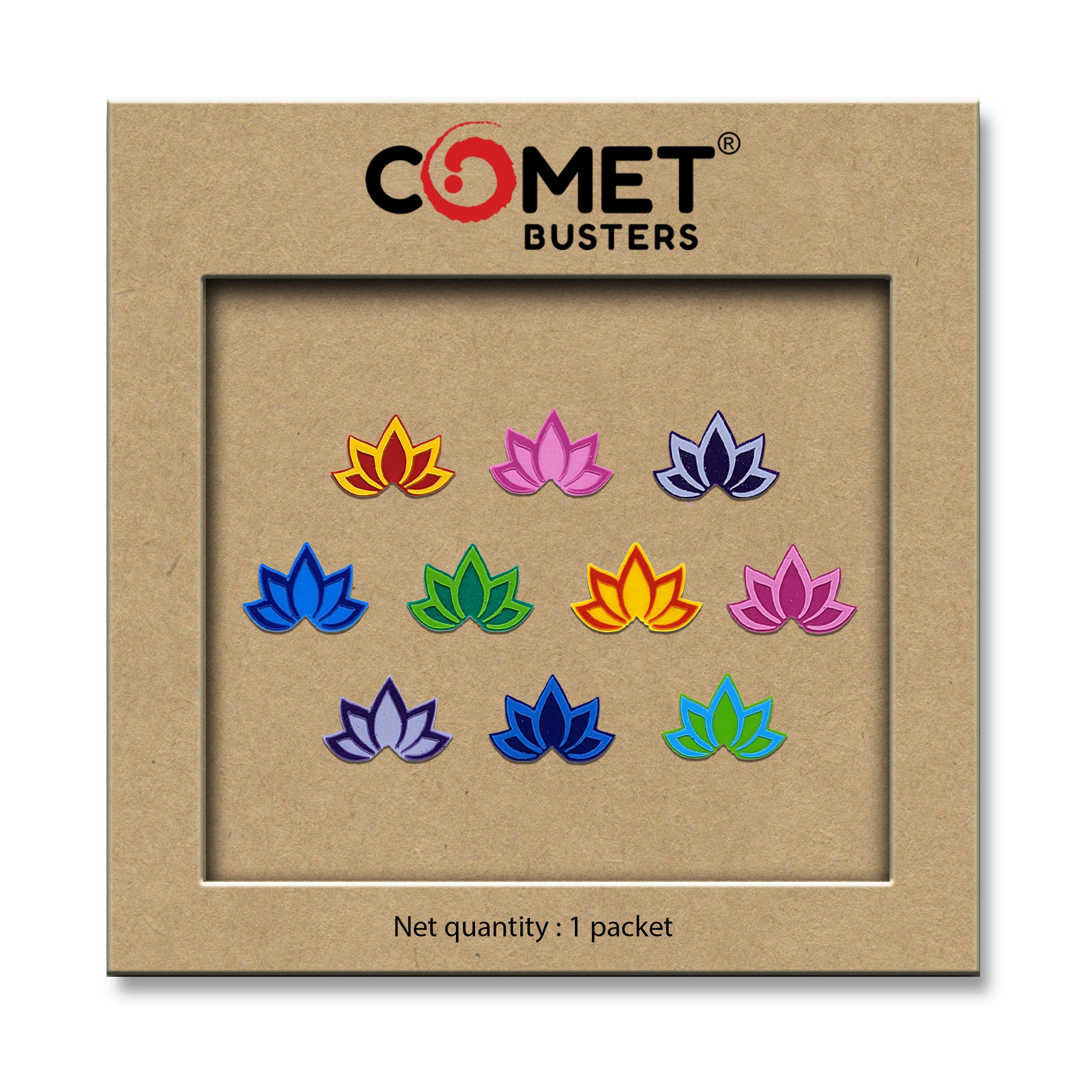 Comet Busters® Multicolor Floral, Lotus – PVC – Handcrafted, Reusable & Skin-Friendly Bindis for Casual Wear (10mm) – Forehead Bindi Stickers for Women & Girls – BIN1957